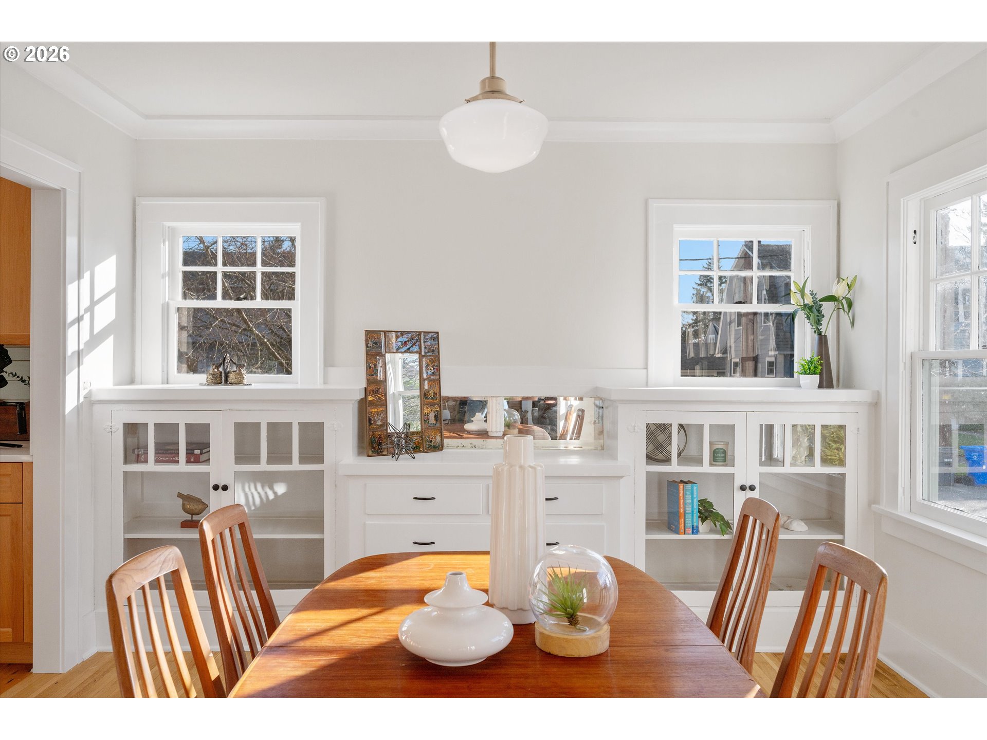 Sitting on a sunny corner lot, this vintage bungalow has been reimagined with meticulous attention to detail. Every update honors the home’s historic character: from the leaded glass windows, and warm wood floors to the original built-ins and cozy brick fireplace, this is true Portland charm.The kitchen was designed for both style and function! You'll find sleek quartz counters, custom cabinetry, a designer tile backsplash and stainless steel appliances. The sunny breakfast nook is the perfect spot to sip your morning coffee The partially finished basement offers 700ft of flexible space, perfect for movie nights or dance parities. With 8 ft ceilings and a separate exterior entrance, the space is primed for an ADU or in law suite, creating flexible living and income possibilities.Step outside to your west-facing yard, which features a private patio ideal for al fresco dinners and gatherings with friends. There is also plenty of space for the urban garden of your dreams.Just blocks from Wilshire Park, Beaumont Village, and the Alberta Arts District, where you will find cafés, restaurants, and shops. This is the type of neighborhood where everyone knows your dog’s name.