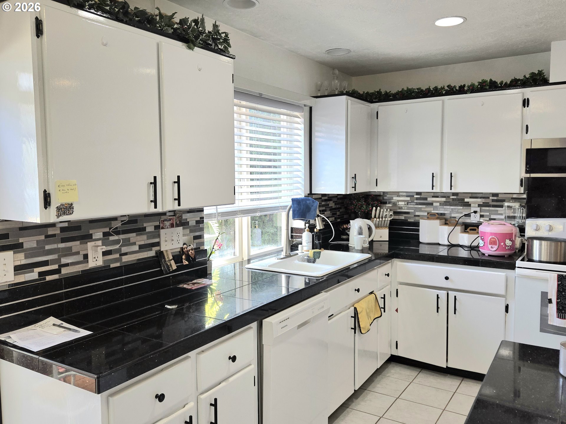 Dishwasher, FreeStandingRange, FreeStandingRefrigerator, Granite, Island, Microwave, Tile