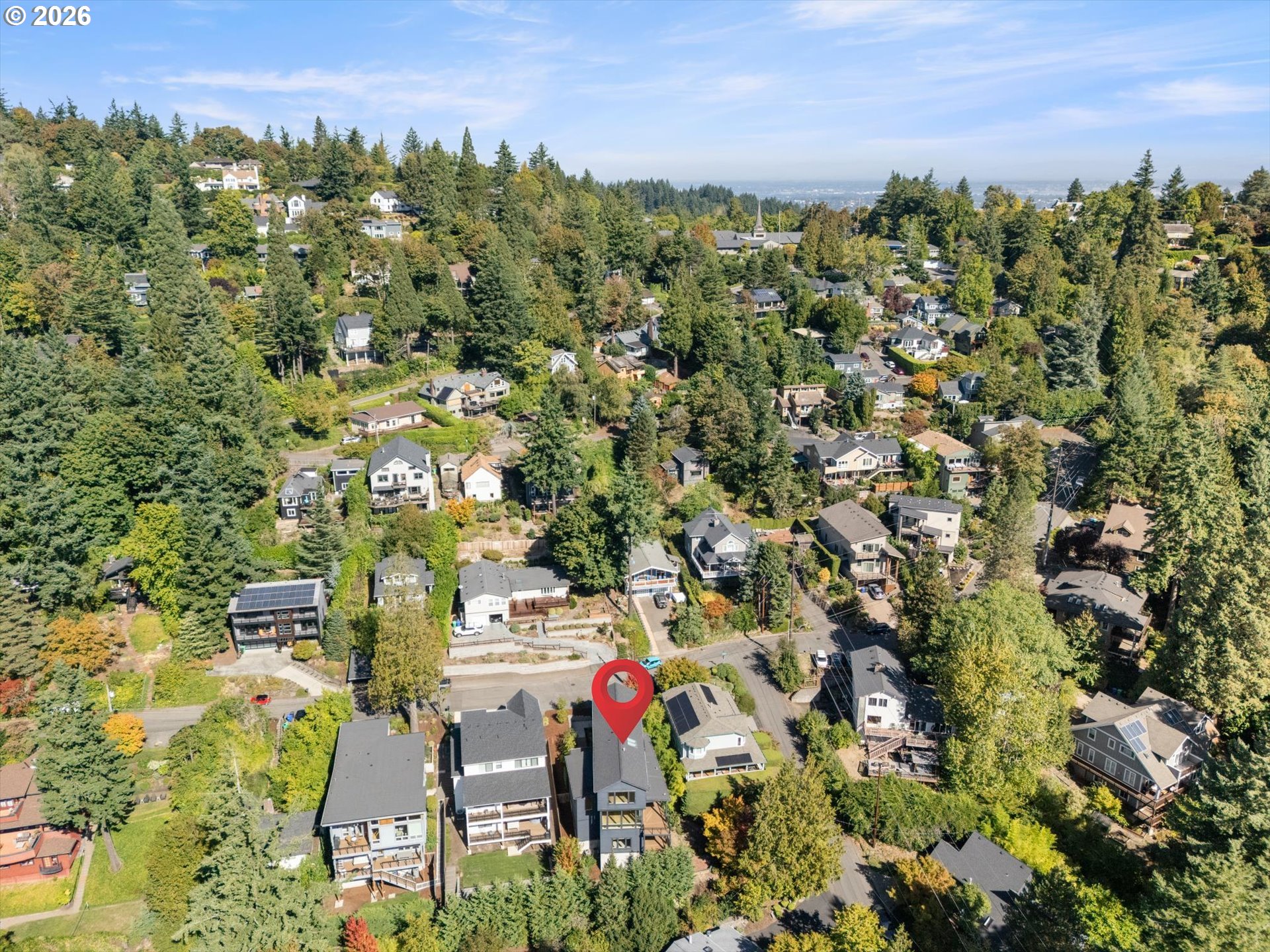 Tucked into the SW Hills, this modern home was designed to embrace light, space, and sweeping south-facing views. Built in 2019, its clean, contemporary architecture spans 4,437 sq ft with an effortless sense of balance and flow. Expansive windows flood the open main level with natural light, connecting a statement kitchen featuring a 6-burner Fulgor Milano cooktop and range, Viking appliances, and an oversized quartz island with eat-bar to a covered deck and dual-sided fireplace for sublime evenings enjoying the valley view both inside and out. Upstairs, vaulted ceilings with exposed beams feel warm and spacious, and the primary suite retreat offers a spa-inspired bath with heated floors, a soaking tub and walk-in shower. The lower level ties the whole package together with an epic bonus room, wet bar, and second covered deck - a perfect space for rumpus and lively entertaining. Located steps from St. Thomas More and minutes to the 4T Trail, this home is situated on Portland’s iconic trail network where you can walk to the Zoo, hike to Council Crest, or run Fairmount among Olympians. Thoughtful design, premium finishes, and meticulous care make this a standout example of modern living in the West Hills.