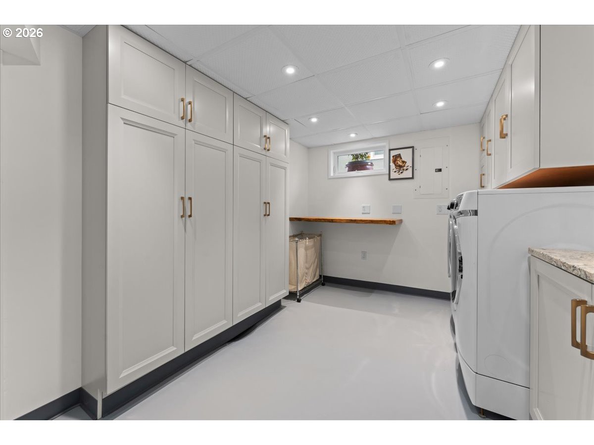 Modern cottage living with timeless charm on the desirable NE Portland park blocks. This updated English-style bungalow blends classic character with thoughtful upgrades throughout.Inside, enjoy warm, refinished oak hardwood floors, abundant natural light, and an inviting layout. Systems are upgraded for comfort and efficiency, including plumbing, electrical, and high-efficiency heating and cooling.The fully remodeled kitchen features sleek European appliances, custom cabinetry, quartz countertops, stylish tile, and modern lighting—perfect for everyday living or entertaining.The stunning second-floor master suite is a true retreat, offering a spacious bedroom with hardwood floors, a luxurious full tiled bath, walk-in closet, built-in storage, and a private mini-split heating and cooling system. This serene space provides comfort, privacy, and style all in one.The finished basement adds flexibility with a large bonus room for a bedroom, office, or media space, plus a functional laundry area.The detached garage/shop is a true standout: fully insulated and wired with multiple 220V circuits, abundant outlets, built-in storage, and a level 2 EV charger. It features a commercial roll-up door, epoxy-coated floor, lighting, and a heated workspace—ideal for hobbies, projects, or a professional shop.Outside, enjoy a mature, landscaped yard with irrigation and easy access to the nearby park blocks for walking, play, and outdoor enjoyment. Located in a safe, walkable, and family-friendly neighborhood near shops, dining, and public transit.A perfect combination of modern comfort, classic charm, a show-stopping master suite, a dream workshop space, and a prime park-side location. [Home Energy Score = 4. HES Report at https://rpt.greenbuildingregistry.com/hes/OR10245429]