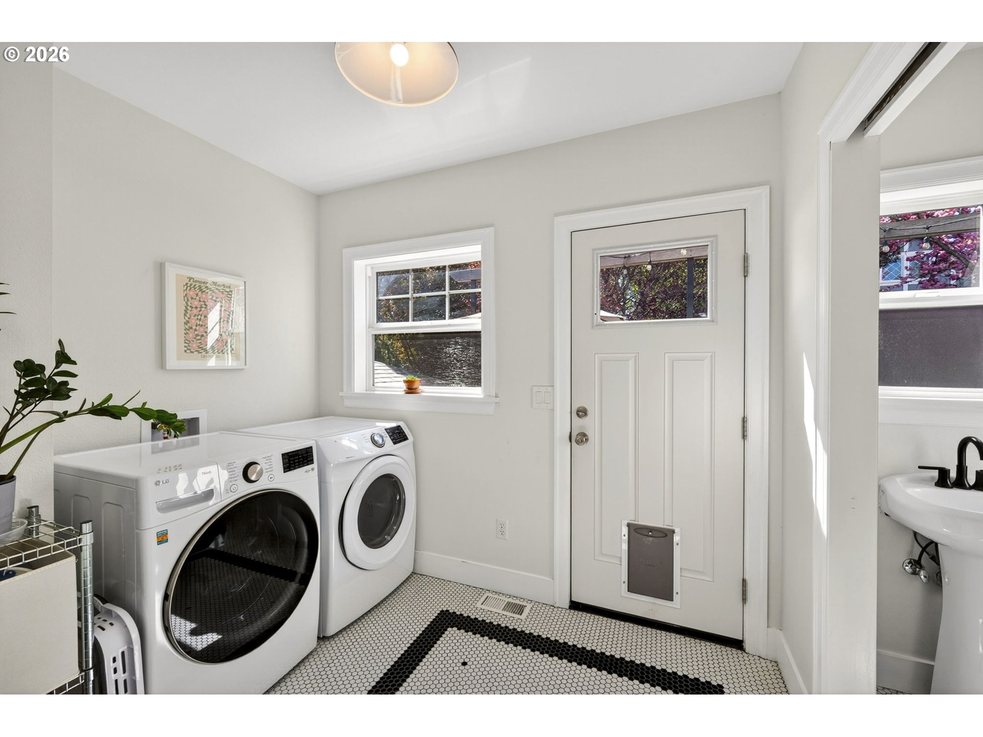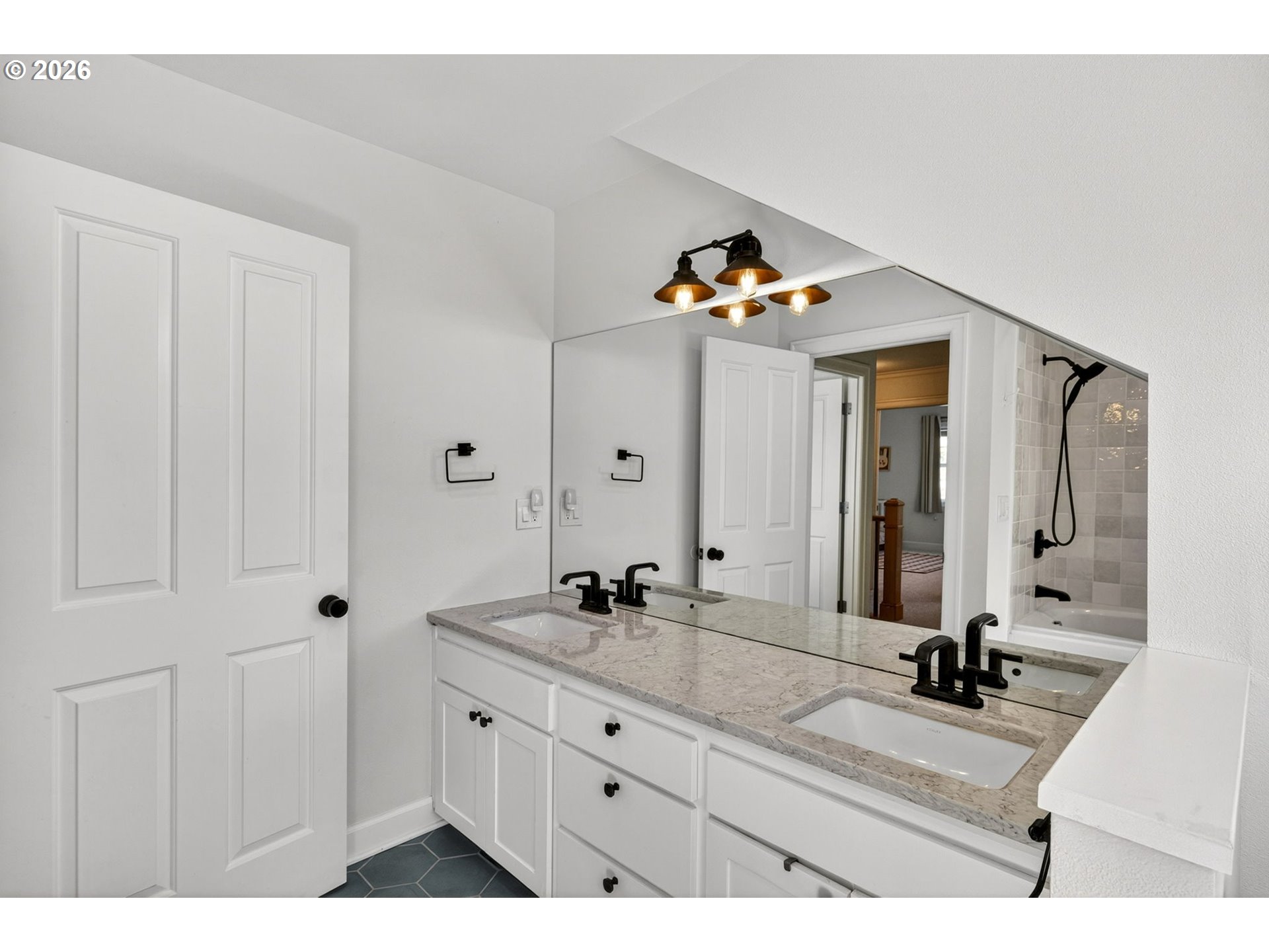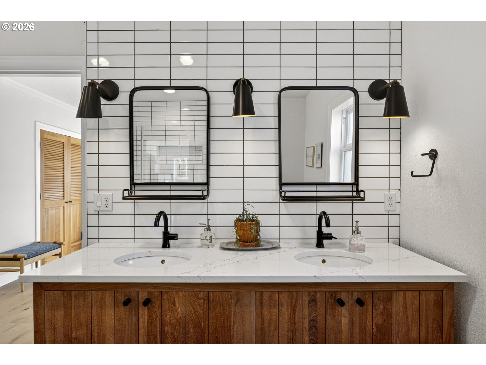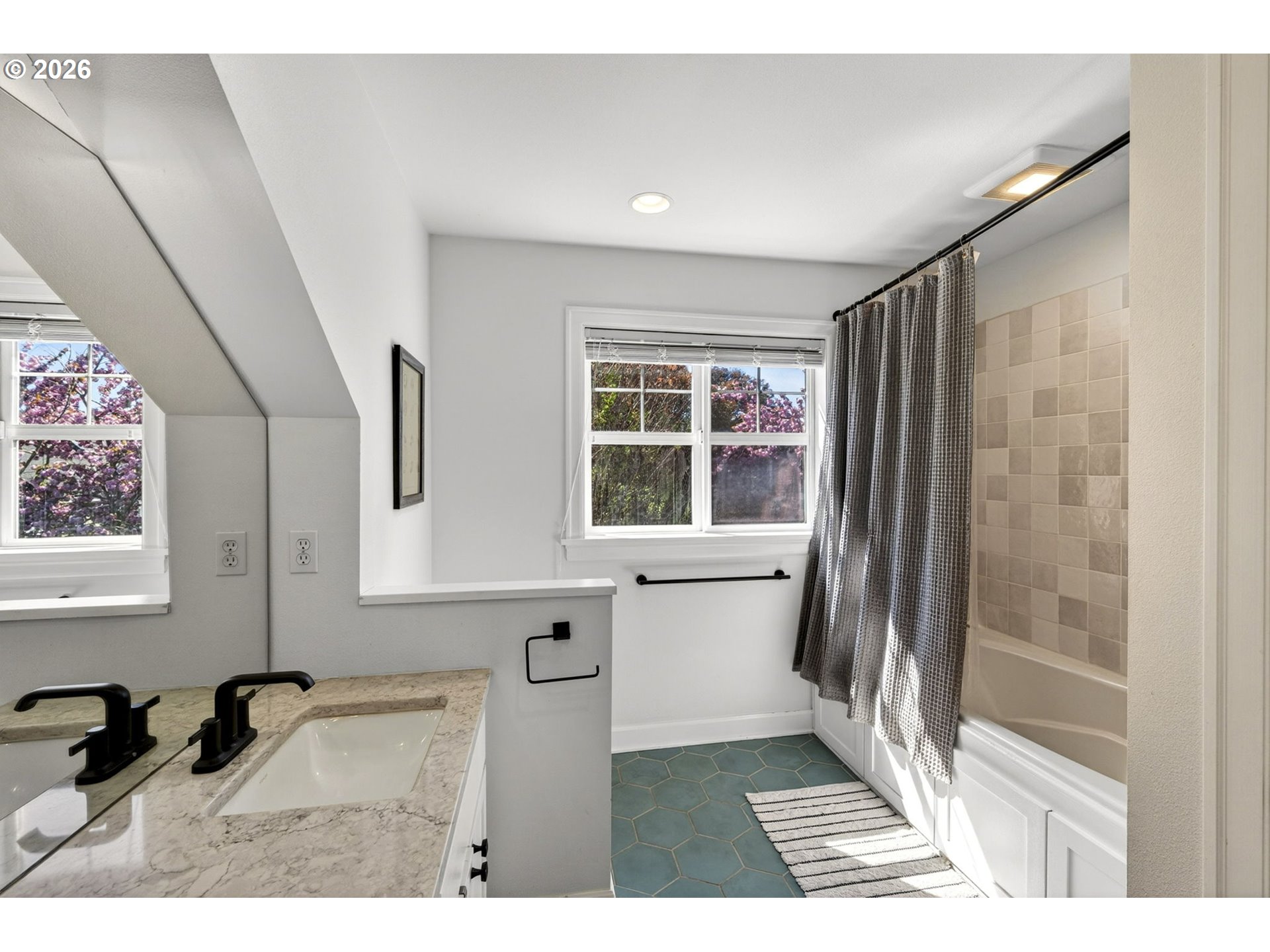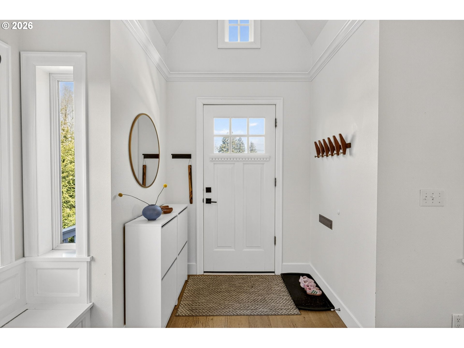 Nestled in one of Portland’s coveted neighborhoods, this Cape Cod–inspired home blends classic charm with thoughtful updates. Steep gables, dormer windows, and crisp white trim create timeless curb appeal, while a 2019 renovation refreshed nearly every surface inside. The wide-plank white oak floors and an open, airy layout set the tone for easy living and entertaining. At the center, the updated kitchen features new cabinetry, a quartz island with seating, subway tile backsplash, farmhouse sink, and updated lighting—flowing seamlessly into the living area anchored by a fireplace.The main-level primary suite offers convenience and comfort with an ensuite bath featuring a walk-in shower and double vanity. Upstairs, two additional bedrooms are complemented by a vaulted bonus room with dormers—ideal as a fourth bedroom, office, or media space. All bathrooms were updated in 2019, and new window treatments throughout add a cohesive, finished feel to the home. From the Trex deck to the paver patio with its perfect fire pit setting, this fully fenced backyard is made for summer nights and easy entertaining. Inside, you'll find peace of mind with a newer furnace (2023), central AC (2019), a dedicated laundry room, and an EV-ready tandem garage. In the coveted Duniway school district and conveniently located near Reed College, with easy access to the shops and restaurants in Woodstock and Sellwood.