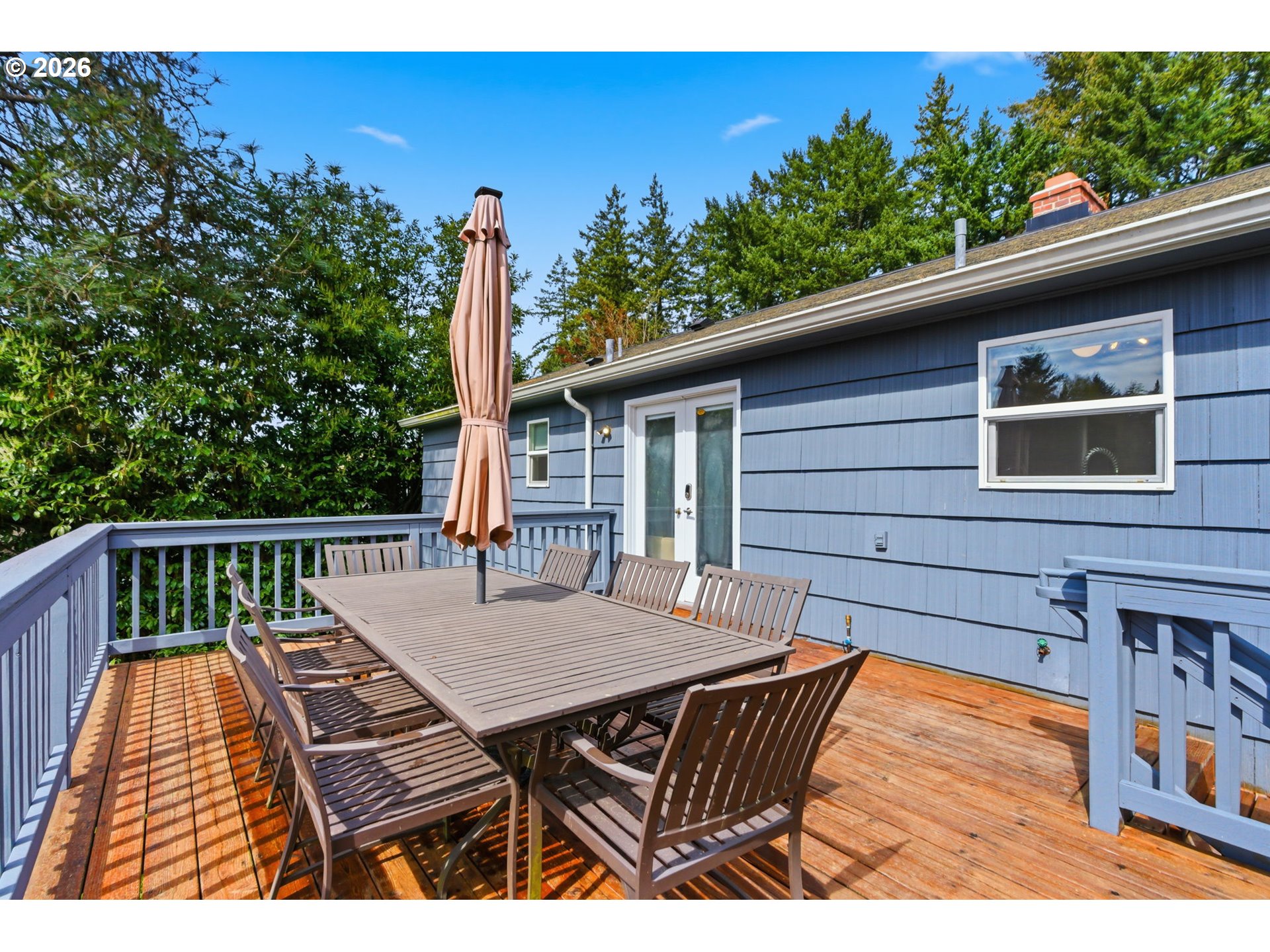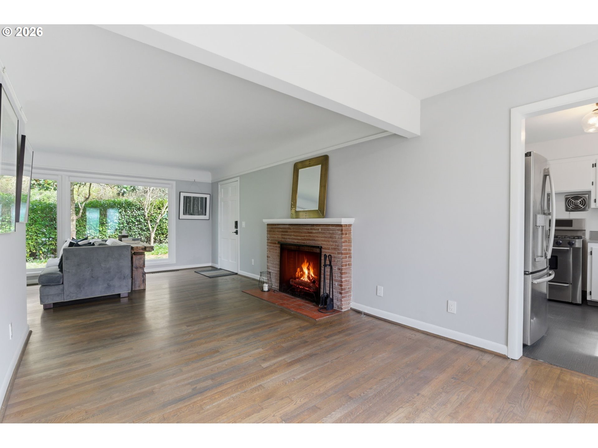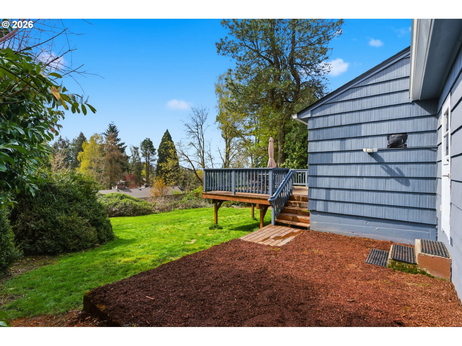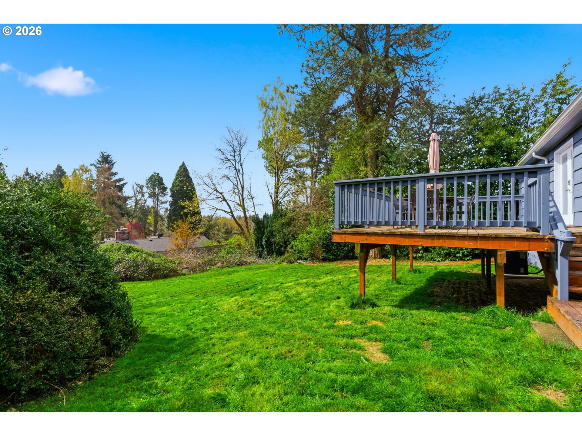 Charming one-level home in desirable Bridlemile offering the ease of main-level living with a thoughtful blend of modern upgrades and timeless character. The light-filled living room features large windows that invite abundant natural light, along with details such as a coved ceiling with molding and a classic brick fireplace that creates a warm focal point connecting the living and dining areas. This home has been extensively improved with refinished original hardwood floors, new windows, a new roof, new gutters, updated siding & new exterior paint, new plumbing, and beautifully remodeled bathrooms. The kitchen is equipped with a double basin sink, gas range and stainless steel appliances ideal for everyday living while the laundry room includes a washer/dryer and built-in shelving for added storage. French doors open to an expansive deck overlooking a generous 0.24-acre lot with a fully fenced, oversized backyard—perfect for outdoor enjoyment, gardening, or gatherings. The updated bathrooms feature tile flooring, quartz countertops, vessel sinks, and LED backlit mirrors for a modern, elevated feel. New furnace and AC within the last year. Don't miss the extra large crawlspace for additional storage, or other possibilities! A wonderful opportunity to enjoy comfort and style in one of Portland’s most sought-after neighborhoods, with convenient access to Hillsdale, downtown Portland, and Raleigh Hills amenities, parks, and schools as well as Beaverton tech corridor Nike and Intel. [Home Energy Score = 2. HES Report at https://rpt.greenbuildingregistry.com/hes/OR10246175]