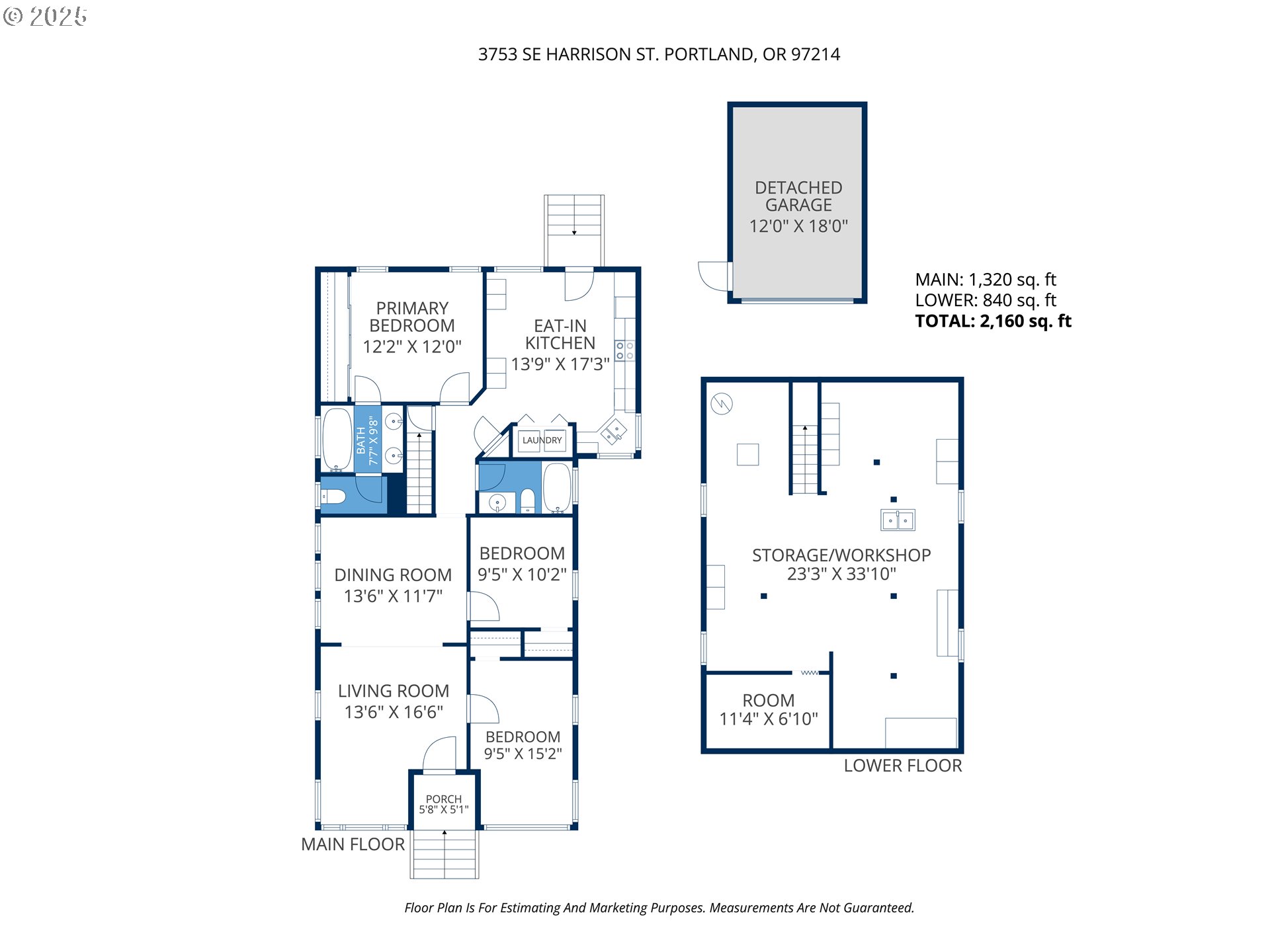 Fantastic Location! Tidy cottage on a quiet street in a hip neighborhood. Stroll to shops and restaurants in the Hawthorne District or Division Street. This charming home features original oak floors and a versatile floor plan. Large windows allow tons of natural light all day. Primary suite has two large closets and ensuite bathroom with double vanity, oversized jetted tub and a private W.C. Large eat-in kitchen has access to fully-fenced back yard and patio. Full-size washer and dryer on main floor. One-car garage and plenty of on- and off-street parking. Unfinished basement offers loads of storage and potential. Just one block to major bus lines, five blocks to Fred Meyer, eight blocks to Sewallcrest Park. Schools: Abernethy Elementary, Hosford Middle School, Cleveland High School. Bike score 100 and walk score 94! [Home Energy Score = 5. HES Report at https://rpt.greenbuildingregistry.com/hes/OR10243060]