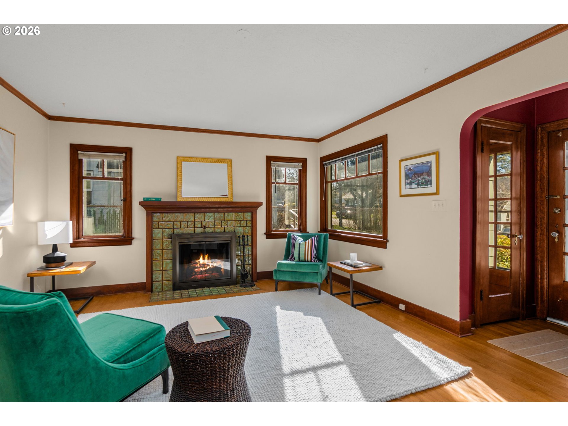 No lack of nostalgia at this sweet English in Roseway. Built in 1929 with utmost craftsmanship, this home holds true to its original character and mood. Showcasing beautiful natural wood moldings and built-ins, a rich vintage jade tile hearth, oak hardwood floors and arched passageways. The kitchen, a timeless + careful renovation, features quartz countertops, sky blue backsplash, new maple cabinetry and a sunny breakfast nook. A functional cook’s kitchen with Electrolux Appliance package, gas range. Details like coved ceilings, leaded glass, untouched wood trim and original solid brass + glass door hardware--so well preserved. Classic English with 2 bedrooms and 1 bathroom on the main. Upstairs, a lofty spacious bedroom with half bath where cedar lined ceilings and walls give off Scandinavian inspired retreat. This home has been lovingly maintained by the same owner for over 25 years, and it shows. The landscaping is dialed, with established plantings, and a stunning climbing hydrangea along the driveway. EV Charger. Detached garage with auto opener. Handy access from driveway to Ipe wood steps to kitchen. Fully fenced backyard with a nice balance of lawn, garden beds, a showpiece dogwood and blue stone paver garden. Central AC, Gas Furnace. Many updated windows throughout. A clean, unfinished basement with high ceilings adds to the potential for extra space. You will be charmed by this sunny English with a timeless feel and even more potential to build on!