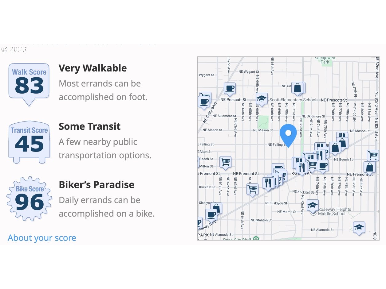 Welcome home to this beautifully updated 3-bedroom, 2-bath "ranchalow" in the heart of Portland’s Roseway neighborhood!This light-filled home offers easy one-level living and a layout that is both comfortable and functional. With a two-car attached garage, it's only a few short steps from the car to the house. The spacious living area flows effortlessly into the kitchen and then out to the patio, creating the perfect setting for cozy nights in or for hosting friends and family. The refreshed kitchen and bathrooms bring a clean, contemporary feel to the home. This home is move-in ready, and furniture is negotiable, excluding any staged items. Located in the sought-after Roseway neighborhood, you’ll love the tree-lined streets, community feel, and convenient access to parks, shops, and local favorites. With a walk score of 83, you'll be only minutes away from anything you need! [Home Energy Score = 5. HES Report at https://rpt.greenbuildingregistry.com/hes/OR10246589]