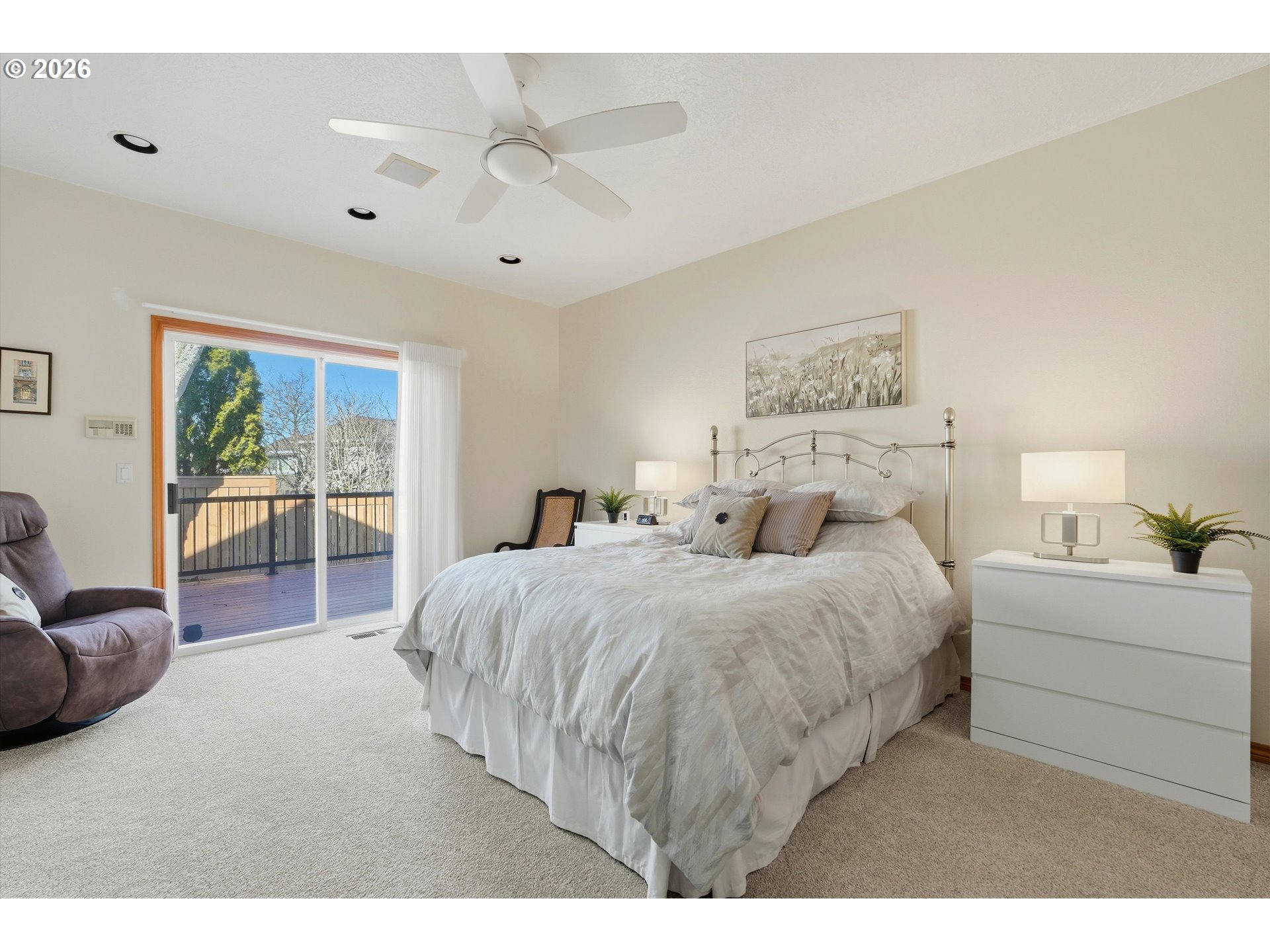 (503) 893-8874Nearly 2,500 sprawling square feet in this beautiful 1-level in excellent neighborhood! Hardwood floors, high and vaulted ceilings, skylights. Living and family rooms, both with fireplaces. Kitchen with updated quartz counters, island, tile floor, and updated appliances. 4 bedrooms or 3 plus spacious office. Primary suite with French Doors, slider to private deck, suite with double sinks, tile floors, soaking tub, plus 2 walk-in closets. Fully fenced yard with large deck. Spacious 3 car garage. Updated furnace, water heater, AC, interior paint, deck paint, electrical panel, & landscaping.
