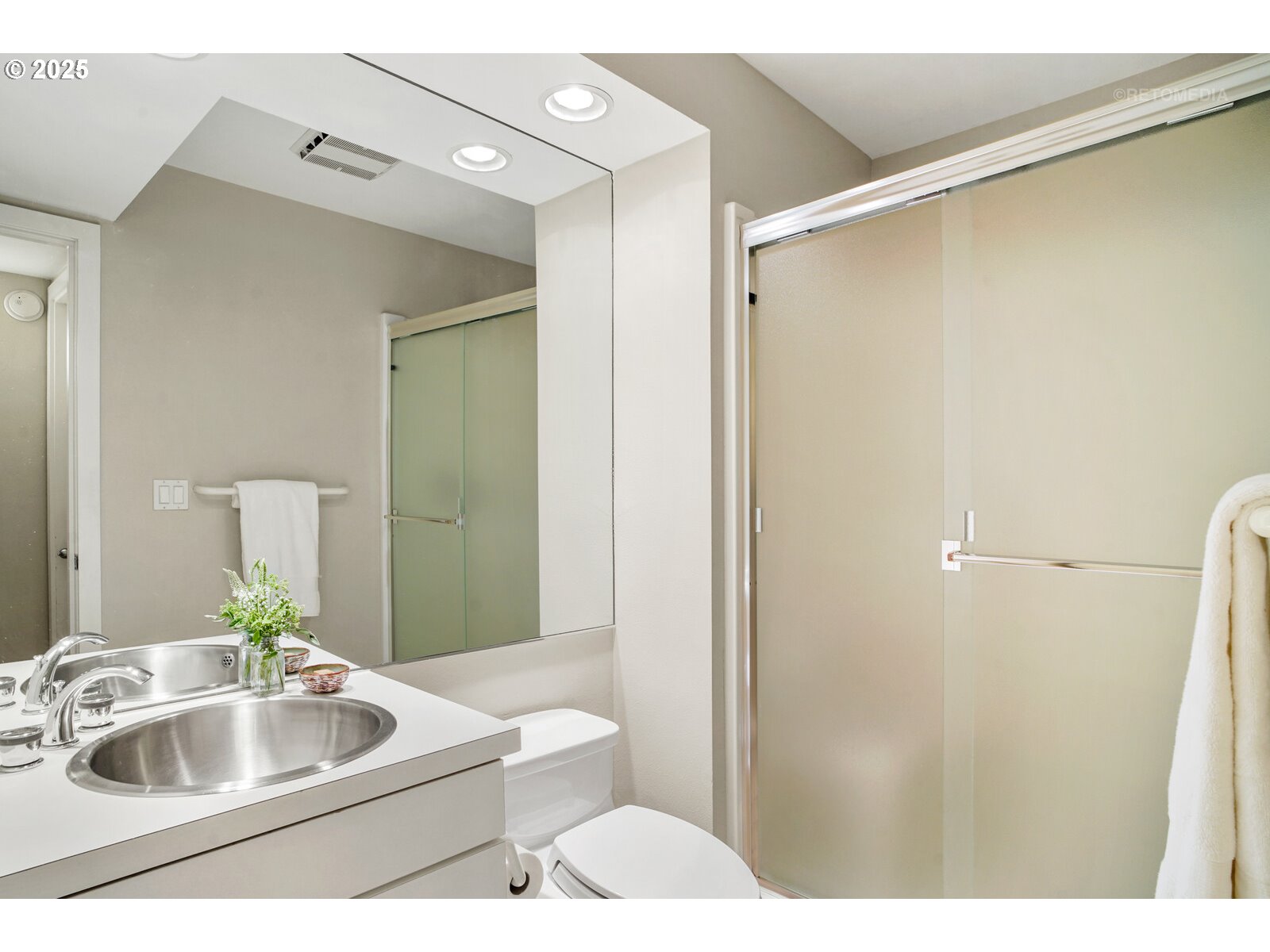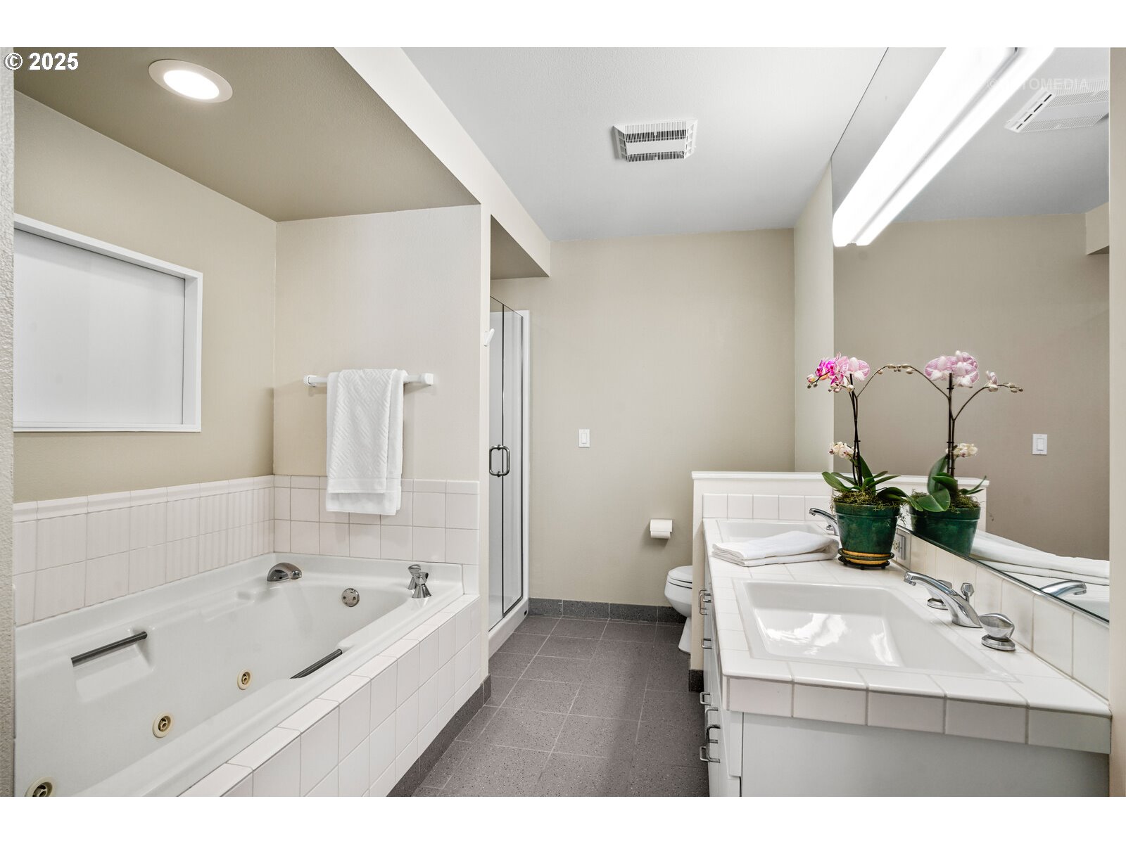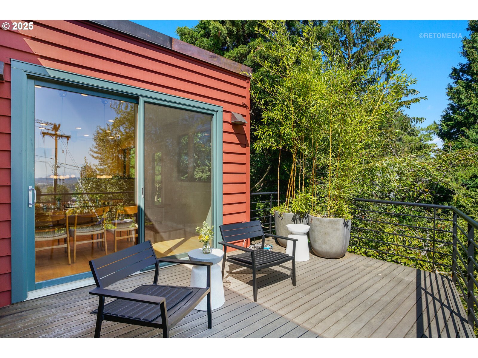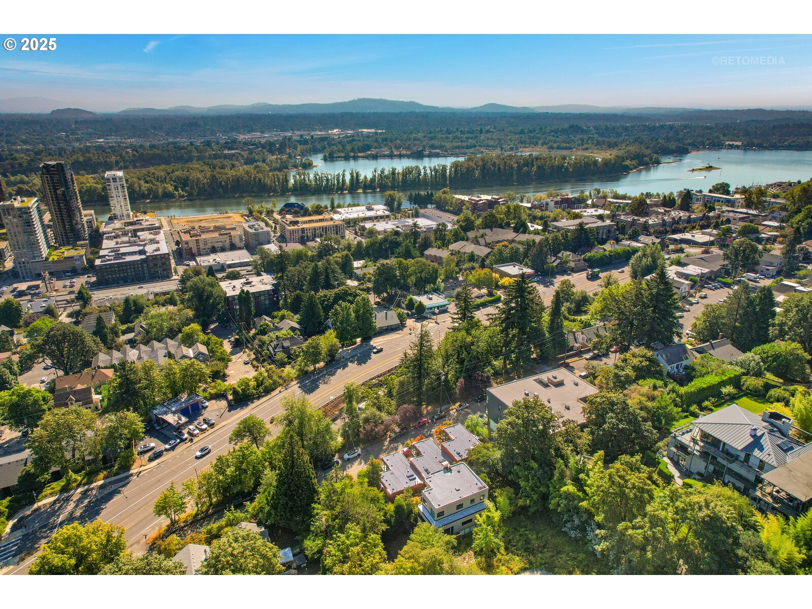 Designed by James Meyer, this contemporary townhome residence sits just minutes to downtown and OHSU. Gracious windows frame beautiful views towards the Cascades to the East and North to downtown. These expanded views include Mt. Hood, Mt. Saint Helens, the Willamette River and multiple bridges, and nighttime city lights. The orientation provides an abundance of light and spectacular sunrises. A barbecue and garden area are located just off the entry. The upper level includes tall ceilings in the living and dining rooms and the kitchen. Recently refinished maple hardwood floors throughout this level and include the stairs and landing on each level. The living room includes a gas fireplace. The kitchen offers quality finishes and lots of storage to enjoy cooking and entertaining. The dining area and living room flow seamlessly to a deck with beautiful views, creating a wonderful space for indoor/outdoor entertaining and relaxing. The middle level features both a large primary suite and a spacious junior suite. The primary suite offers a walk-in closet, soaking tub, walk-in shower, and a private deck to enjoy your morning coffee – you will be in your own oasis. The spacious second bedroom includes views to the mountains and downtown. A laundry room with storage rounds out this floor. The lower level boasts a generous studio with a kitchen and an exterior entrance. This space has many flexible options – home office, separate living quarters, or workout space/media room, the possibilities are endless! A full bathroom, large closet, utility/storage room and single-car garage complete this level. The lovely setting is conveniently close to the city – just minutes to downtown Portland, OHSU, the South Waterfront, Terwilliger and the expansive Markham Trail system.