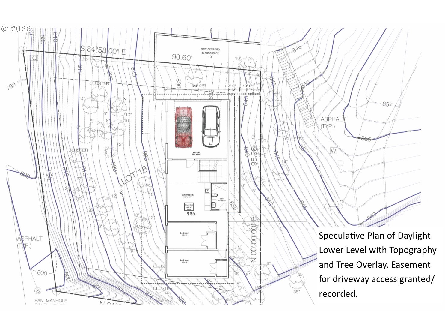 Greenhills lot w/territorial and sunset views poised in the desirable Council Crest neighborhood. Recent site plans from local architectural firm Giulietti Schouten Weber are available. Here's your opportunity to build a custom home, be it a main-level home with sunset views, a modular/container home, or a tiny home amongst the trees! Photos from Portlandmaps.com and from conceptual renderings done in anticipation for potential building. Photos 1-2 are conceptual when engineer's reports were done. Photos 3-4 are conceptual photos for modular/container homes. There is not home on the lot currently. Buyer to do due diligence regarding buildability & permitting. Geo/Soils reports available and surveys completed. Recorded easements for access and utilities also available. Lot in between addresses 4031 and 3921 SW Chesapeak. Lot has a wood fence across it. Okay to walk down the top 4 concrete steps, (please do not walk further) and walk inbetween the left side of fence, and the right side of the telephone pole to access the lot. NOTE: Lot is overgrown and sloped so enter at your own risk and please wear stable shoes.
