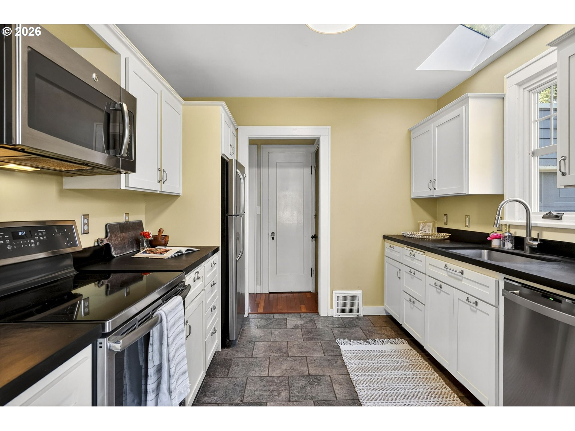 A Gorgeous Rose in Roseway! The Roseway neighborhood has always been amazingly friendly, peaceful, and unique, and this beautiful updated home will afford you many years of carefree living within it's community! The home features an array of modern upgrades and updates while also perfectly preserving the original 1926 charm it was meant to have! If natural light is what you love, then know that you will be showered in it by the custom skylights and windows throughout. Wonderfully updated & functional kitchen awaits, and the window-filled dining room is full of charm! The wood burning living room fireplace & large covered patio give the cozy functional winter living option we all covet in the Great NW! The super spacious and private backyard with it's large patio is fully fenced featuring an outdoor fire pit and raised gardens that offer hard to find year-round outdoor relaxation and play options. Also hard to come by is the huge garage with pull-through door into backyard. Rare for this home vintage & area, this double-wide & extra-deep garage will accommodate all of your toys, tools, and more! Recently remodeled lower level with egress window and modern bathroom could easily function as a primary ensuite bedroom! Huge storage room would make for a wonderful wince cellar or hobby room. So many updates and upgrades on this home, they are hard to list! Just 10 blocks to Elementary School and Park, close to shopping and restaurants, and only 10 minutes to PDX! Step into this beauty, and you'll step into our future home! [Home Energy Score = 2. HES Report at https://rpt.greenbuildingregistry.com/hes/OR10243728]