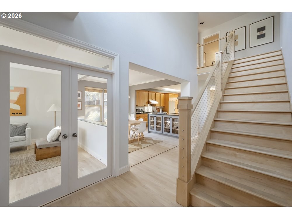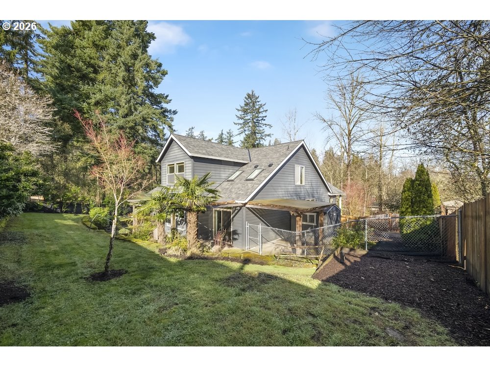 Secret yourself away from society in a beautiful green landscape, with parklands in every direction. Light-filled, modern, spacious, meticulous, with high ceilings, beautiful built-ins, and thoughtful storage solutions, throughout. A smartly articulated floor plan creates two levels of easy living: a generously sized primary bedroom with ensuite bath and walk-in closet on the main, a half bath, bonus office space, and laundry for convenience. The open confluence of contemporary kitchen, dining, and warmly illuminated great room provides social spaces for connection, with stylish floor to ceiling gas fireplace setting a scene. Contemporary appliances, a kitchen island, and room to groove welcomes gourmet gatherings. Upstairs, three additional bedrooms are afforded territorial views and uncommon privacy by clever design. A second full bath completes this level. There's RV parking for checking off road trip wish lists, a large 2-car garage providing secure parking, and there's an separate workshop structure with electricity for weekend tinkering. A covered patio overlooks an exterior that feels serene and secluded. Set out in any direction and you'll find yourself embraced by nature: parks, dog parks, creeks, and forests. Shops and schools nearby - from elementary all the way up to Portland Community and Lewis & Clark colleges - and easy commuting, as well. This beautiful home has much to offer, and is ready for you to turn the key.
