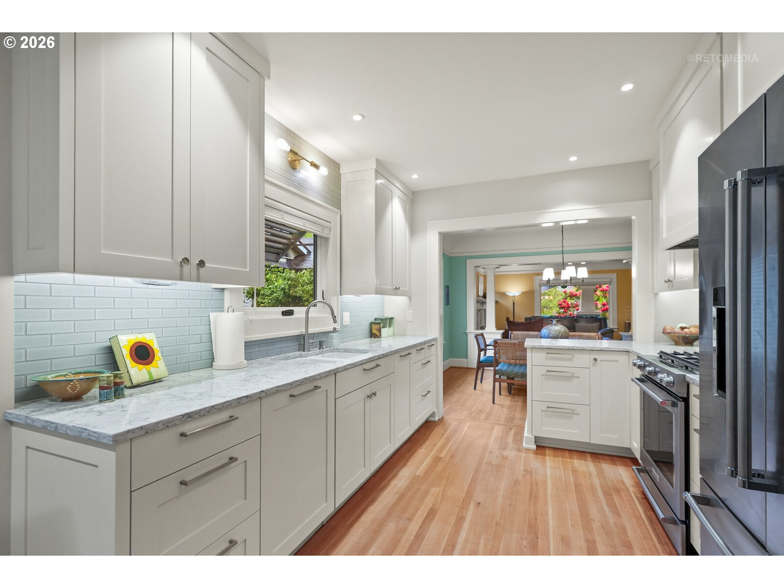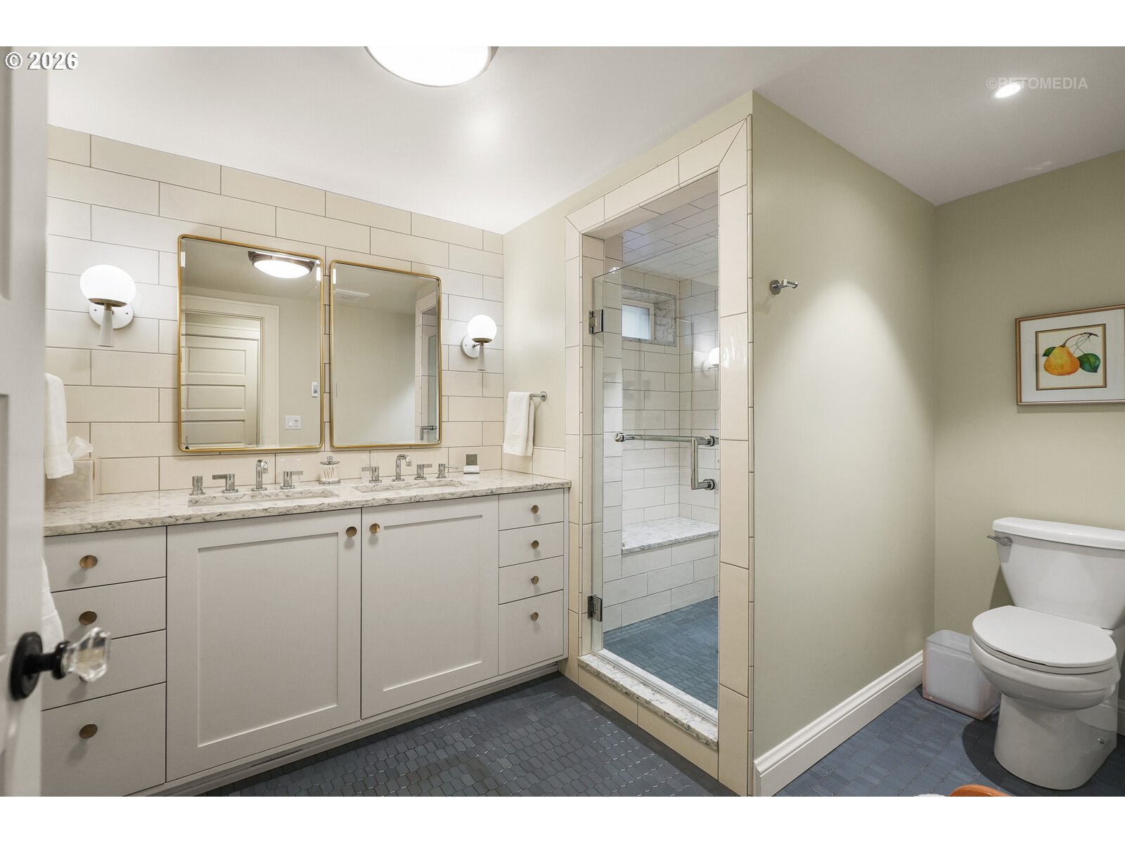 Less than a block from Laurelhurst Park, this standout Craftsman bungalow delivers the perfect mix of iconic Portland charm and high-end, modern updates. Set on a picturesque, tree-lined street, the inviting covered front porch leads into a warm, light-filled interior with hardwood floors, built-ins, and a cozy wood fireplace. The formal dining room opens to a beautifully reimagined kitchen - thoughtfully designed with custom cabinetry, premium appliances, Marvin windows, an oversized pantry, and an ideal open flow for effortless entertaining.The layout is as functional as it is stylish, offering three bedrooms plus a dedicated office. Two spacious bedrooms and an updated full bath anchor the main level, while the fully finished basement is a true retreat. Here, the expansive primary suite features a sitting area, custom walk-in closet, and a spa-like bathroom with heated floors, double vanity, and a sleek, tiled walk-in shower. A large family room and thoughtfully designed laundry area complete the lower level, adding both comfort and functionality.Extensively remodeled in 2020, the home also features upgraded systems—including new plumbing, electrical, insulation, and a new sewer and water line—providing peace of mind for years to come. Outside, enjoy a fully fenced backyard with lush, professionally designed landscaping, raised garden beds, and an oversized detached garage. Every detail has been carefully curated, making this Laurelhurst gem a rare opportunity to own a home that perfectly balances historic charm with modern convenience in the heart of Portland’s most beloved Historic District. [Home Energy Score = 5. HES Report at https://rpt.greenbuildingregistry.com/hes/OR10055060]