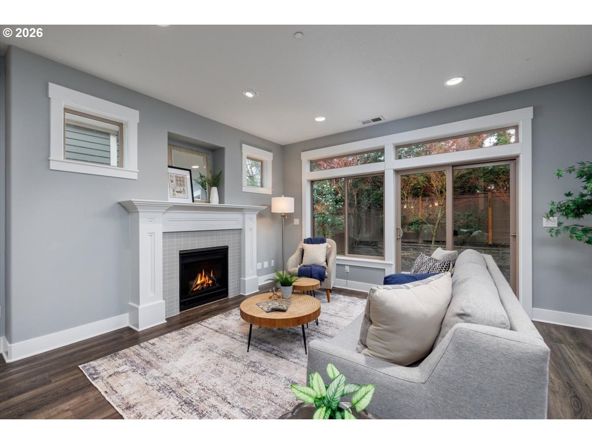Better Than New in Creston–Kenilworth! Certified Earth Advantage home featuring modern conveniences, sustainable design, and quality craftsmanship throughout. The spacious primary suite offers a high coved ceiling with crown molding, double sinks, a tiled shower, and a walk-in closet. The bright, open great room is filled with natural light and features a cozy fireplace—perfect for relaxing or entertaining. The kitchen showcases slab quartz countertops, custom built-ins, and stainless steel appliances. All appliances stay, including the refrigerator, washer, and dryer. Additional highlights include a tankless water heater and central A/C to keep you cool during Portland summers. Enjoy an unbeatable location—walk to parks, restaurants, and shops. Biker’s Paradise score of 96! Sustainable, energy-efficient living with no HOA. [Home Energy Score = 9. HES Report at https://rpt.greenbuildingregistry.com/hes/OR10176531]
