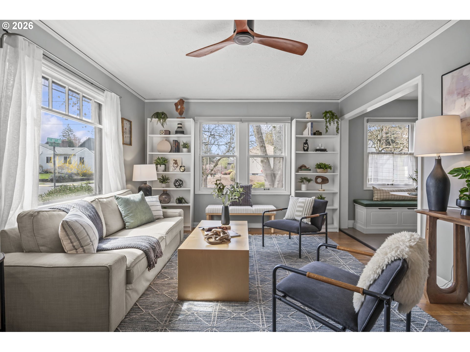 Tucked into one of Northeast Portland’s most beloved neighborhoods, this charming 1942 bungalow feels like it has a story or two to tell—full of warmth, character, and a little bit of magic waiting to unfold. From the moment you step inside you are welcomed by the warmth of original hard wood floors and large picture windows bringing in so much light.The main level offers 2 generous bedrooms and an easy, livable layout. Just off the kitchen, a darling eat-in nook with a built-in bench invites slow mornings with coffee, casual dinners, and those end-of-day chats that linger a little longer than planned. The kitchen itself is generously sized, offering plenty of space to dream, design, and make it entirely your own.Downstairs, a flexible lower level opens up a world of possibilities—home office, guest hideaway, creative studio—along with a dedicated laundry area to keep things practical behind the scenes.Outside, the large corner lot feels like your own little patch of possibility. A detached garage, covered patio, garden beds and generous yard create the perfect setting for summer dinners, or simply soaking up a bit of Portland sunshine (when it makes its appearance).And then there’s the neighborhood—where your favorite coffee shop might just become part of your daily routine. Stroll to nearby cafés, meet friends at local restaurants, or hop on your bike for an easy ride to shops and essentials. It’s the kind of place where life feels connected and convenient.Full of personality and ready for its next chapter, this delightful bungalow is a lovely opportunity to put down roots in one of Portland’s most sought-after corners. [Home Energy Score = 8. HES Report at https://rpt.greenbuildingregistry.com/hes/OR10204910]