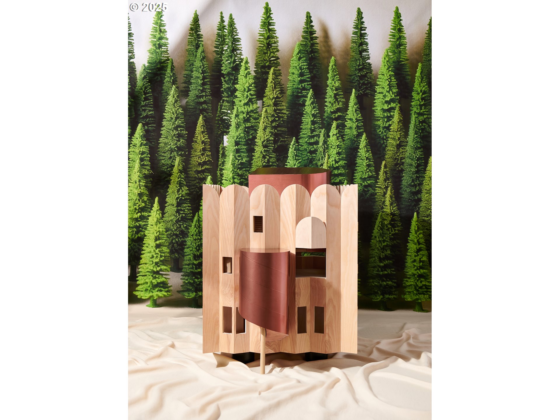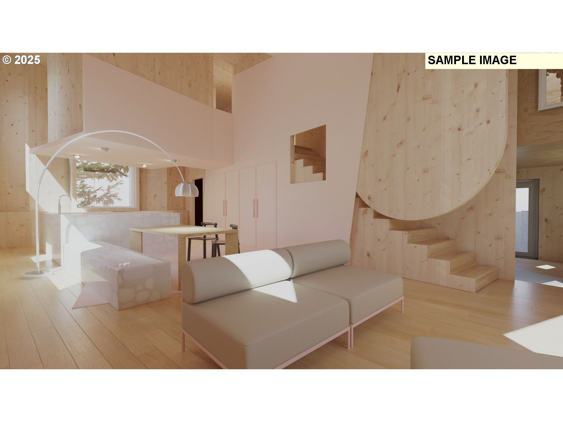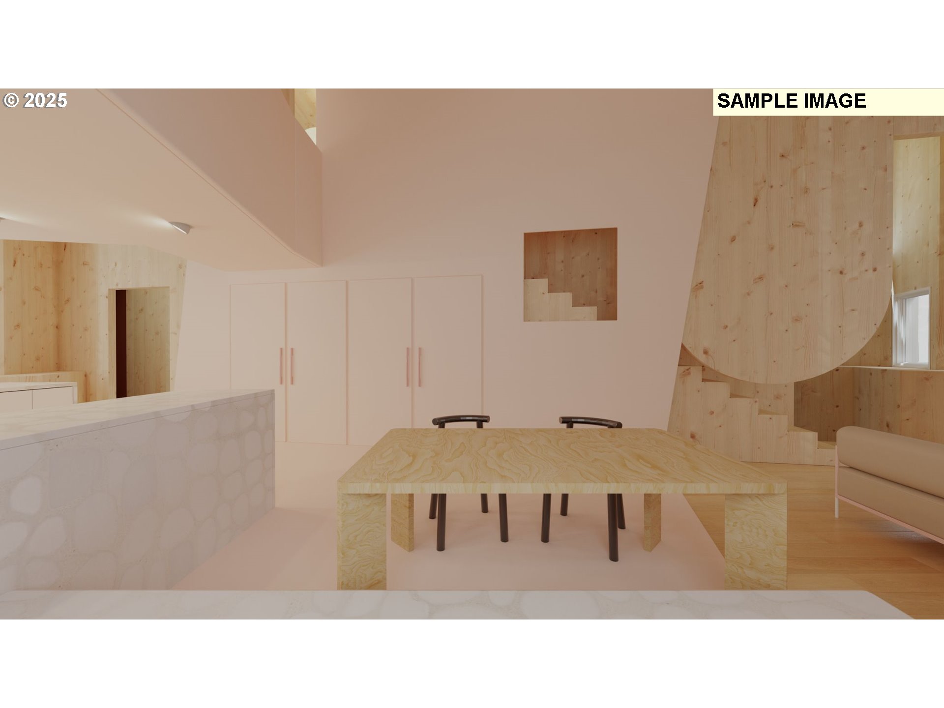 "Blank House" is an architectural masterpiece by award-winning architect Jennifer Bonner of MALL, set in Portland’s sought-after Overlook neighborhood. As the city’s first single-family cross-laminated timber (CLT) house, this visionary residence redefines modern living with its bold form, innovative materiality, and dynamic spatial compositions. The home will be constructed using CLT panels, a system that provides exceptional fire resilience with a 2-hour fire rating. Situated on a large property with an environmental overlay, it offers privacy and a strong connection to nature in a unique and historic neighborhood. The design features a vertical CLT perimeter wall acting as both structure and sculptural element, rising up to 34 feet. A sister project to the acclaimed Haus Gables in Atlanta, this home celebrates architectural experimentation, material exploration, and livable art. Inside, the layout is designed for function and flow, with an entry lounge, kitchen, office, and living area on the main floor, all with hardwood flooring. The lower floor includes two bedrooms with polished concrete floors and radiant heating, plus tiled bathrooms. The upper floor offers a third bedroom, a sauna, and a roof terrace with an enclosed sitting area, creating a private retreat with stunning views. Custom interior finishes enhance the modern aesthetic, and the home’s tiered design follows the natural slope of the site. This permit-ready home has all necessary approvals in place, making it a truly ready-to-build project. Contact us today to learn more about this rare opportunity to bring an architectural vision to life. Visit the physical dollhouse model at City of Possibility (401 SW 5th Ave) every Fri, Sat, and Sun from 12-6 until 3/27.