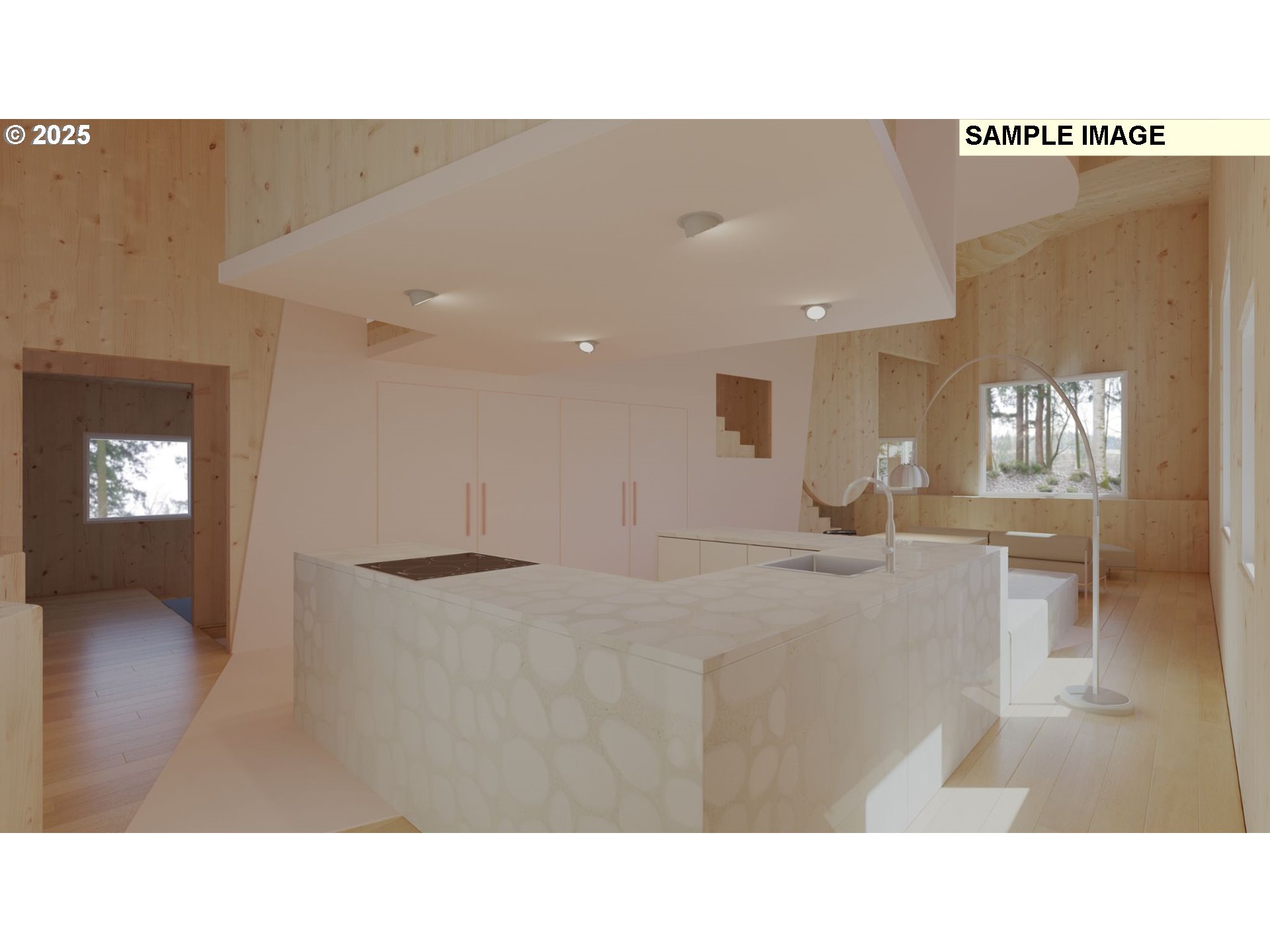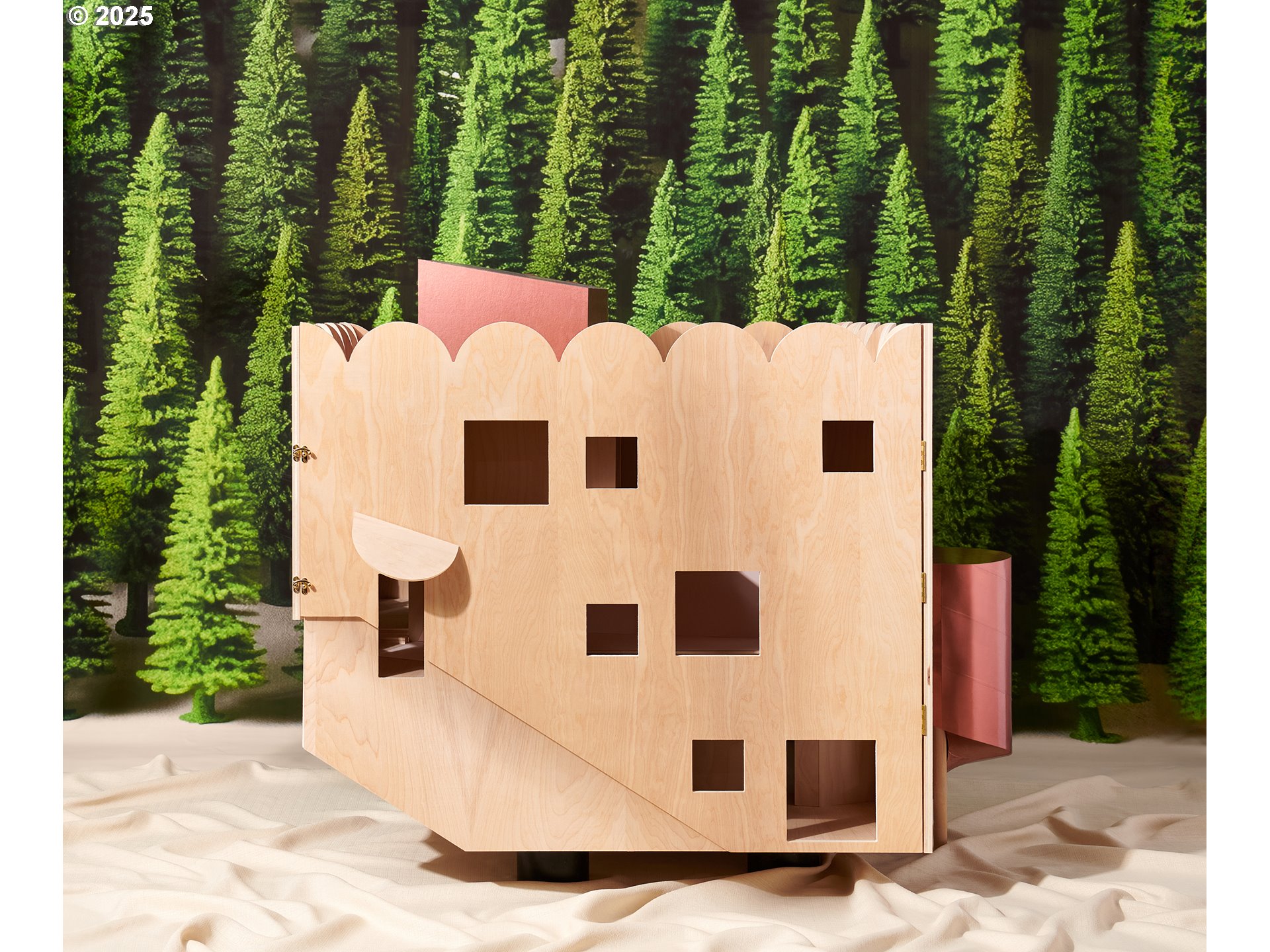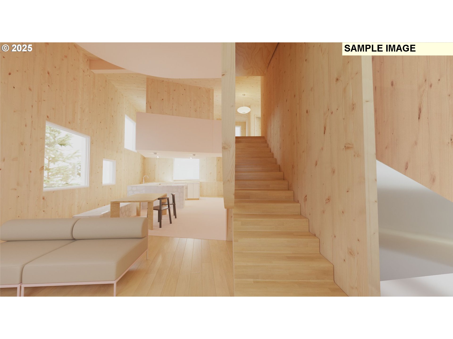 "Blank House" is an architectural masterpiece by award-winning architect Jennifer Bonner of MALL, set in Portland’s sought-after Overlook neighborhood. As the city’s first single-family cross-laminated timber (CLT) house, this visionary residence redefines modern living with its bold form, innovative materiality, and dynamic spatial compositions. The home will be constructed using CLT panels, a system that provides exceptional fire resilience with a 2-hour fire rating. Situated on a large property with an environmental overlay, it offers privacy and a strong connection to nature in a unique and historic neighborhood. The design features a vertical CLT perimeter wall acting as both structure and sculptural element, rising up to 34 feet. A sister project to the acclaimed Haus Gables in Atlanta, this home celebrates architectural experimentation, material exploration, and livable art. Inside, the layout is designed for function and flow, with an entry lounge, kitchen, office, and living area on the main floor, all with hardwood flooring. The lower floor includes two bedrooms with polished concrete floors and radiant heating, plus tiled bathrooms. The upper floor offers a third bedroom, a sauna, and a roof terrace with an enclosed sitting area, creating a private retreat with stunning views. Custom interior finishes enhance the modern aesthetic, and the home’s tiered design follows the natural slope of the site. This permit-ready home has all necessary approvals in place, making it a truly ready-to-build project. Contact us today to learn more about this rare opportunity to bring an architectural vision to life. Visit the physical dollhouse model at City of Possibility (401 SW 5th Ave) every Fri, Sat, and Sun from 12-6 until 3/27.