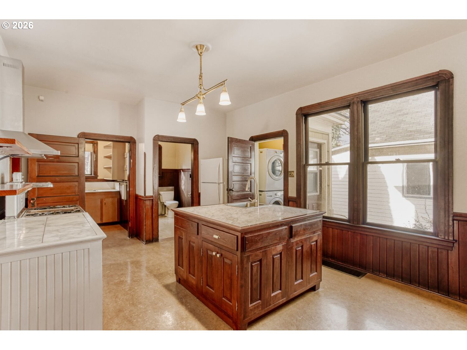 Open Sat 12-2, Sun 2-4. Ahoy there! Who wants to be the next captain of an 1908 boarding house which housed ship builders from Swan Island? There are four large bedrooms upstairs, including a double room primary suite! On the main floor are three large living rooms plus the oversized kitchen and walk-in pantry, likely used to feed all those hungry workers over a century ago. And so many of the original details remain, like the tall pocket doors, dark varnished wood, and even the buzzer system up to each of the bedrooms. Original hardwoods grace many of the rooms, with marmoleum and vintage vinyl flooring overlays. The basement has a few more rooms, including a potential theater dark room and a second laundry area. And there is a large unfinished attic, perhaps for future expansion on a 4th floor? The back yard has raised garden beds to keep your bulbs dry, and a brick patio for yard furniture. The long driveway can hold three cars, plus maybe a rowboat? The King neighborhood is a walking and biking paradise - Walk Score=95, Bike Score=100. MLK is just one block to the east, providing easy access to the trade routes around you! And if you are seeking to avoid the King’s taxes, check out these low property taxes! Most of the mechanical systems have been upgraded during the current owners 25 year history: new roof in 2021, UST decommissioning and new 96% furnace and a/c in 2006, plus newer electric panel and plumbing upgrades. Come check it out this weekend! [Home Energy Score = 1. HES Report at https://rpt.greenbuildingregistry.com/hes/OR10244838]