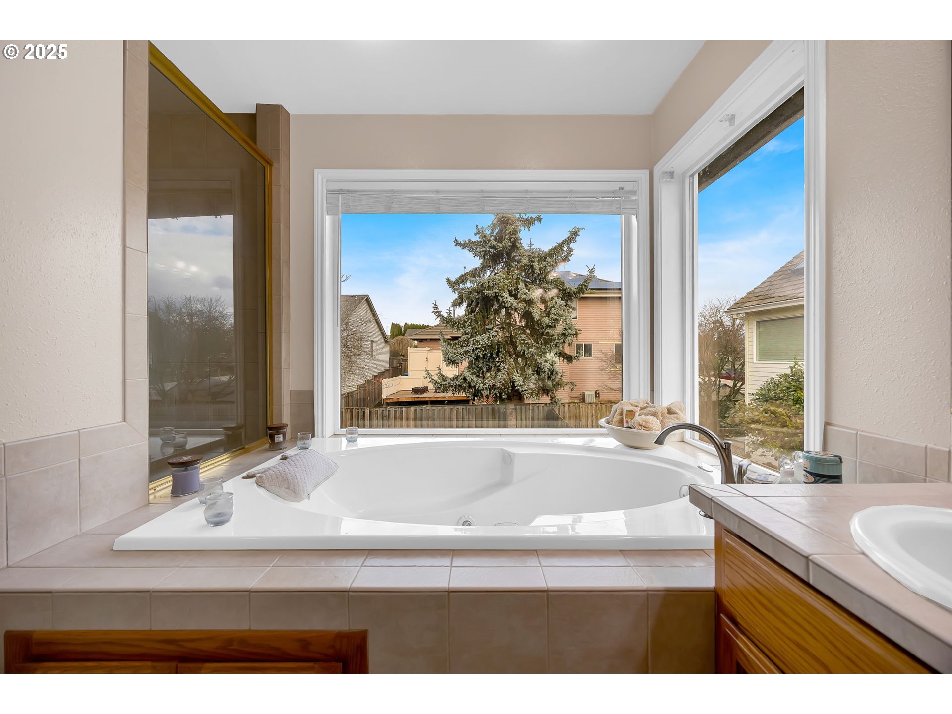 CeilingFan, GarageDoorOpener, HardwoodFloors, JettedTub, Laundry, TileFloor, VaultedCeiling