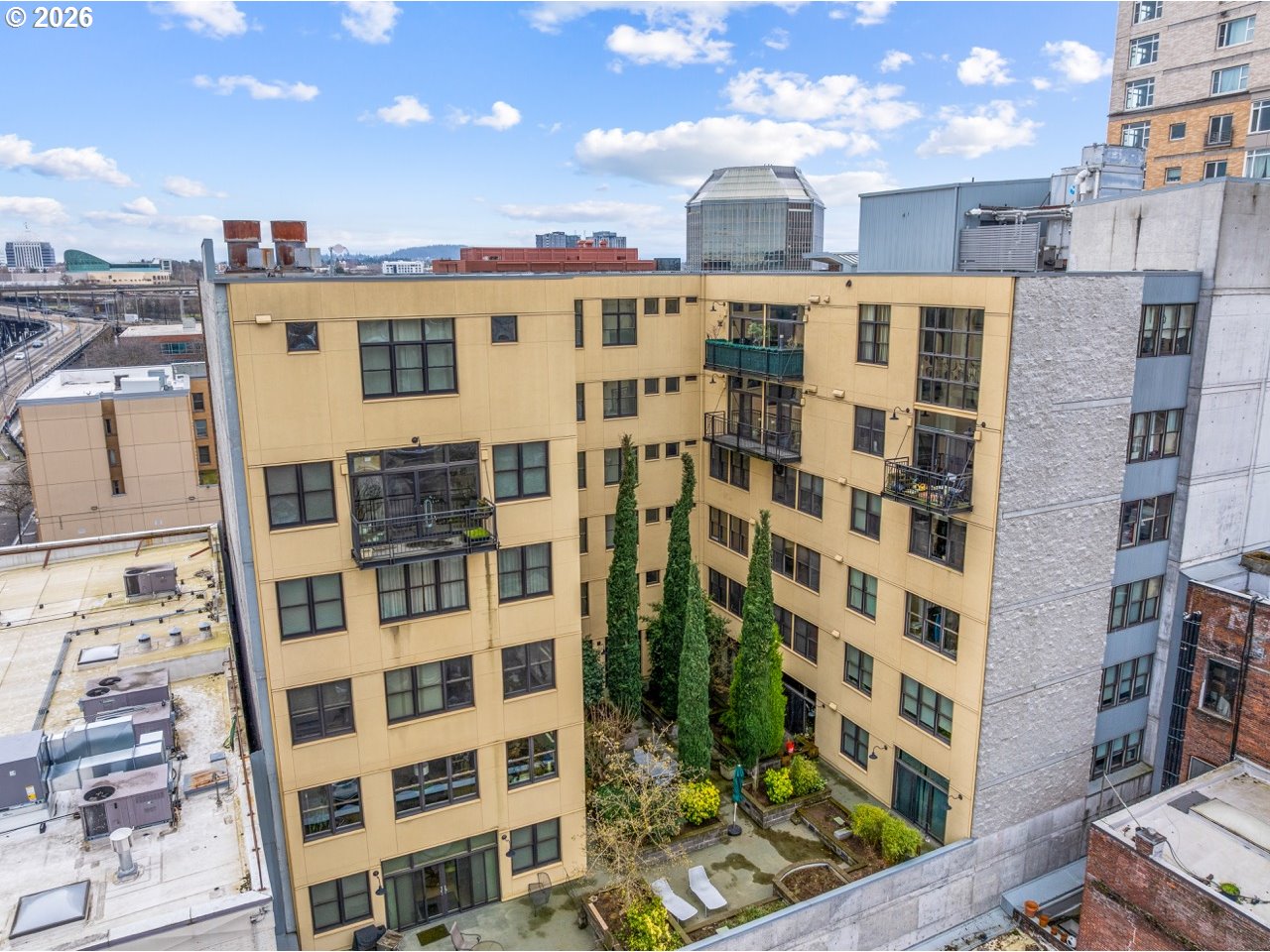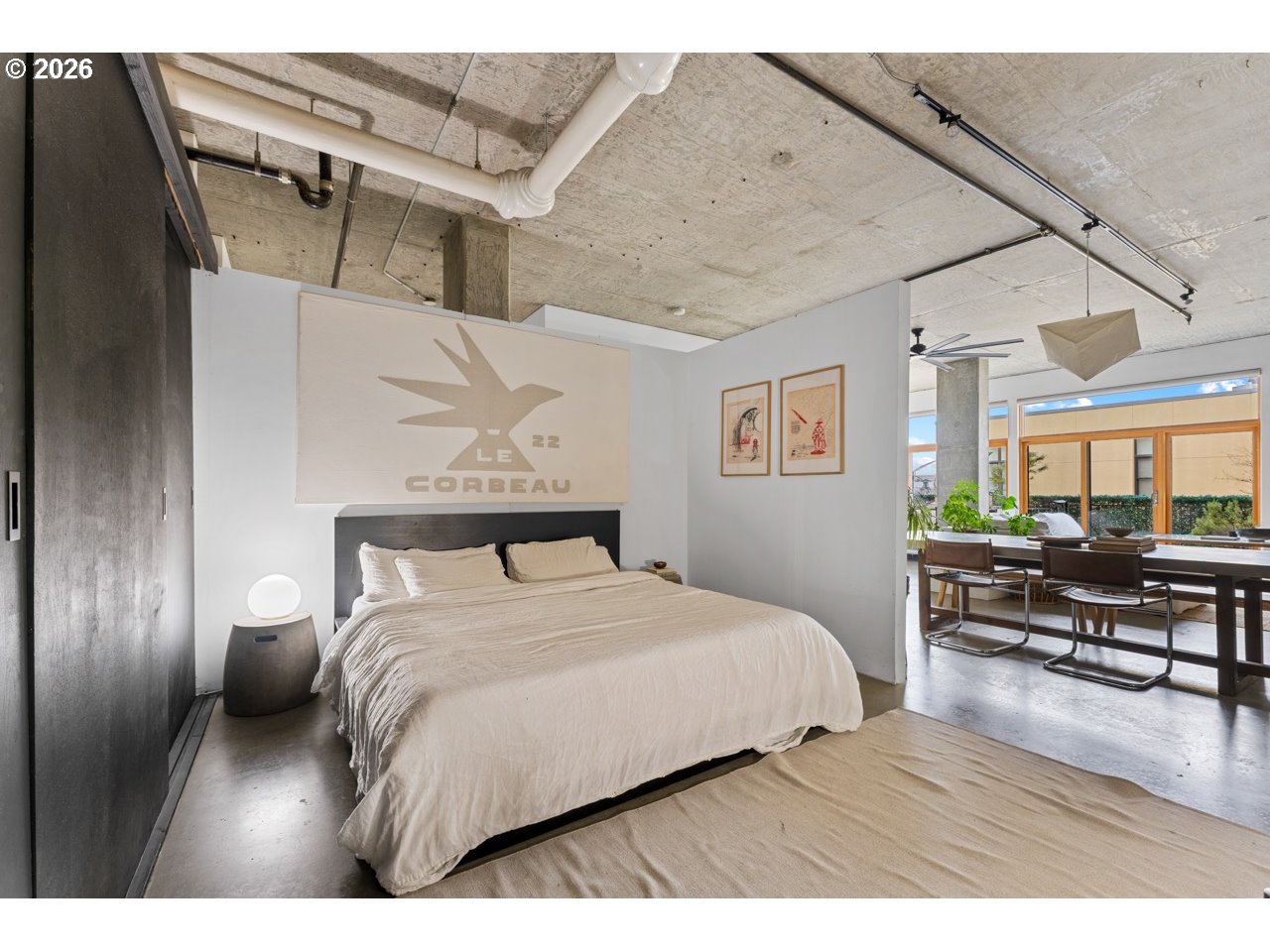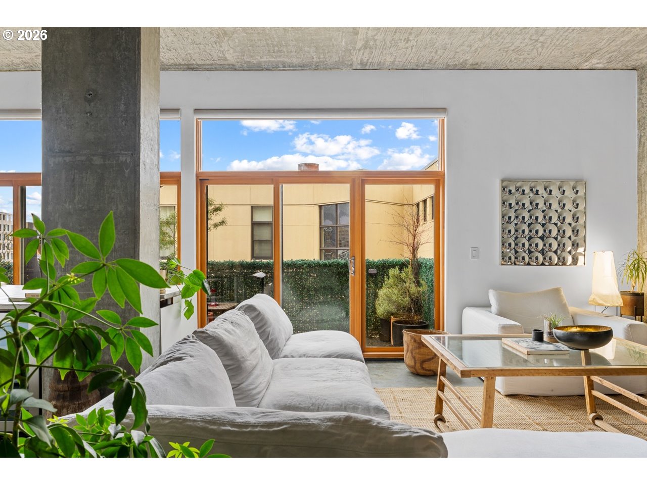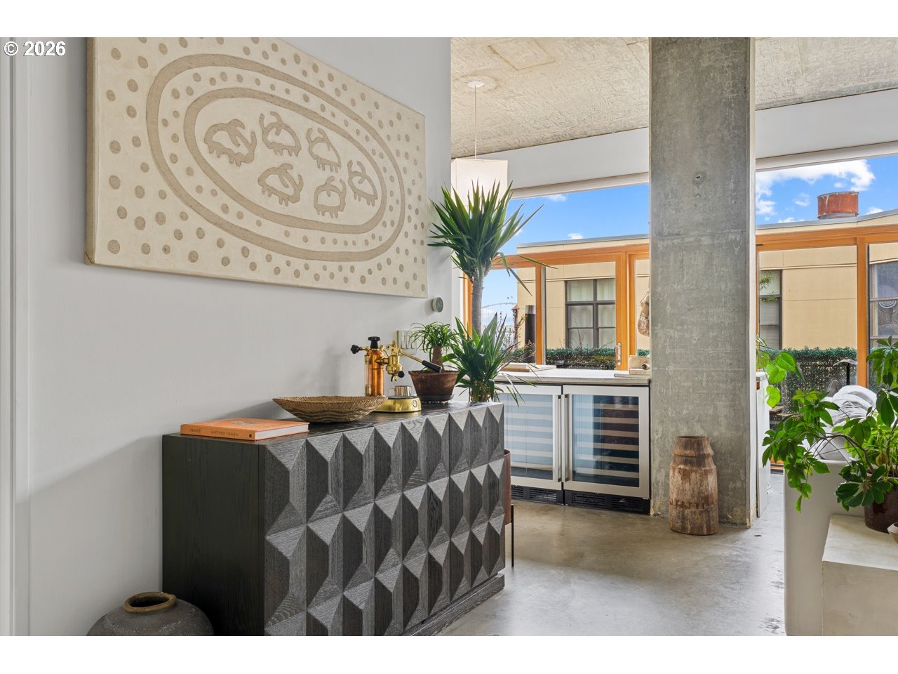 Welcome home to your bright and modern condo, thoughtfully designed by one of Portland’s prominent artists. You are just steps from some of Portland’s best eats. This space features an open layout, soaring ceilings, oversized windows, and abundant natural light. The sleek kitchen showcases concrete countertops, custom cabinetry, premium Cuisinart appliances, and a built-in wine fridge—perfect for entertaining. Enjoy a private northwest-facing top-floor patio, while automatic blinds add comfort and convenience throughout. The spacious bedroom offers a relaxing retreat, and additional highlights include in-unit laundry, deeded parking with EV charging, storage, and access to a private courtyard. Seller offering a credit equivalent to 3 months of HOA dues—ask for details.