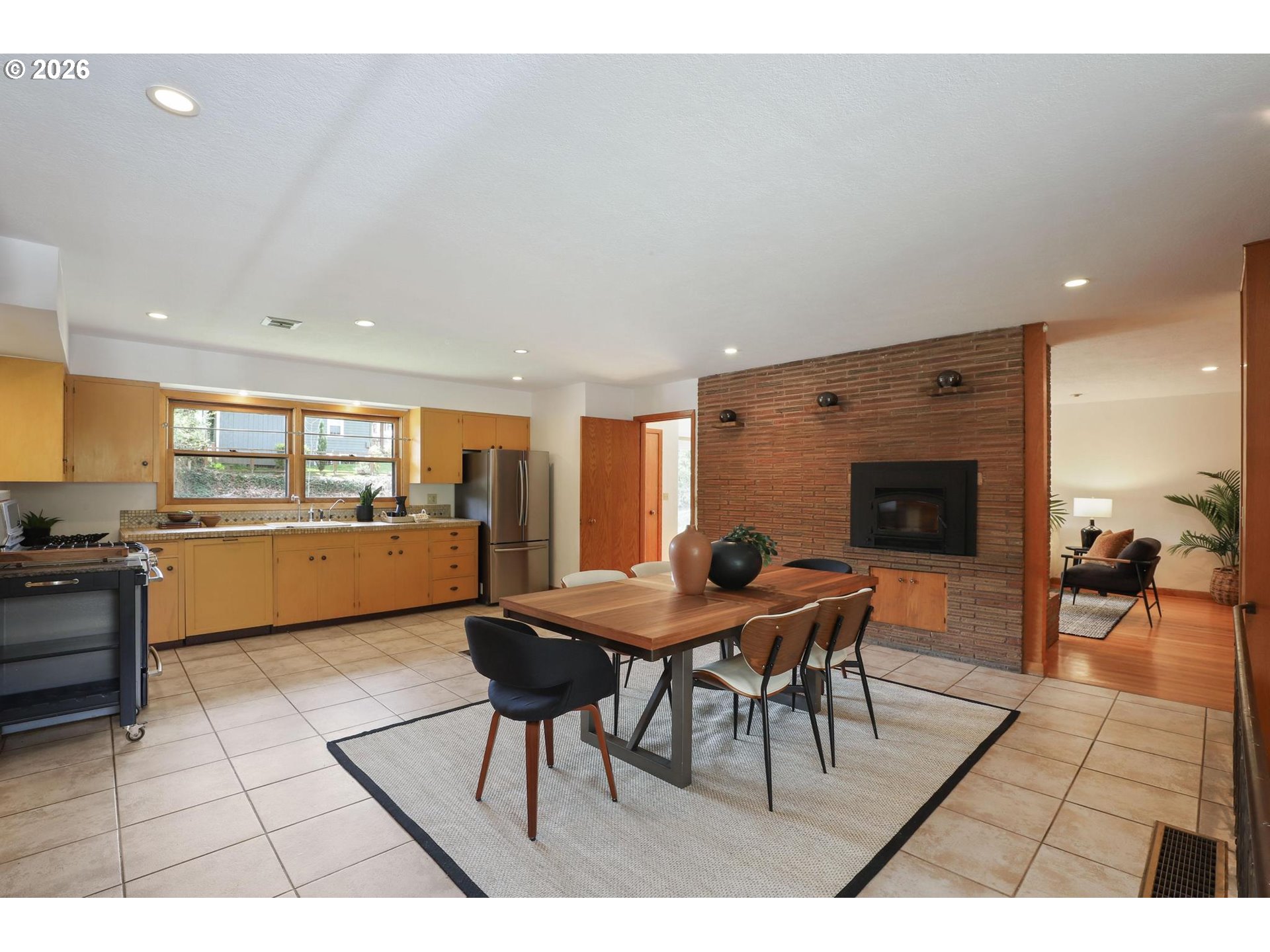 Classic 1958 mid-century ranch with Roman Brick exterior, extensive paneling, 3 fireplaces, open spaces and a separate entry 'apartment' in the lower level! This rare-for-the-neighborhood ranch has been in the same family since built. Exceptionally special and spacious with 3 bedrooms and 2 bathrooms on the main floor and an open living room/family room/kitchen space with a fireplace. Lower level includes another family room with a fireplace and an amazing 'apartment' wing with an outside entrance, 2nd kitchen, bathroom & full bedroom (Lower level bedroom is non conforming). More storage than you can imagine, including a huge lower level bonus room for projects, play and more, plus a 2 car garage that is so rare in this inner city neighborhood. Regulation Basketball hoop in driveway. All of this in the popular Richmond neighborhood, convenient to groceries, coffee, cycle routes, Clinton, Division, Hawthorne and more! [Home Energy Score = 1. HES Report at https://rpt.greenbuildingregistry.com/hes/OR10246094]