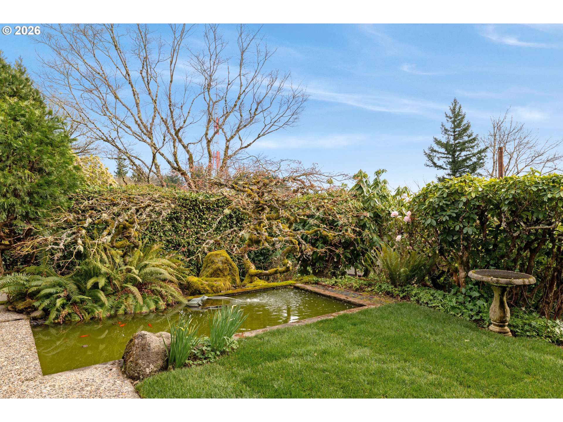 Perched in the highly desirable Council Crest neighborhood, this stunning Midcentury Modern home captures sweeping valley views from a private corner lot on nearly a quarter acre. Designed for effortless main-level living, the home features an open-concept layout with vaulted ceilings, exposed beams, and expansive windows that flood the space with natural light. The spacious kitchen offers custom cabinetry, ample counter space, and a layout ideal for both everyday living and entertaining. It flows effortlessly into the main living area, where walls of windows frame the surrounding scenery, a cozy gas fireplace creates a warm focal point, and custom built-in shelving adds both function and architectural character. The primary ensuite serves as a peaceful retreat, highlighted by a charming bay window overlooking the backyard—an inviting spot to relax and take in the serene surroundings. Step outside to a backyard oasis, where mature shrubs provide privacy and a forest like esthetic. A tranquil pond with fish enhances the calming ambiance, making it a perfect setting for quiet mornings or evening gatherings. An accessory kitchen on the lower level provides excellent potential for guest quarters, multigenerational living, or a future ADU. The hard to find garage setup features a main level single-car garage and a lower level two-car garage, offering ample storage and flexibility. With its unique blend of style, functionality, and location, this home presents a rare opportunity to experience classic midcentury modern living in one of the area’s most sought-after neighborhoods. [Home Energy Score = 3. HES Report at https://rpt.greenbuildingregistry.com/hes/OR10245798]