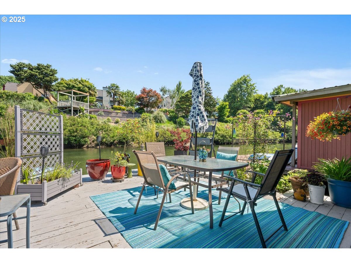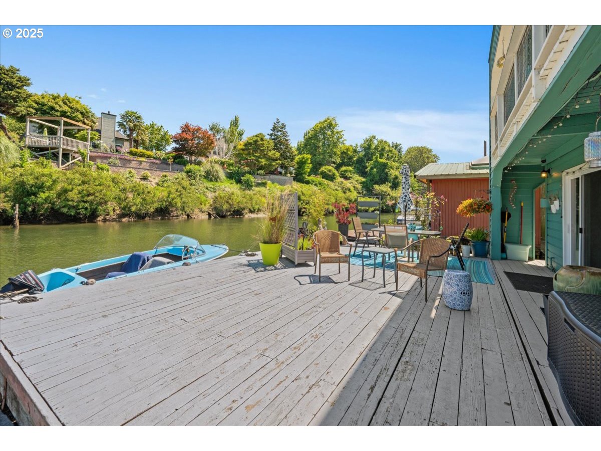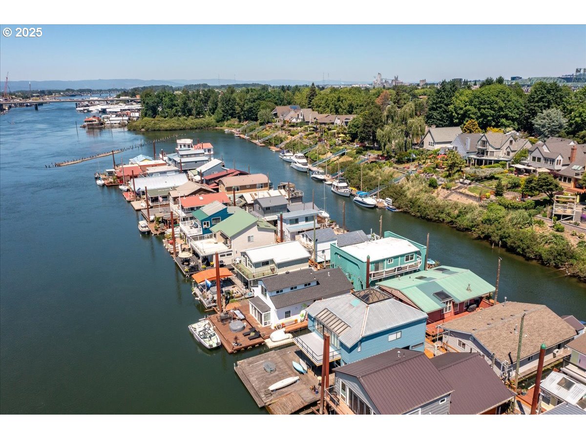 (503) 893-8874Live the River Life in Style – Unique Floating Home on the Columbia River. Experience the ultimate in Pacific Northwest waterfront living with this one-of-a-kind floating home located on the peaceful North Portland Harbor. Offering 1,866 square feet of thoughtfully designed space, this 2-bedroom, 2-bath retreat blends comfort, style, and a true connection to the outdoors. Inside, the main level welcomes you with bamboo floors, a cozy gas fireplace in the living room, along with a gorgeous wood beamed ceiling. A slider opens to a spacious float dock that doubles your entertaining space—imagine lounging, dining, nights by a fire and enjoying your view of Mt. Hood to the east. Dock your boat right outside, or hop on your paddleboard or kayak straight from your own backyard. And don't forget fishing! The kitchen is a showstopper—featuring abundant storage, granite countertops offering plenty of prep space, stainless steel appliances, and stunning views of the river & wildlife. The main level also includes a 3/4 bathroom, a generous laundry room, and a guest bedroom ideal for visitors or a home office. Up the spiral staircase, you’ll find an entire sun-filled second living area with a gas fireplace, wet bar, and beautiful wood plank ceiling creating the perfect space for relaxing or entertaining. Also on the second level is the expansive primary suite boasting large closets and an ensuite bathroom. With 180 degree views from the upstairs living area -you won't want to leave. Step out onto the wrap around upper deck and take in sweeping river views morning to night.Recent updates include 3 mini splits to keep the temperature perfect during all seasons. Metal roof maintenanced and upgraded for peace of mind. Float score a #4 in 2022- float was rebuilt in 2014. Whether you're seeking a peaceful retreat or an active lifestyle on the water, this floating home delivers it all—style, space, and a rare connection to nature, all within reach of Portland’s vibrant city life.