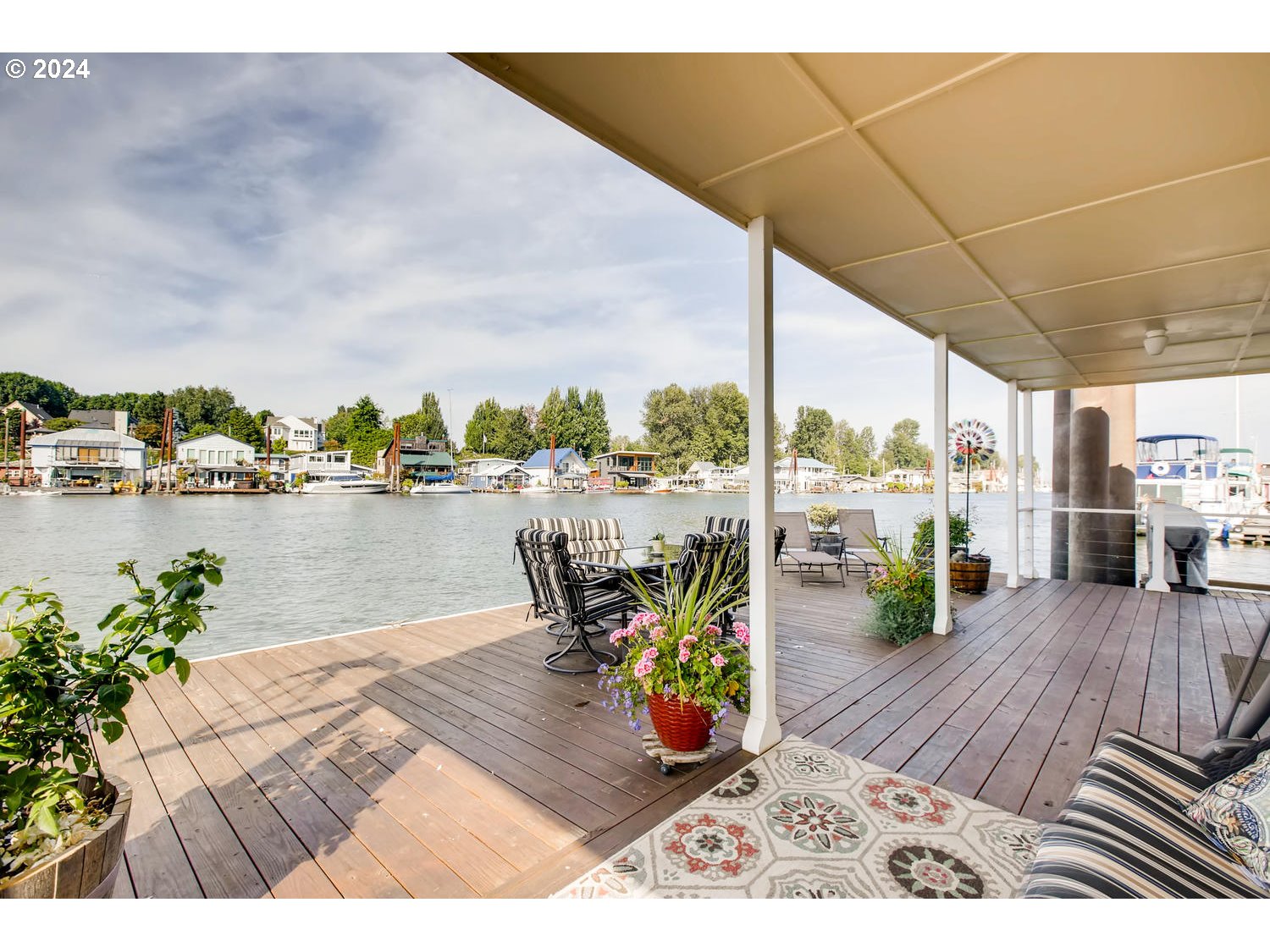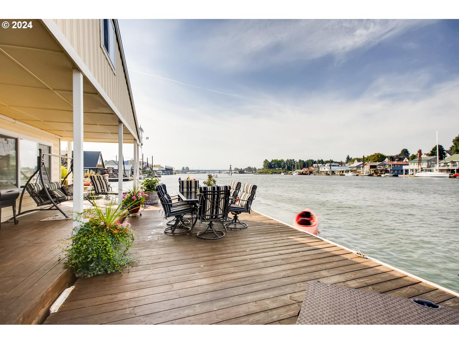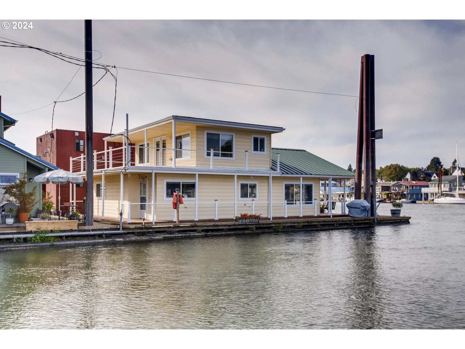Front view floating home with panoramic view of North Portland Harbor. Inside the home has been updated with contemporary finishes. Large Island Kitchen is a cook's delight. Very large swim float with ability to moor a large boat. Log and Steel stringers float with a 4 rating. Located in quaint Bridgeton Neighborhood. Slip ownership with 5 other floating homes. Parking for 2 cars side by side located by top of the ramp.
