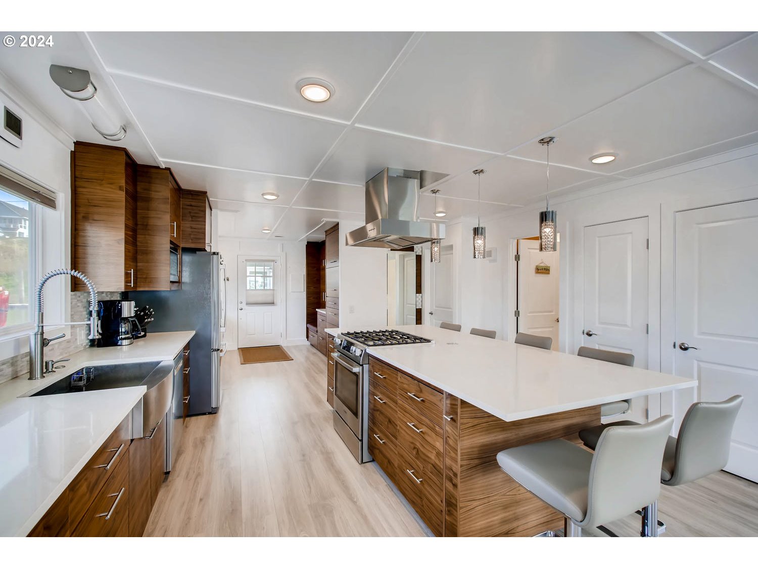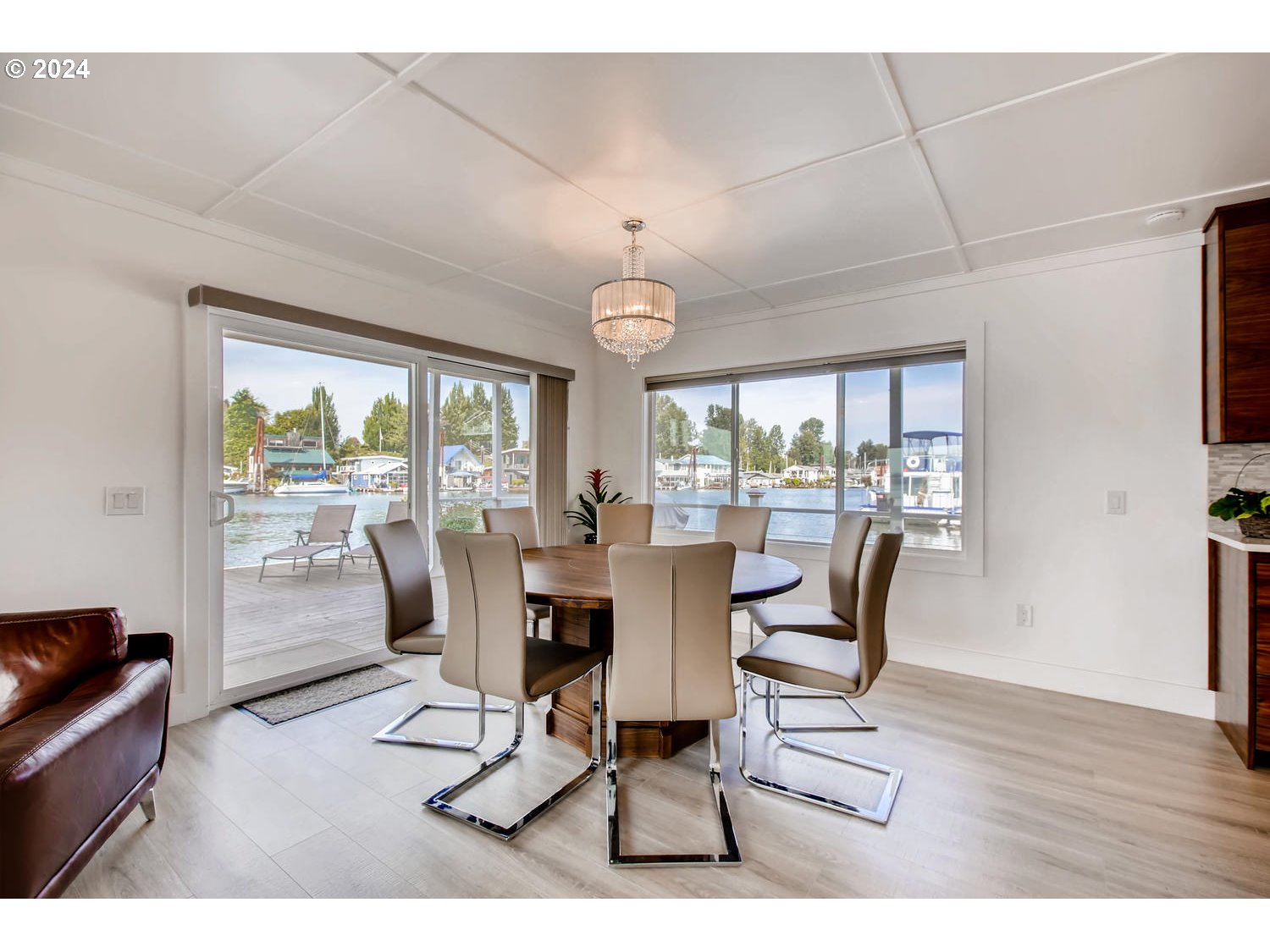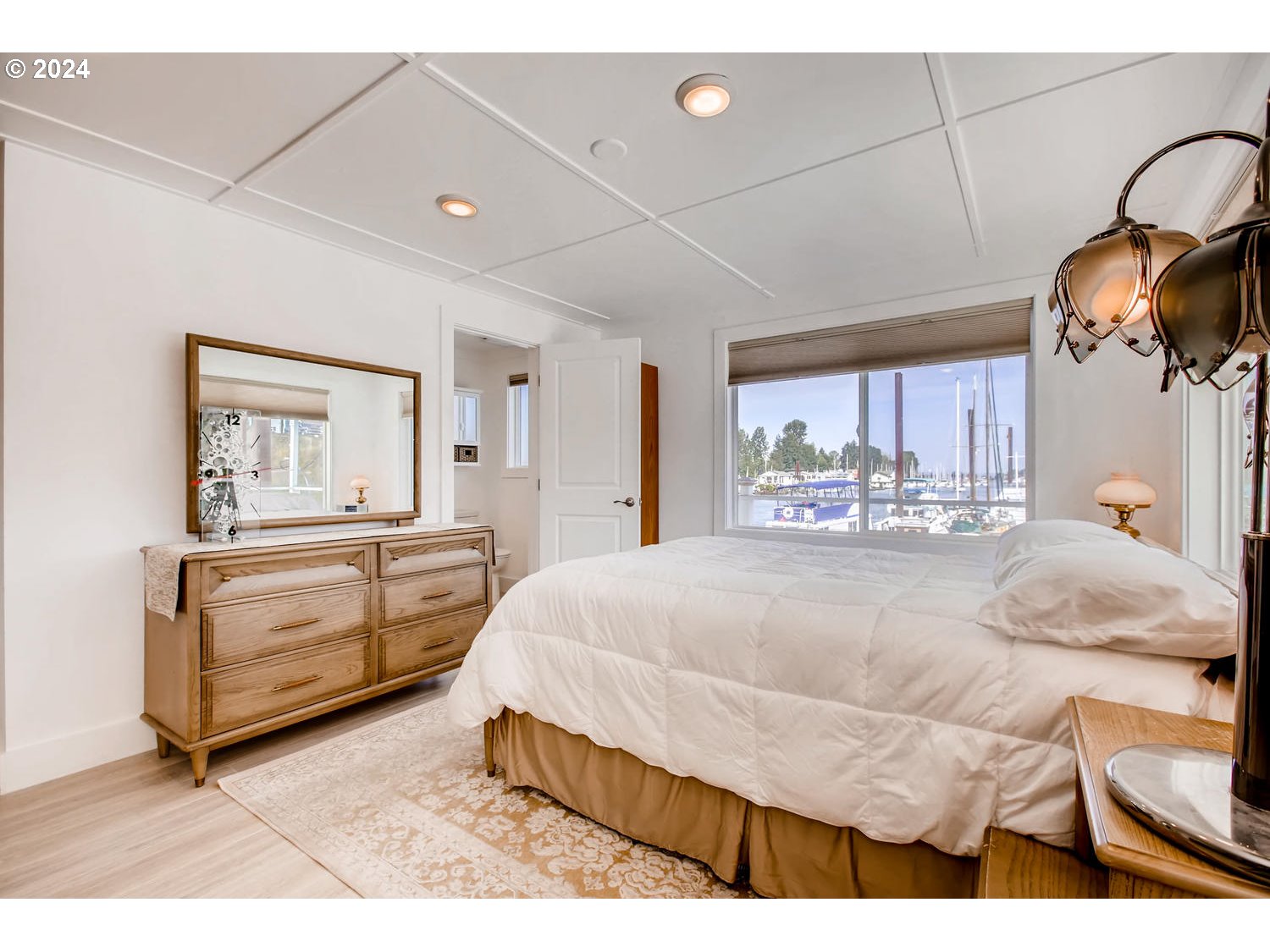 Front view floating home with panoramic view of North Portland Harbor. Inside the home has been updated with contemporary finishes. Large Island Kitchen is a cook's delight. Very large swim float with ability to moor a large boat. Log and Steel stringers float with a 4 rating. Located in quaint Bridgeton Neighborhood. Slip ownership with 5 other floating homes. Parking for 2 cars side by side located by top of the ramp.