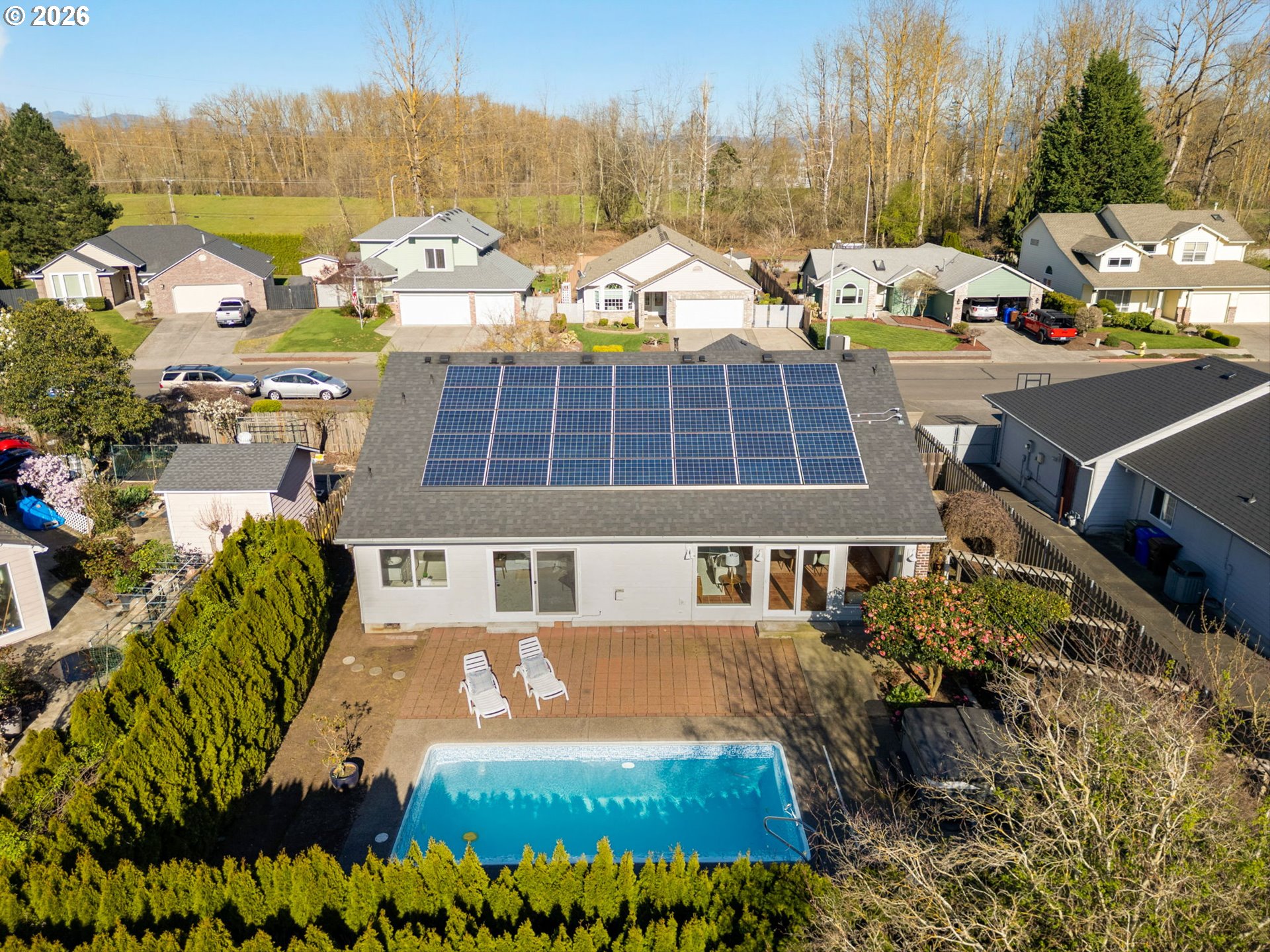 (503) 893-8874This summer is shaping up to be a hot one and this is the home to enjoy it in! First time on the market, this single-level home features a private backyard retreat complete with a pool, hot tub (2022), and solar panels for added efficiency. Ideally located with easy access to I-84, and within short distance to Fairview Lake and Blue Lake, a 64-acre natural lake offering boating, fishing, swimming, picnicking, and community events. Also nearby is Chinook Landing Marine Park, a 67-acre park with multiple boat launches on the Columbia River. Inside, you’ll find an abundance of natural light, large windows, and an open floor plan perfect for everyday living and entertaining. Additional features include RV parking, gas appliances, a new roof (2021), fresh interior and exterior paint, and new carpet. Pool is currently empty for safety, photos have water added. Summer is just around the corner & this home is ready for you to soak it all in.