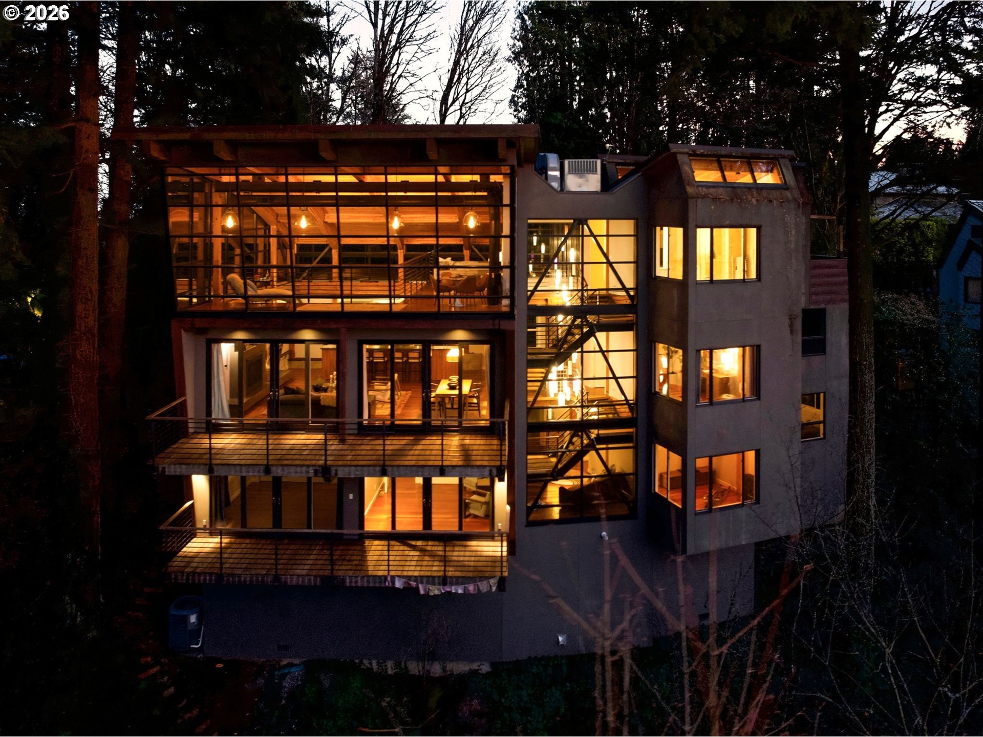 (503) 893-8874Incredible architect-designed contemporary masterpiece in the coveted West Hills, commanding sweeping city skyline and mountain vistas, including Mt. St. Helens, Mt. Adams, and Mt. Rainier. Thoughtfully crafted to maximize light and views, the home was designed by renowned Portland architect Mark Annen built withcommercial-grade beam-and-post construction, while showcasing striking architectural elements—walls of glass, arched wood-beamed ceilings, and exposed steel framing—creating a dramatic yet refined living environment. The gourmet kitchen is designed for both elevated entertaining and everyday living, appointed with Viking appliances, concrete countertops, an oversized island, and a built-in espresso machine. It flows seamlessly into expansive living and dining spaces anchored by a gas fireplace and opening to a generous view deck. A sculptural floating staircase ascends to a light-filled loft and a tranquil primary retreat featuring a dressing room, private view deck, and spa-inspired bath complete with soaking tub and walk-in shower. The lower level offers three additional bedrooms, a versatile bonus room with fireplace, abundant storage, wine refrigeration, and a dedicated laundry room. Outdoor spaces are equally compelling, with a welcoming front patio and two dramatic cantilevered decks designed for entertaining or peaceful moments among the treetops. Additional highlights include an EV-ready two-car garage and a 50+ year copper roof—an enduring testament to quality and design. Located within Portland’s top-rated schools and just minutes to downtown, NW amenities, and the endless trails of Forest Park, this is a rare opportunity to own a truly exceptional modern retreat in one of the city’s most desirable neighborhoods. [Home Energy Score = 1. HES Report at https://rpt.greenbuildingregistry.com/hes/OR10051240]