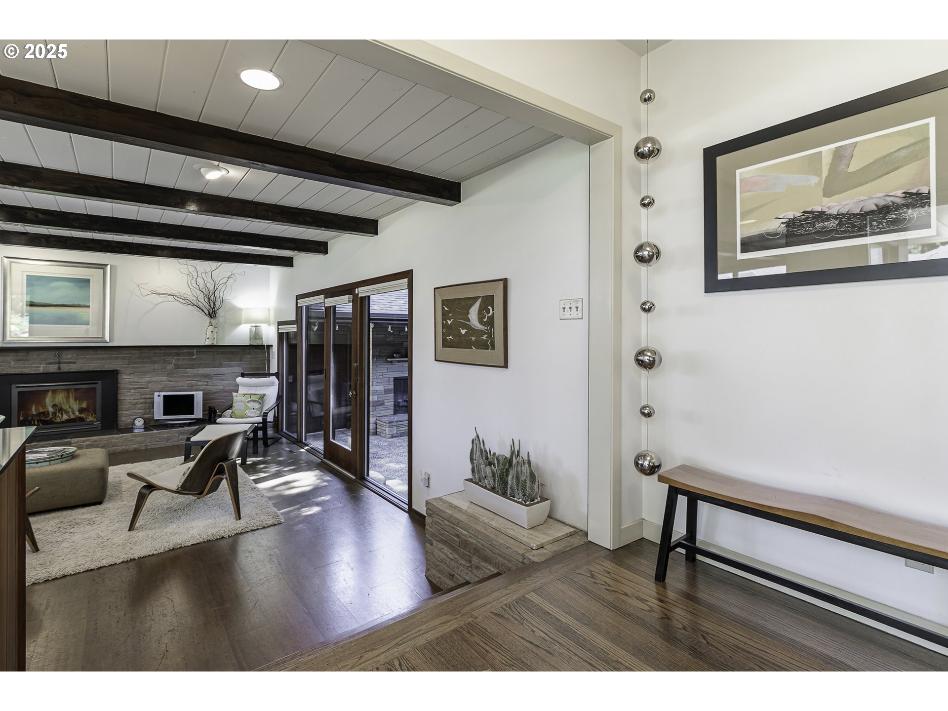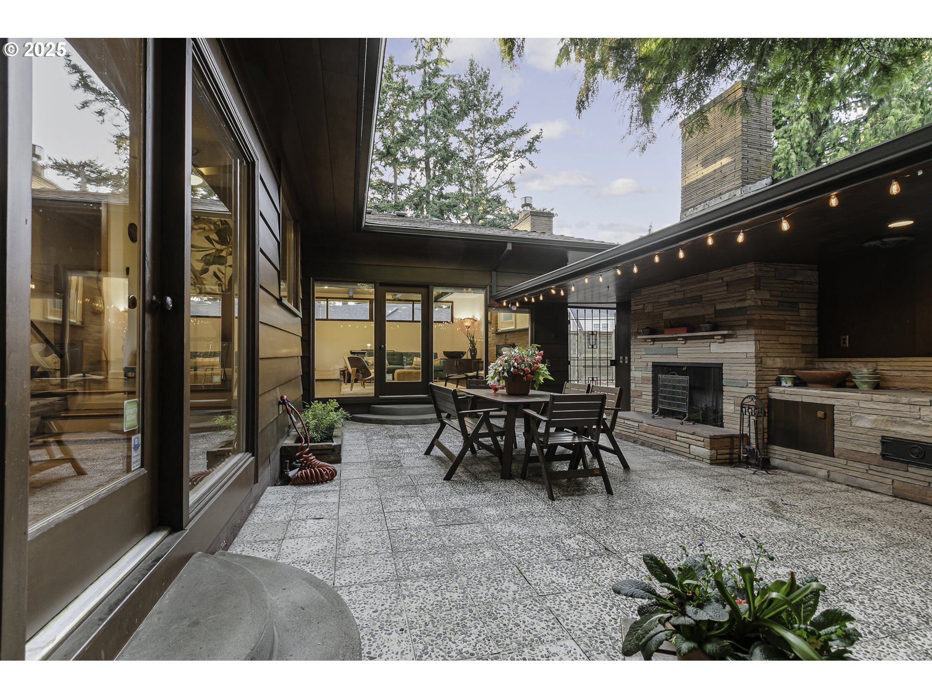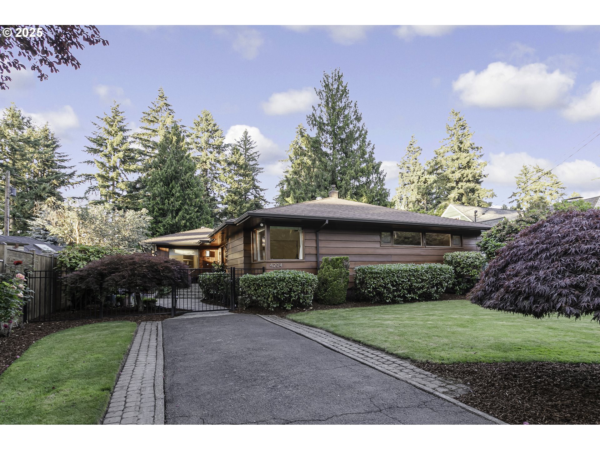 OPEN HOUSE: Saturday 3/14, 12-2PM. Mid-Century Modern Masterpiece in Maywood Park Step through the gated flagstone front patio and you’ll instantly feel transported to somewhere truly special. Originally built in 1927, this architecturally significant home was thoughtfully reimagined in 1955–56 into a stunning Mid-Century Modern residence. Featured in the August 1956 edition of American Home Magazine, it showcases the hallmark design elements of the era—clean lines, open spaces, and seamless indoor-outdoor living. Walls of windows in the living and dining rooms invite natural light and offer peaceful views of the private interior patio, creating a serene and airy ambiance. The easy-care front yard and absence of a backyard make this property perfect for those who prefer low-maintenance outdoor living without sacrificing style or charm. While the home retains its timeless mid-century character, it has been tastefully updated with modern comforts, including a 96% high-efficiency furnace, tankless water heater, cork flooring, and quartz kitchen countertops. The lower level offers a warm and inviting guest suite inspired by the rustic charm of Timberline Lodge—perfect for visitors or multigenerational living. Generous parking is available with both a front driveway & rear access to a detached garage and RV parking. This is a rare opportunity to own a piece of architectural Mid-Century history in one of Portland’s most desirable neighborhoods.