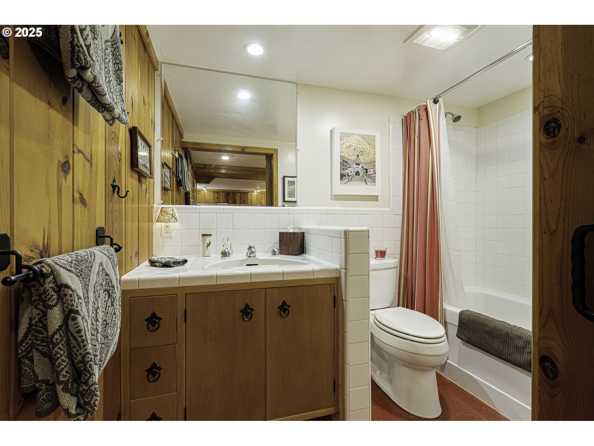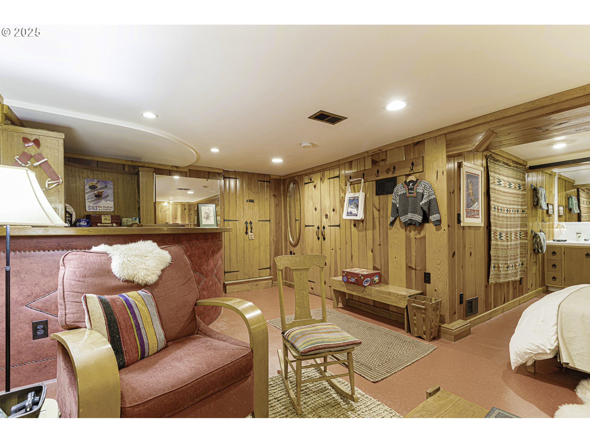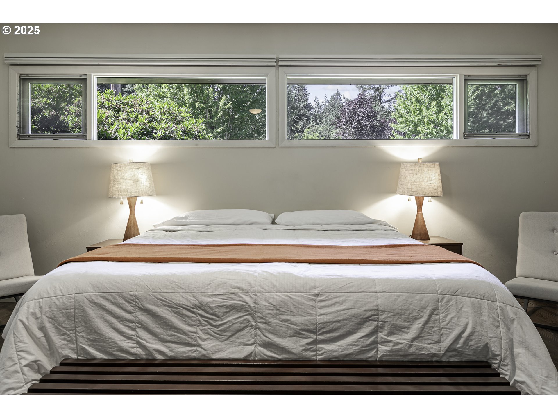 OPEN HOUSE: Saturday 3/14, 12-2PM. Mid-Century Modern Masterpiece in Maywood Park Step through the gated flagstone front patio and you’ll instantly feel transported to somewhere truly special. Originally built in 1927, this architecturally significant home was thoughtfully reimagined in 1955–56 into a stunning Mid-Century Modern residence. Featured in the August 1956 edition of American Home Magazine, it showcases the hallmark design elements of the era—clean lines, open spaces, and seamless indoor-outdoor living. Walls of windows in the living and dining rooms invite natural light and offer peaceful views of the private interior patio, creating a serene and airy ambiance. The easy-care front yard and absence of a backyard make this property perfect for those who prefer low-maintenance outdoor living without sacrificing style or charm. While the home retains its timeless mid-century character, it has been tastefully updated with modern comforts, including a 96% high-efficiency furnace, tankless water heater, cork flooring, and quartz kitchen countertops. The lower level offers a warm and inviting guest suite inspired by the rustic charm of Timberline Lodge—perfect for visitors or multigenerational living. Generous parking is available with both a front driveway & rear access to a detached garage and RV parking. This is a rare opportunity to own a piece of architectural Mid-Century history in one of Portland’s most desirable neighborhoods.