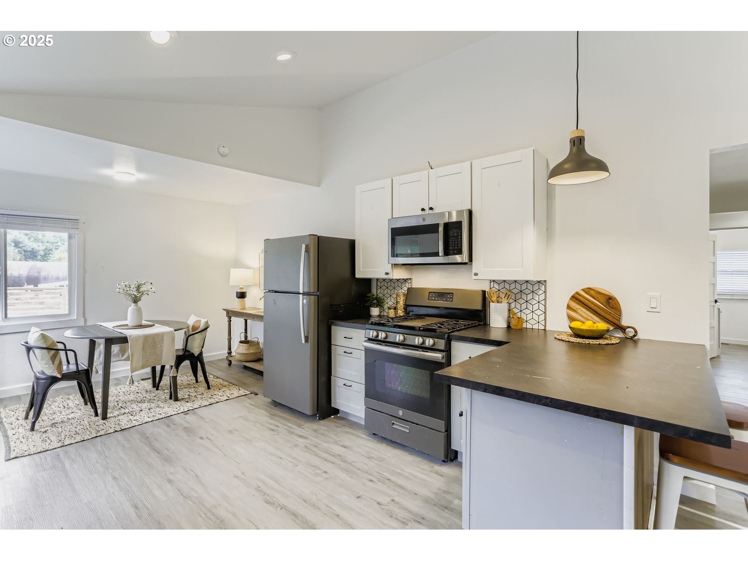 Welcome to this updated, move-in ready and budget-friendly home. The heart is in the spacious kitchen, featuring vaulted ceilings, generous counter space, ample storage and modern appliances. This three bedroom one bathroom home offers the ideal balance of space, convenience, and affordability. Outside, we have a fully fenced back yard and paved off-street parking. Conveniently located near dog-friendly Fernhill Park, New Seasons, walkable to restaurants, bakeries, brew pubs, and coffee shops. Freshly remodeled and well-maintained, this home would make a wonderful starter or investment, you'll find great value without compromising on comfort or space. Don’t miss out on the opportunity to own this lovely home with all the amenities you’ve been searching for! **Huge capital improvement project- new expanded bridge being installed starting August 11th 2025* [Home Energy Score = 6. HES Report at https://rpt.greenbuildingregistry.com/hes/OR10240336]