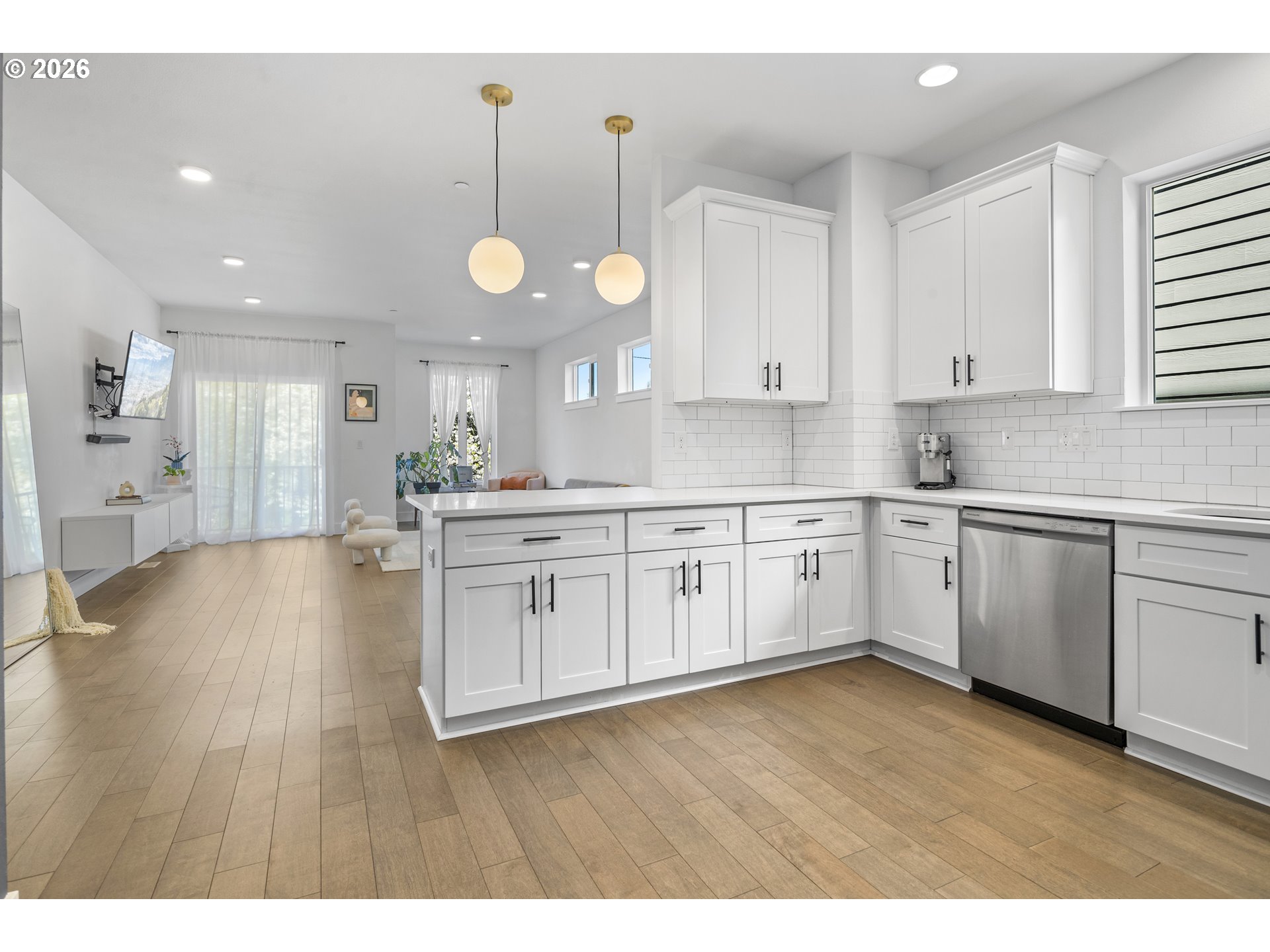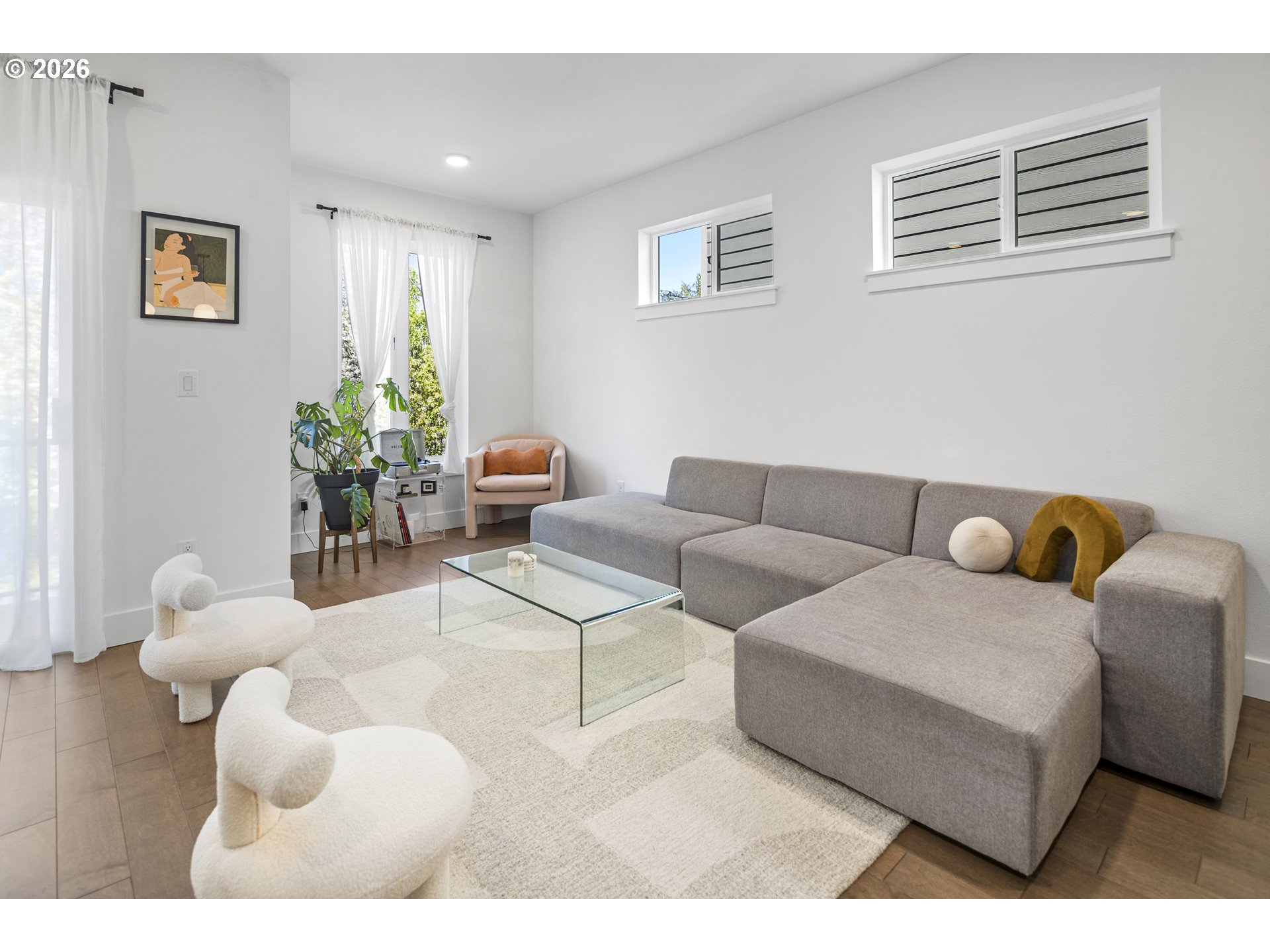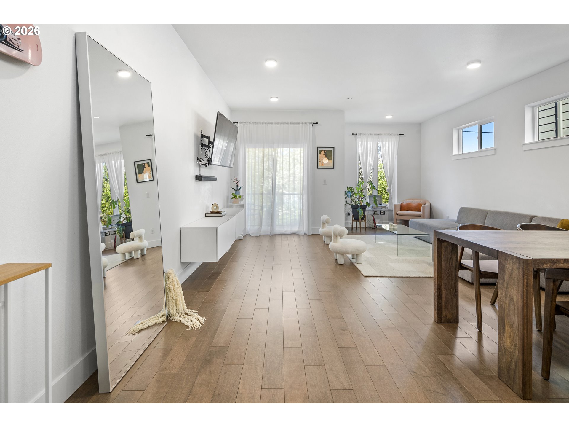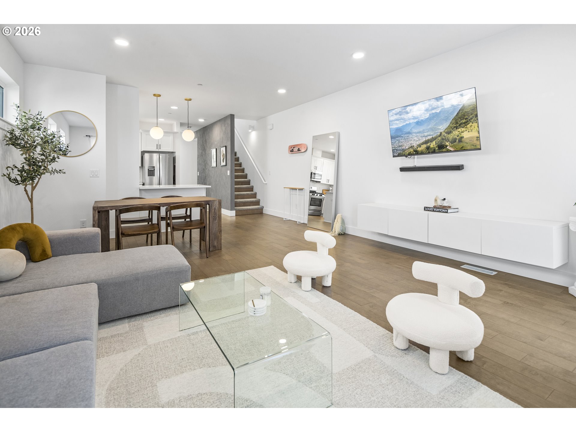 Delightful townhouse-style condo offering the privacy of a detached single-family home with the convenience of low-maintenance living and a low HOA fee! This spacious 1,714 sq ft tri-level home features a versatile 3-bedroom, 2.5-bath floor plan. The ground-level bedroom is ideal for guests, a home office, or multi-generational living with its adjoining full shower/tub bathroom. The main living area offers an open-concept living and dining space with abundant natural light and hardwood flooring. The spacious kitchen boasts quartz countertops, stain-less steel appliances, and stunningly crisp cabinets. Upstairs, the dual bedrooms are joined by a shared, luxurious bathroom and a walk-through closet that complements the walk-in primary closet. Don't miss this excellent opportunity to own a stylish, functional home in a desirable setting with a private street and dedicated single car garage, plus driveway parking and a sunny balcony!