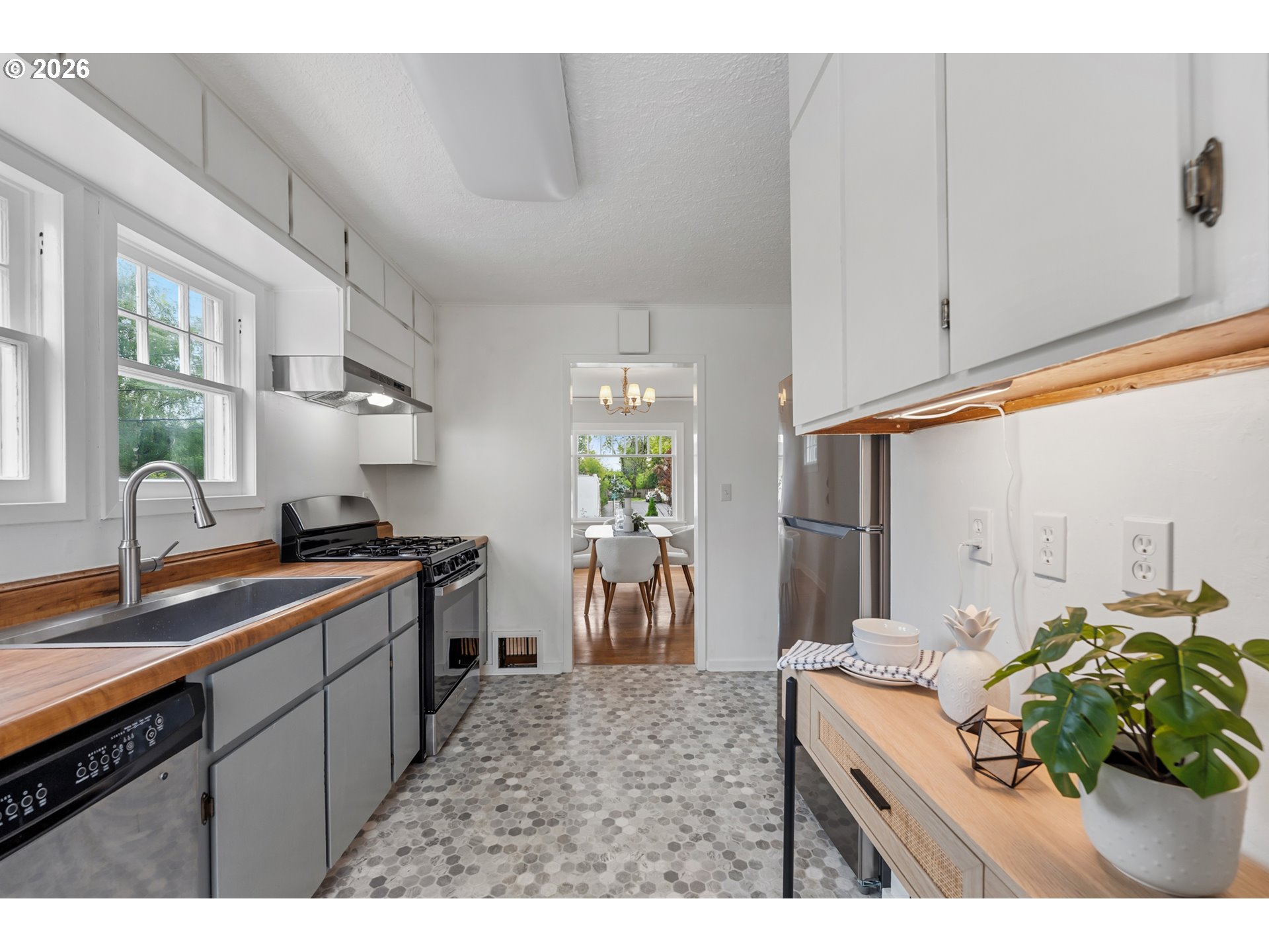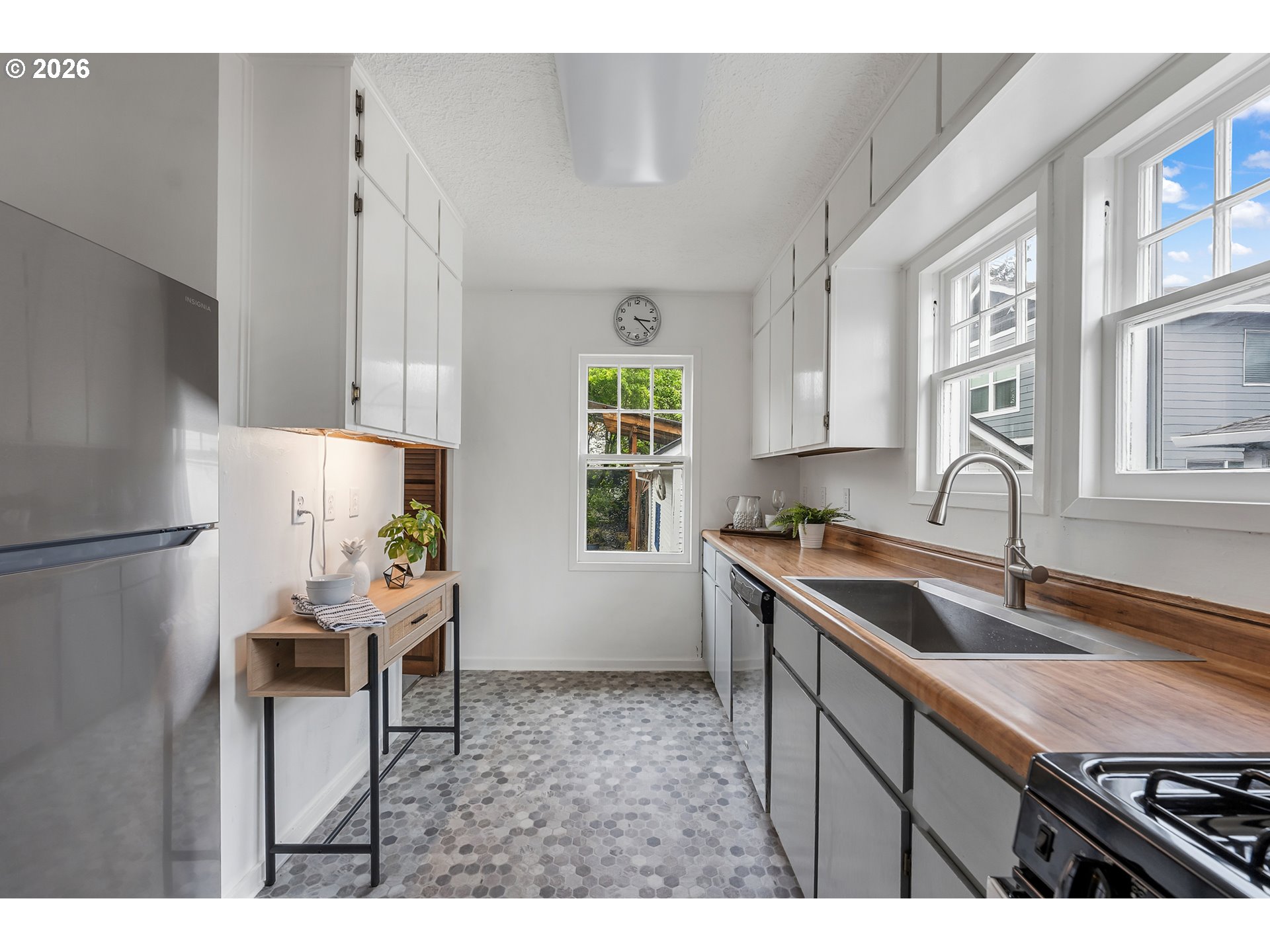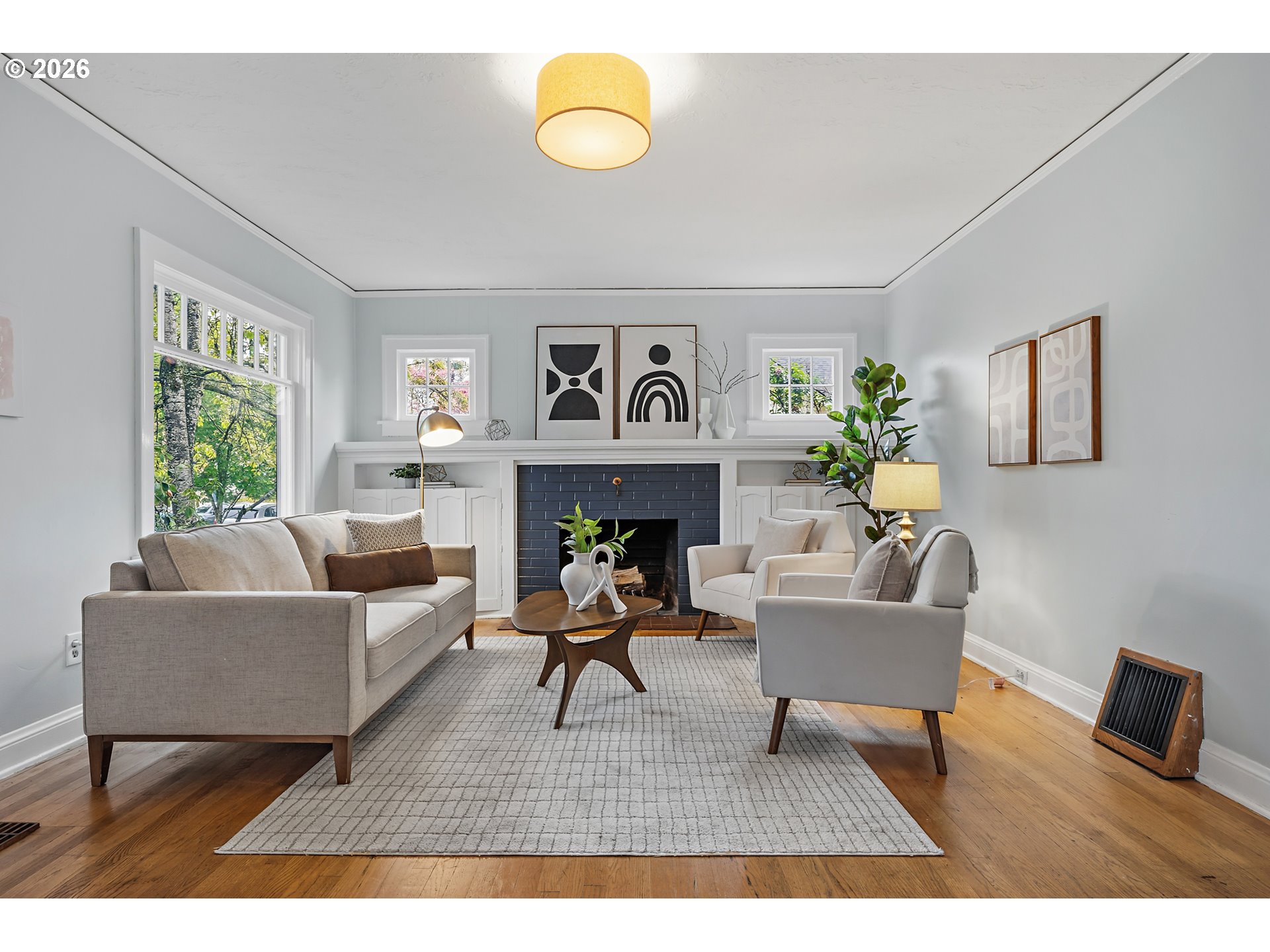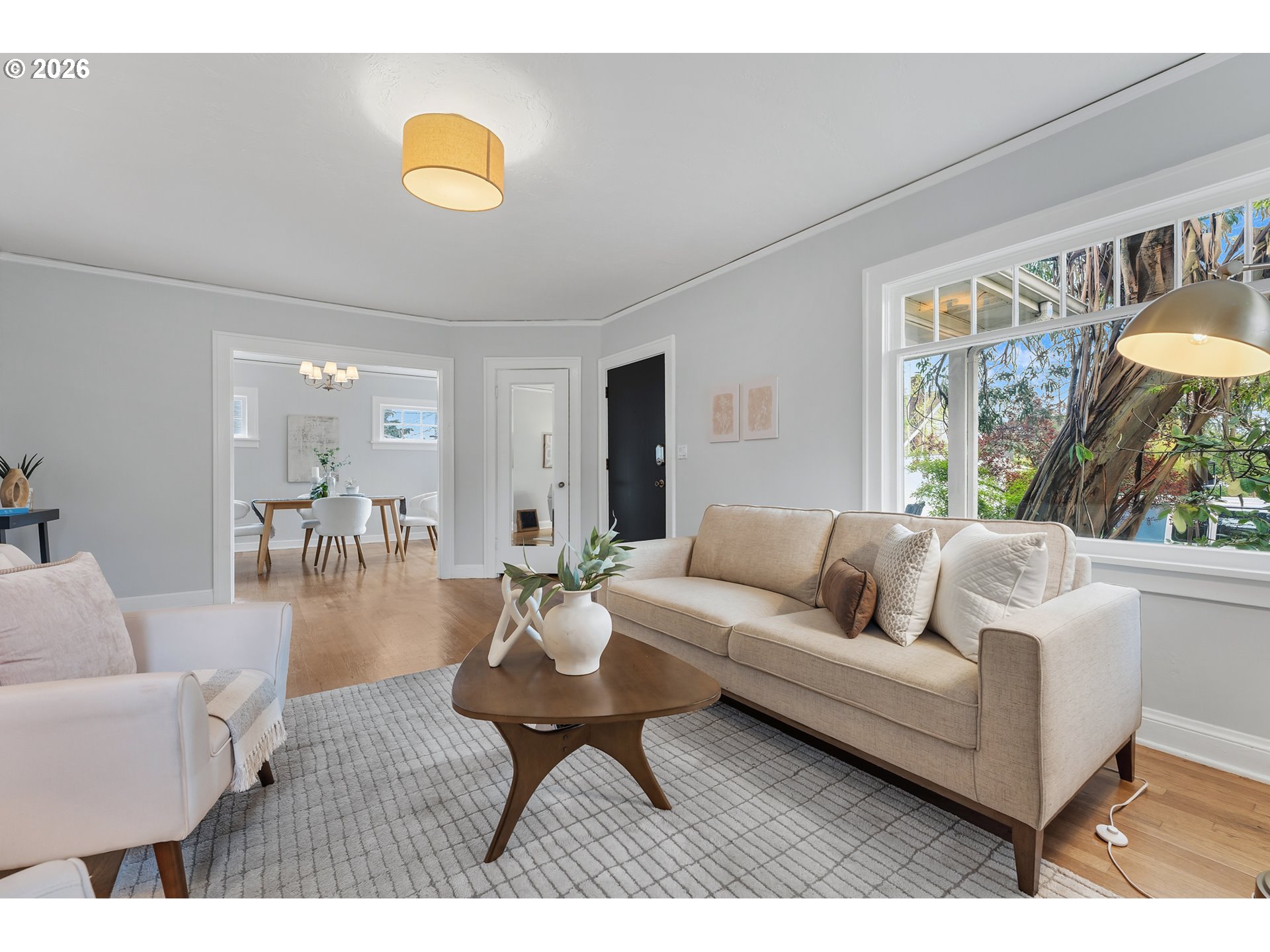 Timeless 1927 Bungalow on a generous oversized lot.Step back into the golden era of American craftsmanship with this beautifully preserved 1927 bungalow, with original character and style intact. Inside, a wonderfully functional floor plan makes the most of every square foot. The inviting living room flows seamlessly into the dining area, creating an easy rhythm for both everyday life and entertaining. The sunny and bright kitchen features new appliances and plenty of east and south light, and easy access to the back yard. Three well-proportioned bedrooms offer flexibility — a primary retreat, a home office, a guest room, or all three — while a full bath plus a convenient half bath keep morning routines running smoothly. And the full basement offers a ton of potential with several rooms - perfect flex space for a family room, craft area or shop, and don't miss the basement sauna!Original architectural details include built-ins, wood-burning fireplace, original hardware with glass door knobs, picture moulding, and original oak and fir floors throughout the home. Step through the back door and into your own private garden oasis. The oversized lot opens up to a lush, tranquil backyard that feels worlds away from the everyday. Mature plantings, layered greenery, patio, wood deck, fire pit and quiet garden nooks create an atmosphere that's equal parts sanctuary and outdoor living room — perfect for morning coffee, weekend gatherings, or simply unwinding at the end of the day. Portland public library a block down the street in one direction, and Essex park a block away in the other direction.Super convenient location with a walk score of 79 and a bike score of 81. [Home Energy Score = 1. HES Report at https://rpt.greenbuildingregistry.com/hes/OR10246757]