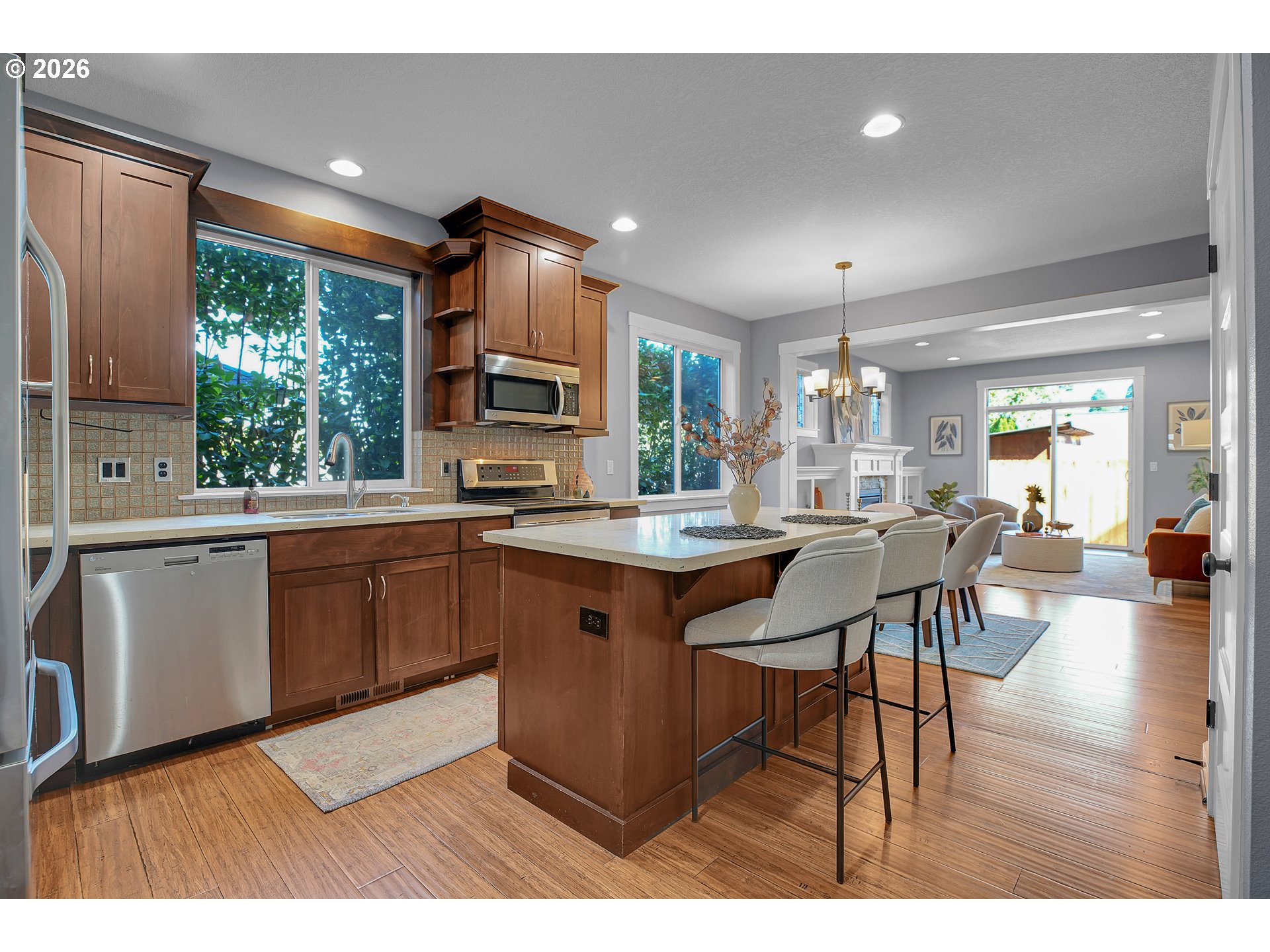 Beautiful 2016 Craftsman on a quiet, well-kept street in desirable NE Portland offers 1,711 sq ft of light-filled living with 3 bedrooms and 2.5 baths, Air Conditioning, and new carpet throughout. The main level welcomes you with engineered wood floors, a cozy living room with built-in bookshelves, and a chef-ready kitchen featuring a large island with hardstone counters, tile backsplash, built-in microwave, electric freestanding range, and LG stainless steel appliances. Upstairs, you’ll finnd three bedrooms(one en suite) and two full baths, each with a skylight. Plus, two of the bedrooms have views of Mt St Helens. Outside, enjoy a private fenced backyard with patio, new pavers, and low-maintenance yard, plus a single-car garage with a hanging storage rack; practical comforts include a gas furnace, gas water heater, and included washer and dryer. This move-in-ready home blends modern niches with classic Craftsman charm. Close to transit, shopping, restaurants, more...This amazing house is a must see!