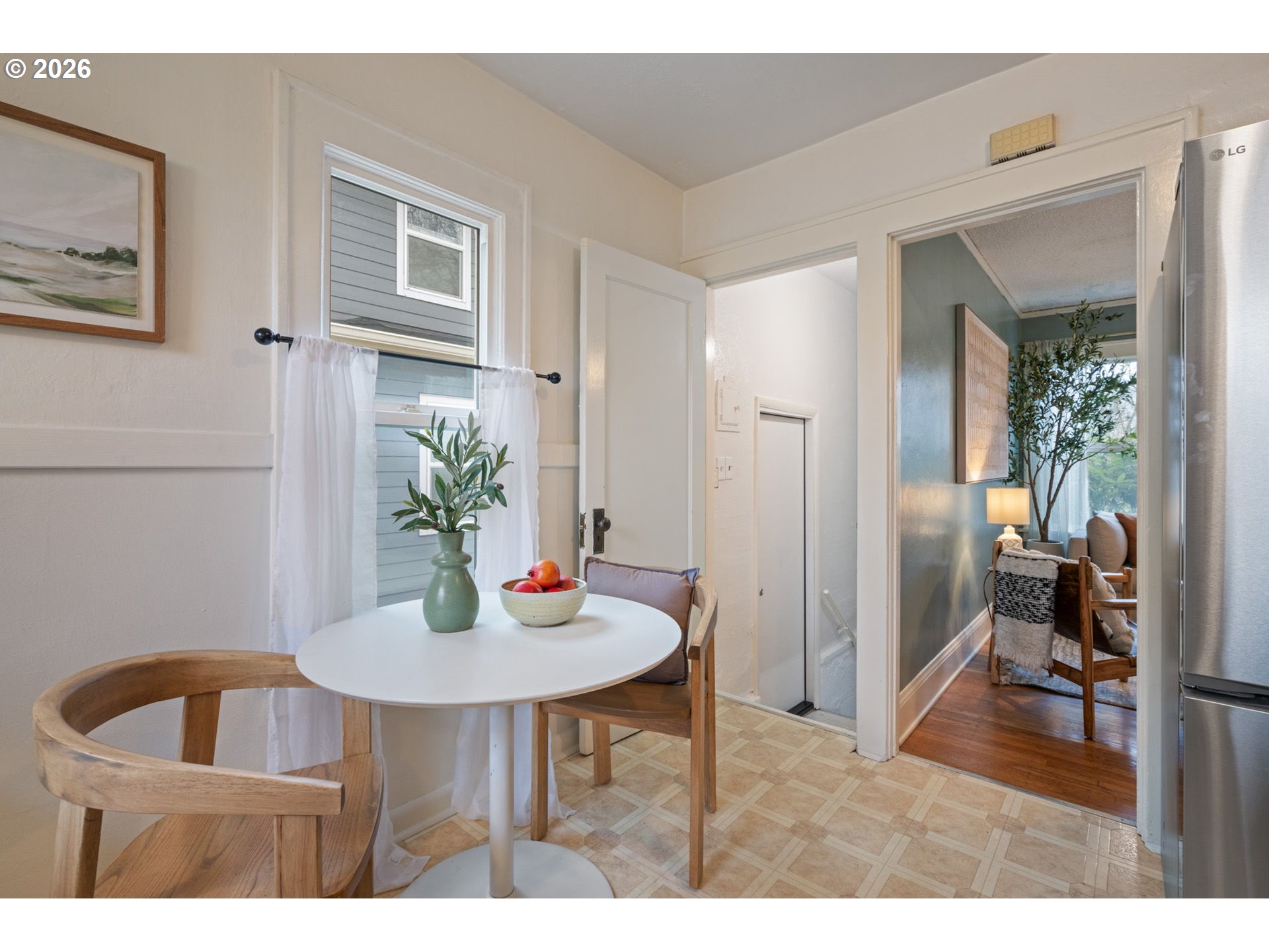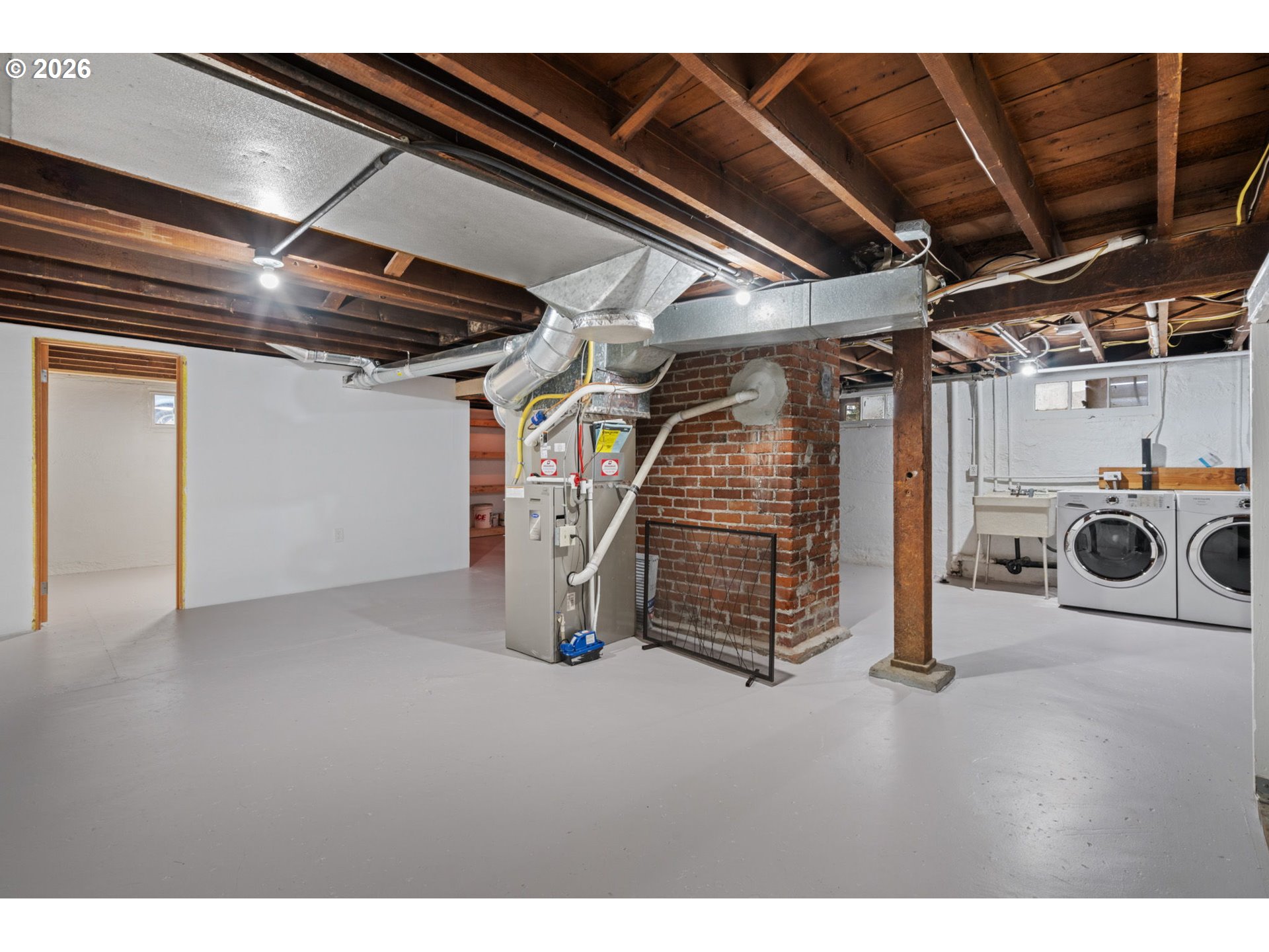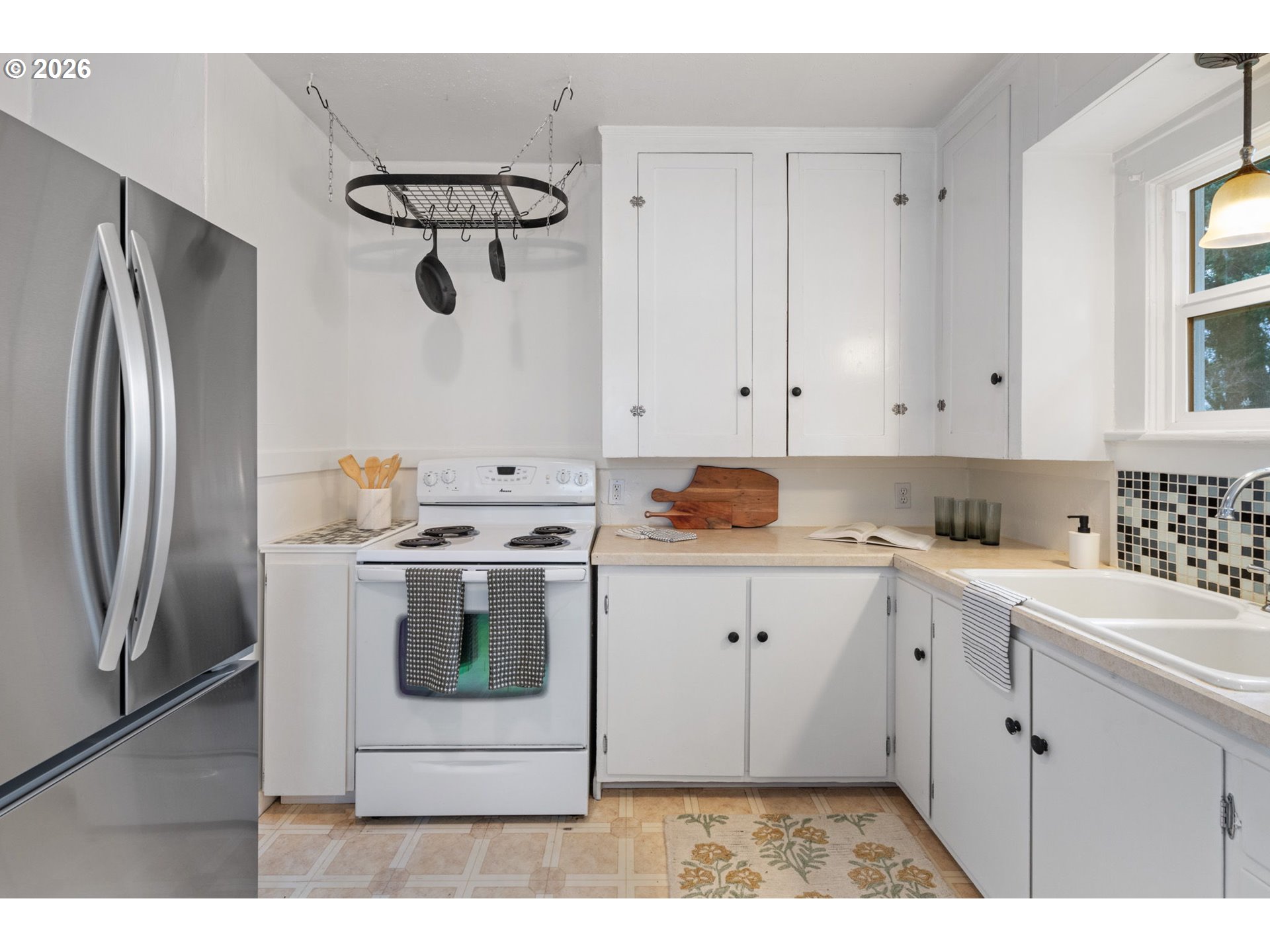 (503) 893-8874Adorable Brooklyn Bungalow on a large, private lot with bountiful landscape. This sweet home has all the things: original wood floors, millwork and solid kitchen cabinets, cast iron tub, sweet eyebrow dormers and wood burning fireplace with newer chimney (2023). Vinyl windows throughout, dishwasher and new stainless LG French Door refrigerator. Updated electrical with convenient details like smart outlets by the bed. Pex plumbing, newer roof (2022). Detached, dry, 11 x 18 garage - park your car or enjoy ample storage. Furnace & AC were replaced in 2018, and a large part of the foundation was reinforced in 2020. The basement has great ceiling height, is dry, clean and offers the beginning of finishing with an insulated, drywalled, doored and lit office space. Washer, dryer and utility sink in laundry corner and a 2024 energy efficient, heat pump hot water tank and 2024 radon mitigation! In the growing seasons, find pear, apple, and fig trees, as well as blueberries, grapes, raspberries, several varietals of roses, and many herbs growing in the garden. The back is fully fenced with no neighbors to the rear. Sound barrier to the already quiet light rail and parking behind the property along 17th. Brooklyn is an active community with parks, tennis and pickleball courts as well as bars, restaurants and coffee shops just blocks away. 92 Walk Score, 100 Bike Score! [Home Energy Score = 5. HES Report at https://rpt.greenbuildingregistry.com/hes/OR10219806]