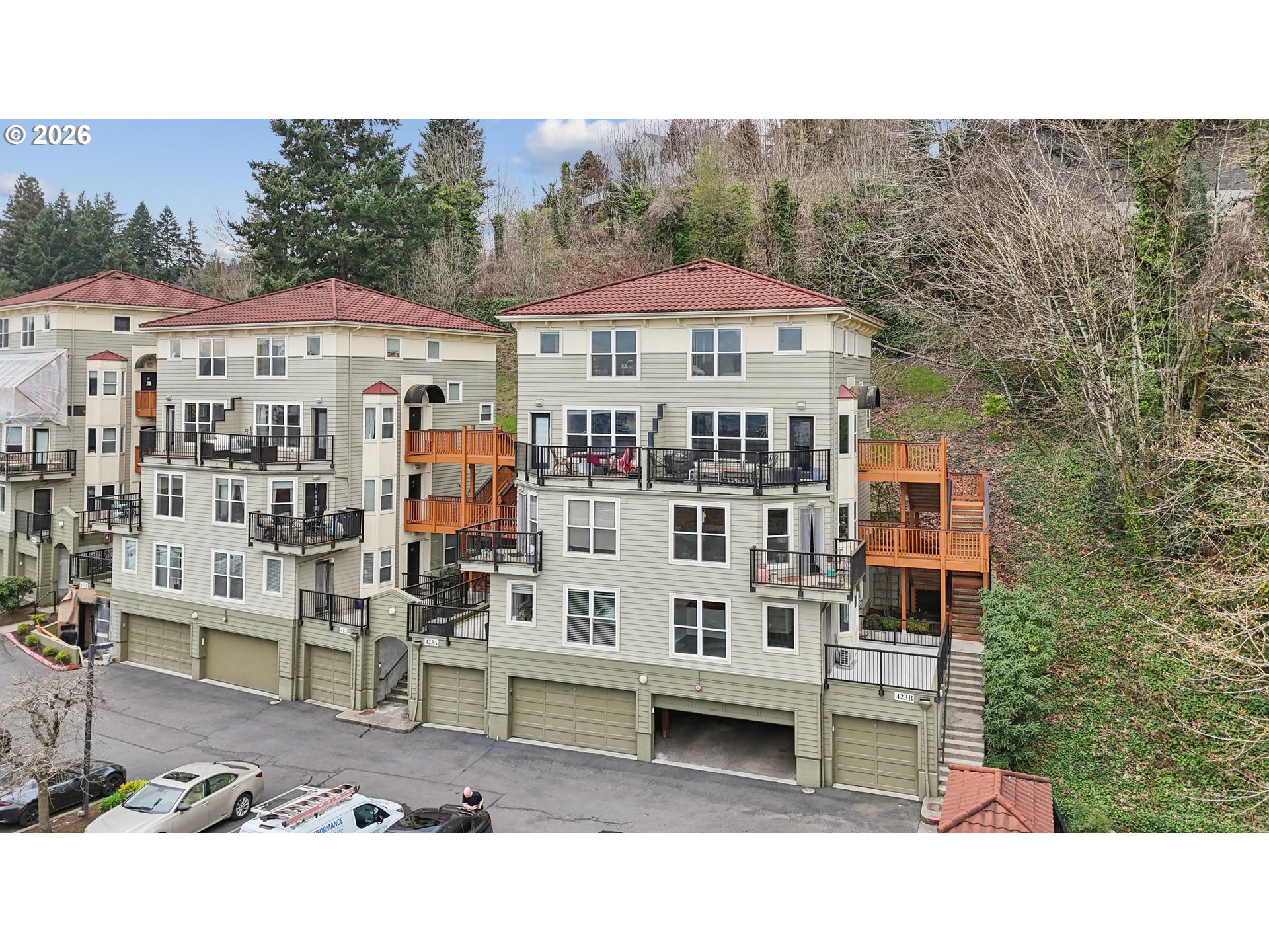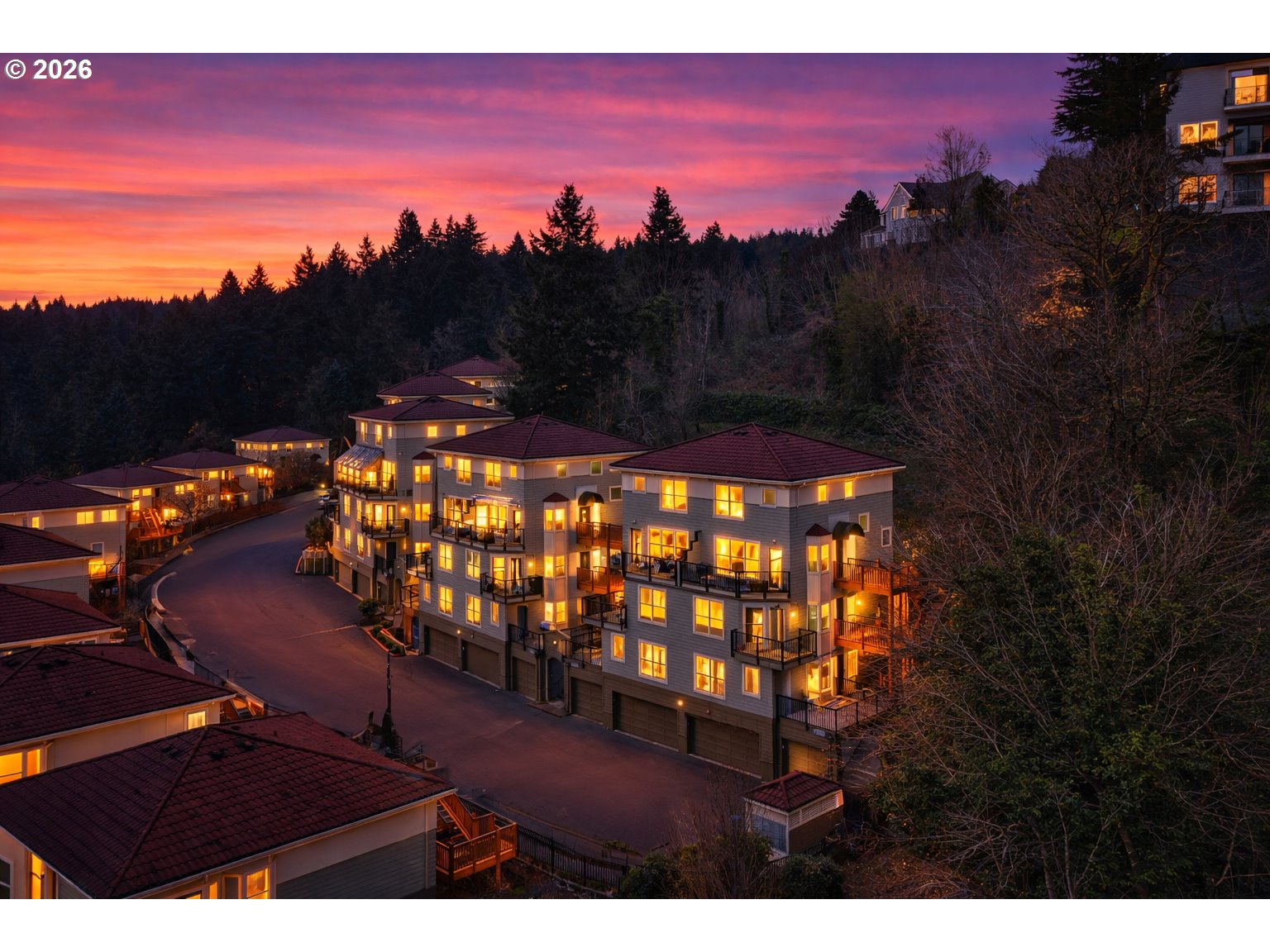 Perched high above the city on a scenic hillside bluff, this private end-unit condo captures sweeping views of Portland’s skyline, surrounding mountains, winding rivers, and lush valley below. Few homes offer this combination of breathtaking scenery, peaceful privacy, and unbeatable access to the heart of Northwest Portland.Inside, the home features engineered hardwood floors, granite countertops, and updated fixtures that create a clean, modern feel while keeping the space warm and inviting. The open living area is filled with natural light and designed to take full advantage of the dramatic views beyond.One of the standout features of this home is the expansive patio, offering a rare outdoor space that feels both private and connected to the city below. Whether you’re enjoying morning coffee in the sunshine or unwinding in the evening as the city lights come alive, this outdoor retreat becomes a natural extension of the living space.As an end-unit, the home enjoys an added sense of quiet and privacy compared to many others in the community.Despite its peaceful hillside setting, the location couldn’t be more convenient. In just a minute you can be on NW 23rd Avenue, the Alphabet District, Goose Hollow, or in the heart of Portland’s Uptown neighborhood, surrounded by some of the city’s best restaurants, cafés, shopping, parks, and entertainment.For buyers looking for city views, outdoor space, privacy, and walkable Northwest Portland living, this condo offers an exceptional opportunity in one of the city’s most desirable locations.