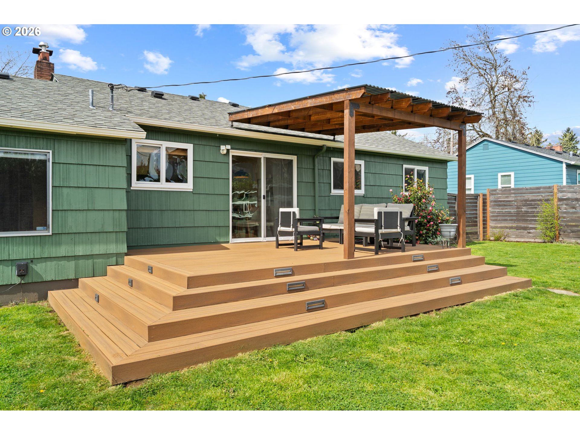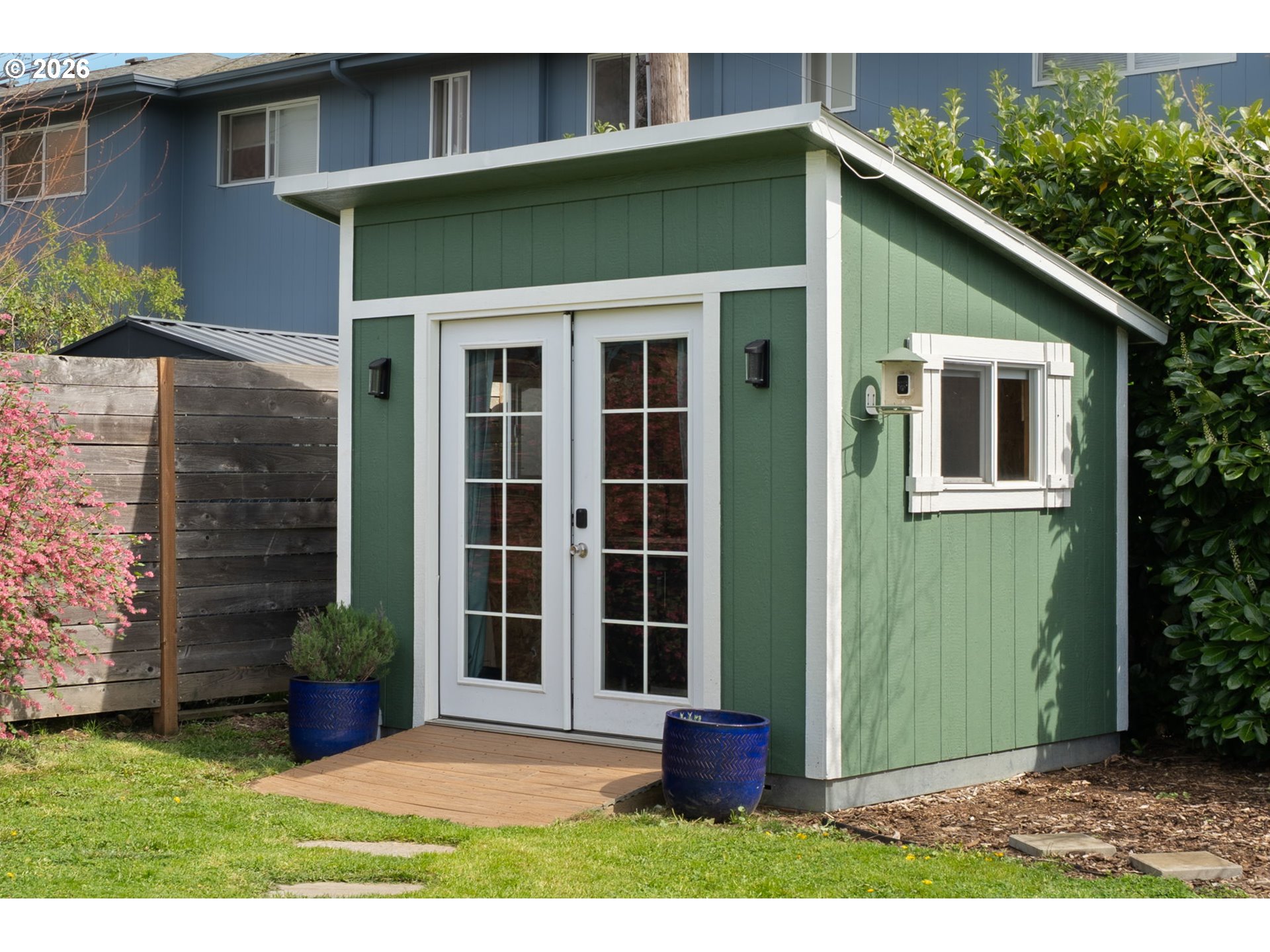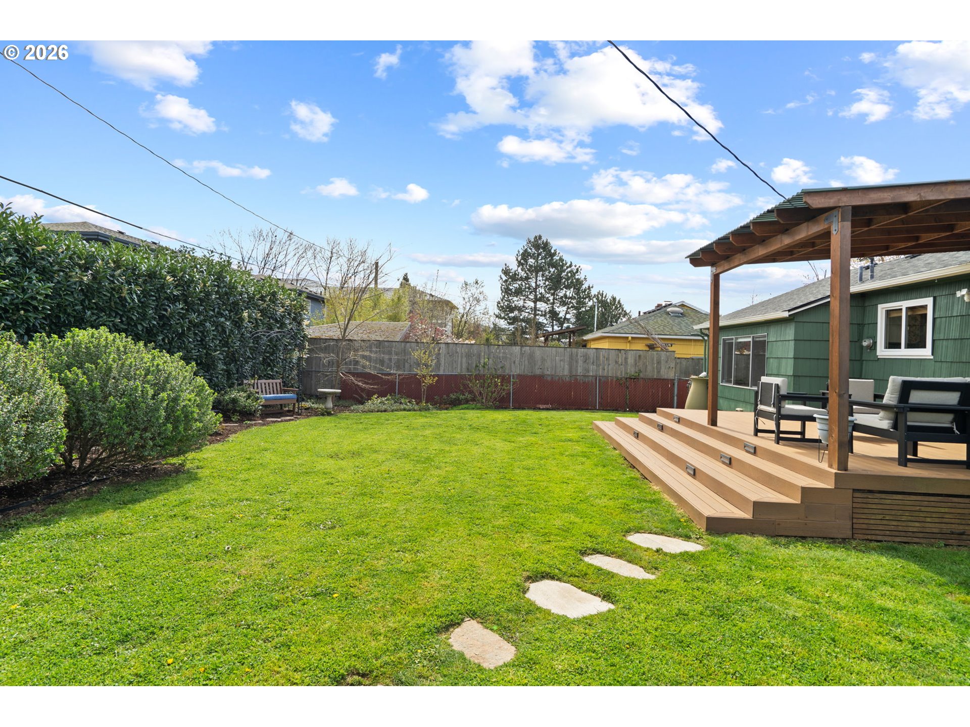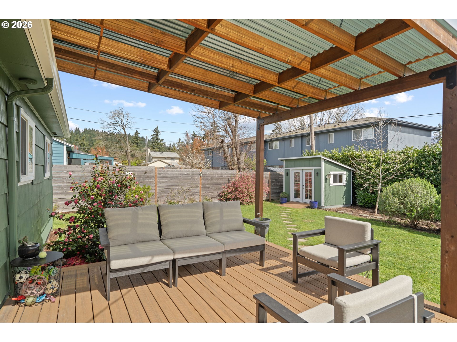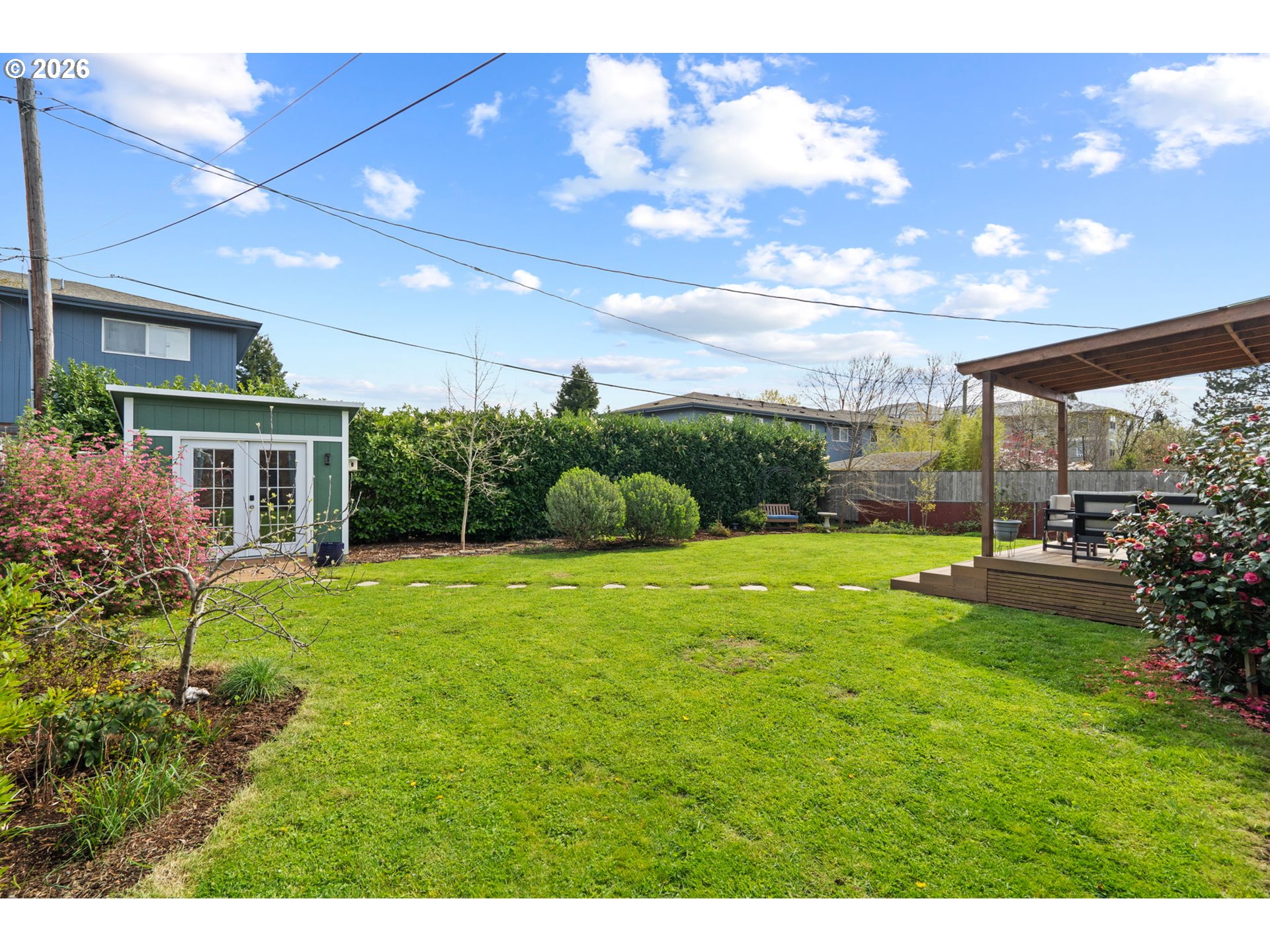 (503) 893-8874OPEN HOUSE Saturday, April 4th 12-2PM. This remodeled midcentury modern bungalow hits the rare balance of character and care. From the beautifully maintained front yard, enter into a light-filled living room with a large front window and anchored by a classic wood-burning fireplace. Adjacent to the living room is a dining area and kitchen remodeled in 2024. It features butcher block countertops, beautiful tile work and wallpaper, updated cabinetry, stainless steel appliances with induction cooktop, and recessed lighting. Hardwood floors are found throughout most of the home and major interior updates continue with a full bathroom remodel in 2022. 3 bedrooms are at one end of the house and a dedicated den is at the other end. It functions as a perfect flex space, complete with built-in bookshelves and soundproofed back wall. This could be a quiet home office, media room, or craft room. A laundry room and half bath are situated off the flex space, so it could also be used as a 4th bedroom! For those needing even more separation, the detached backyard shed has been utilized as a private office but offers flexibility for other needs. The "big-ticket" items are already done, including a 2019 roof with a transferable 10-year warranty, a new furnace and A/C in 2020, a new electrical panel in 2020, a 2018 water heater, and fresh exterior paint just completed in 2025. The outdoor living space is a standout feature, centered around a 2020 Trex deck and pergola overlooking a Certified Native Backyard Habitat. This low-maintenance landscape is also a functional urban orchard, producing blueberries, raspberries, huckleberries, serviceberries, and a 5-variety apple tree. The large backyard is fully fenced (partial newer fencing from 2019). The washer, dryer, and refrigerator are all included, with other personal property negotiable. This is a well maintained, move-in-ready home where the heavy lifting has already been handled! [Home Energy Score = 5. HES Report at https://rpt.greenbuildingregistry.com/hes/OR10030129]