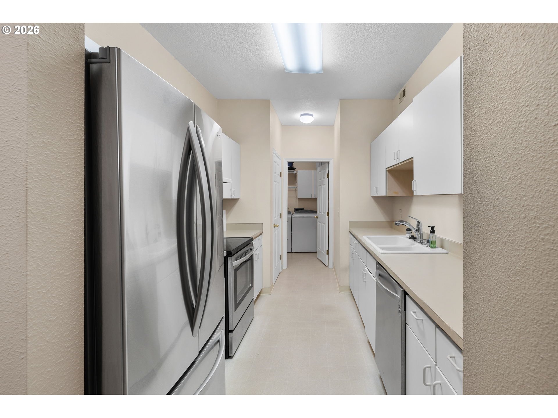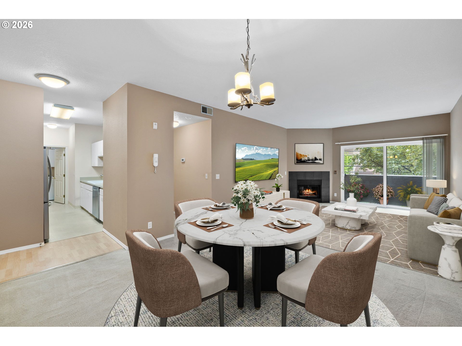 Tucked into Portland’s South Portland neighborhood, right where the city comes together—this second-floor condo offers a simple, connected way to live. With easy access to Oregon Health & Science University, the Ross Island Bridge, and downtown, getting where you need to go feels effortless. Just outside, you’re minutes from neighborhood cafés, local restaurants, and nearby access to Willamette River parks with miles of connecting walking and biking trails—close enough to enjoy yet removed from the immediate bustle. Inside, the layout is both functional and inviting. The living room is centered around a fireplace and opens to a private balcony, creating an easy extension of the living space. A dedicated dining area flows into the galley kitchen with all appliances included, while a separate laundry area—with washer and dryer—adds everyday convenience.The primary suite features a walk-in closet with organizer and its own private bathroom. A second bedroom and full bath provide flexibility for guests, a home office, or additional living space.Practical details add to the ease of living, including one deeded parking space, a second deeded space in a secured garage with gated entry, and ample guest parking for visitors. The building offers controlled access entry for added peace of mind, along with additional interior storage for life’s extras.Comfortable. Connected. Ready for what’s next.