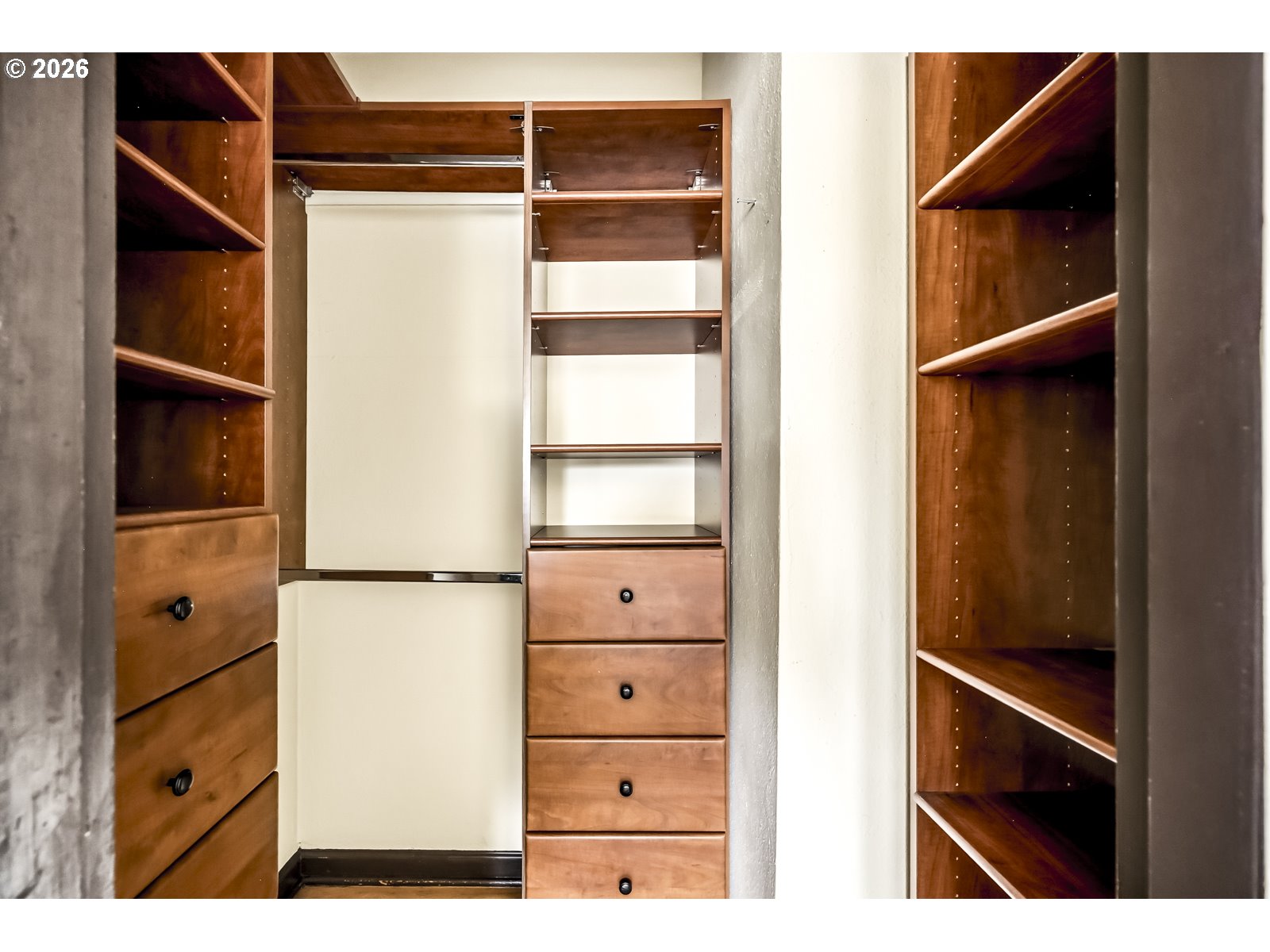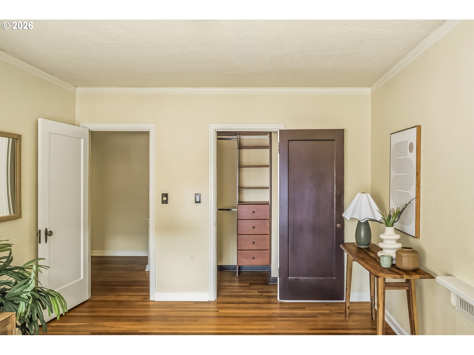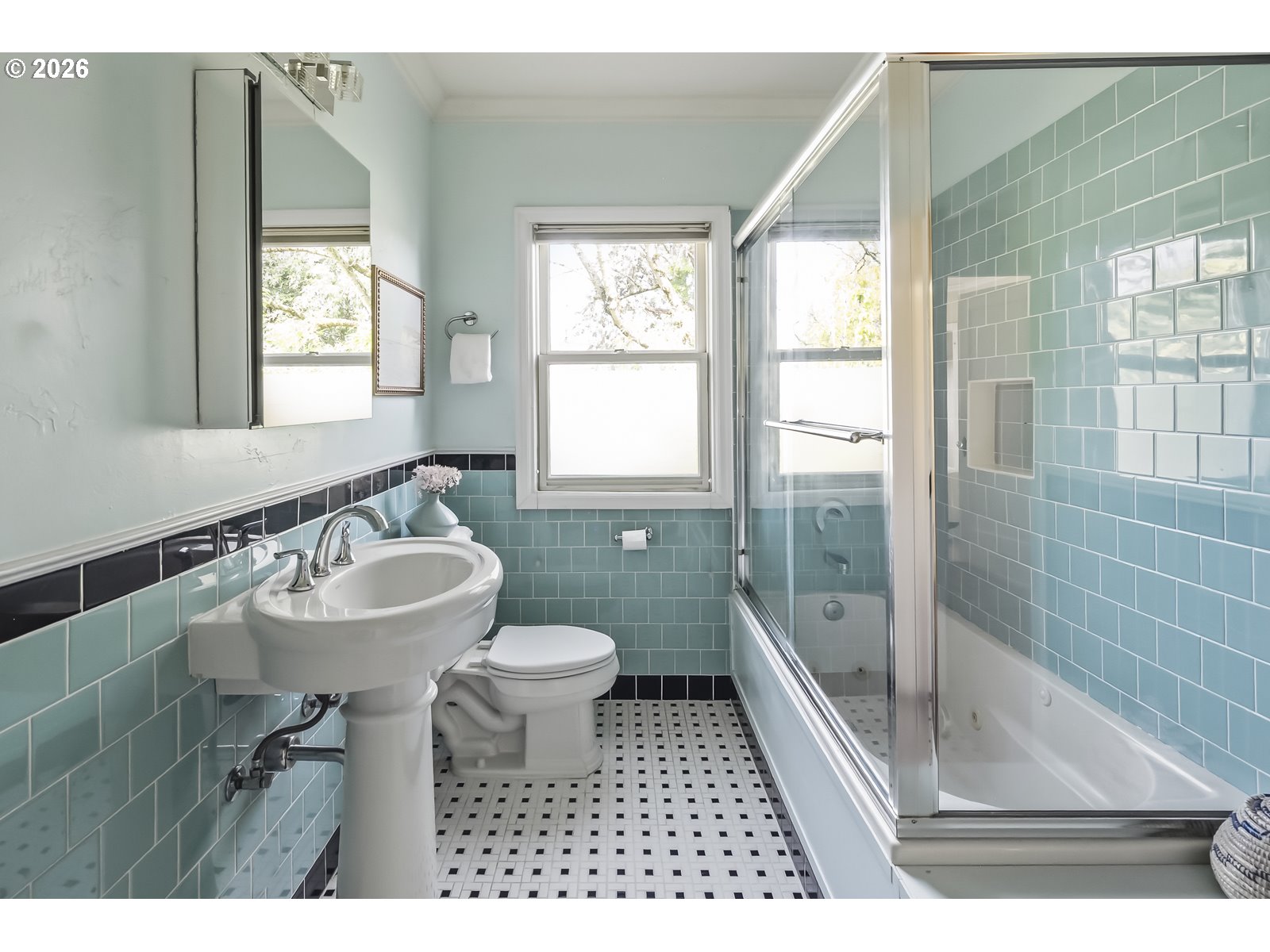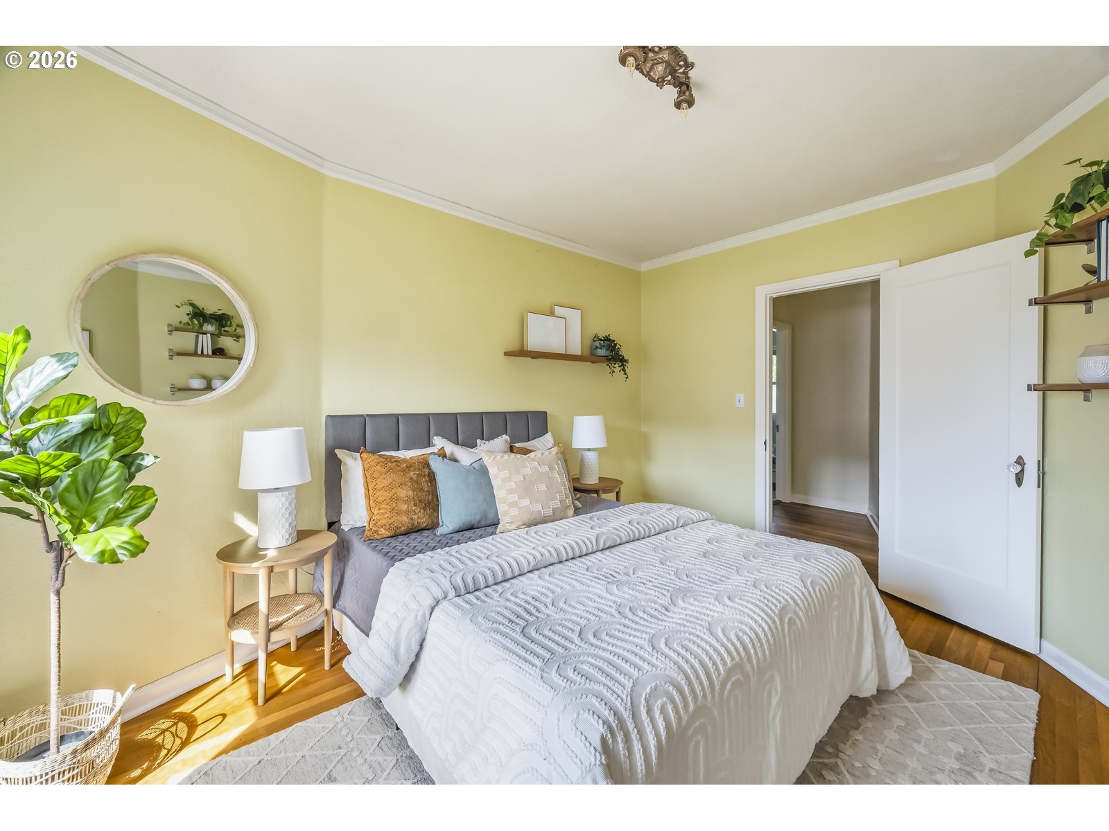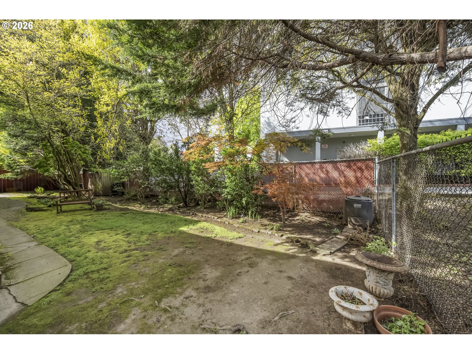 Located a few short blocks from Whole Foods, Trader Joe's, and the well-loved Hollywood Theatre, you'll find this gated, quiet complex that feels like it's in a world of its own. Step into the courtyard and immediately notice the lush landscaping, stunning Magnolia tree, and multiple spots to sit and enjoy the outdoors. Ideally situated at the back of the complex, this unit is full of charm and period character, with top-nailed wood floors, built-ins, and vintage light fixtures. The spacious living room opens to a comfortable dining room and an updated kitchen, featuring a back door that leads outdoors to a gated pet relief area. Upstairs, you'll find two spacious bedrooms, each with a walk-in closet, and a beautifully updated bathroom featuring a jetted tub, era-appropriate finishes, and a convenient washer and dryer. The covered, deeded parking space, private basement storage unit, and well-run HOA that includes almost all utility costs (including heat!) are the icing on the cake. Enjoy peaceful living in this excellent location- walk score of 93!