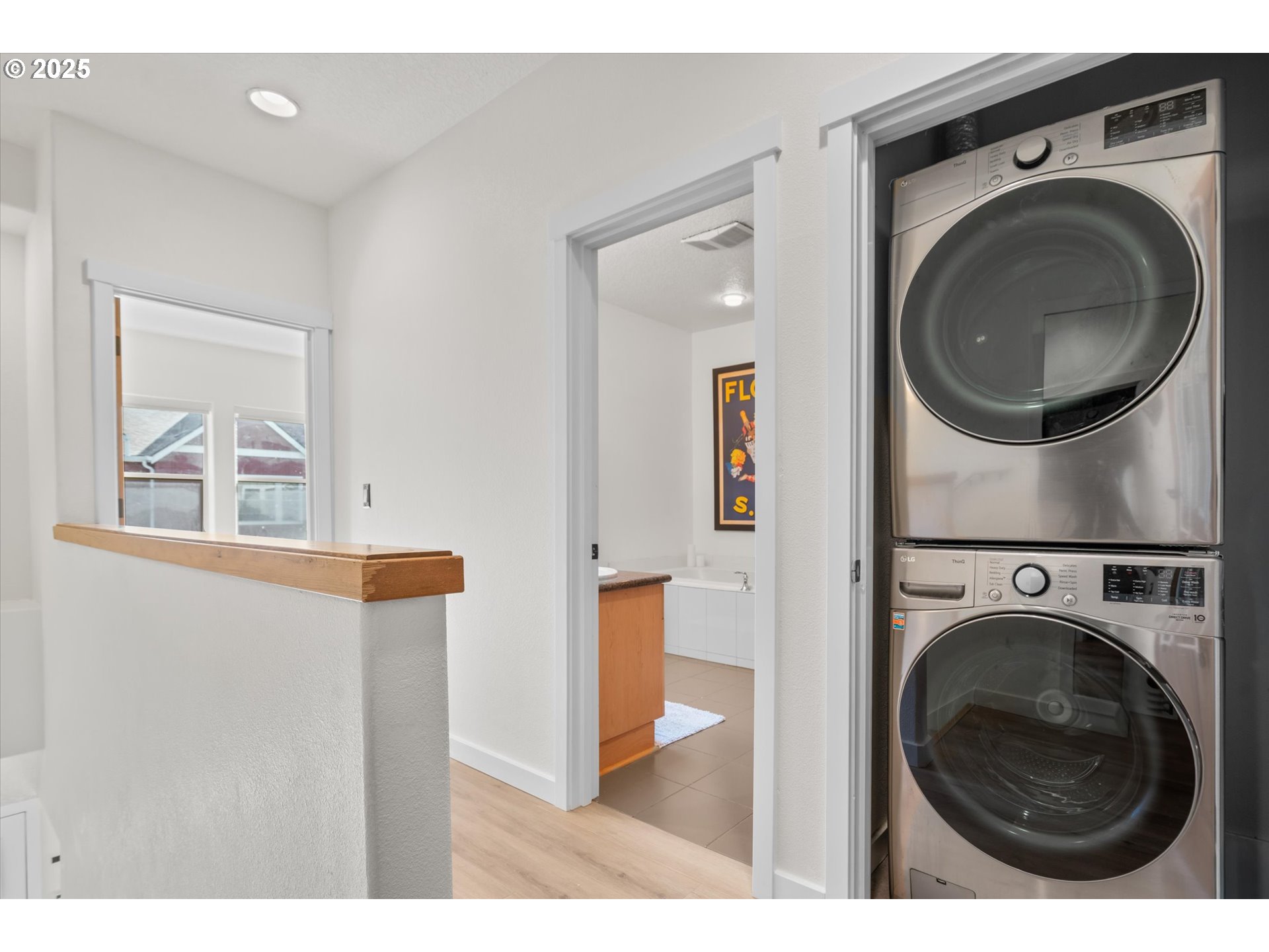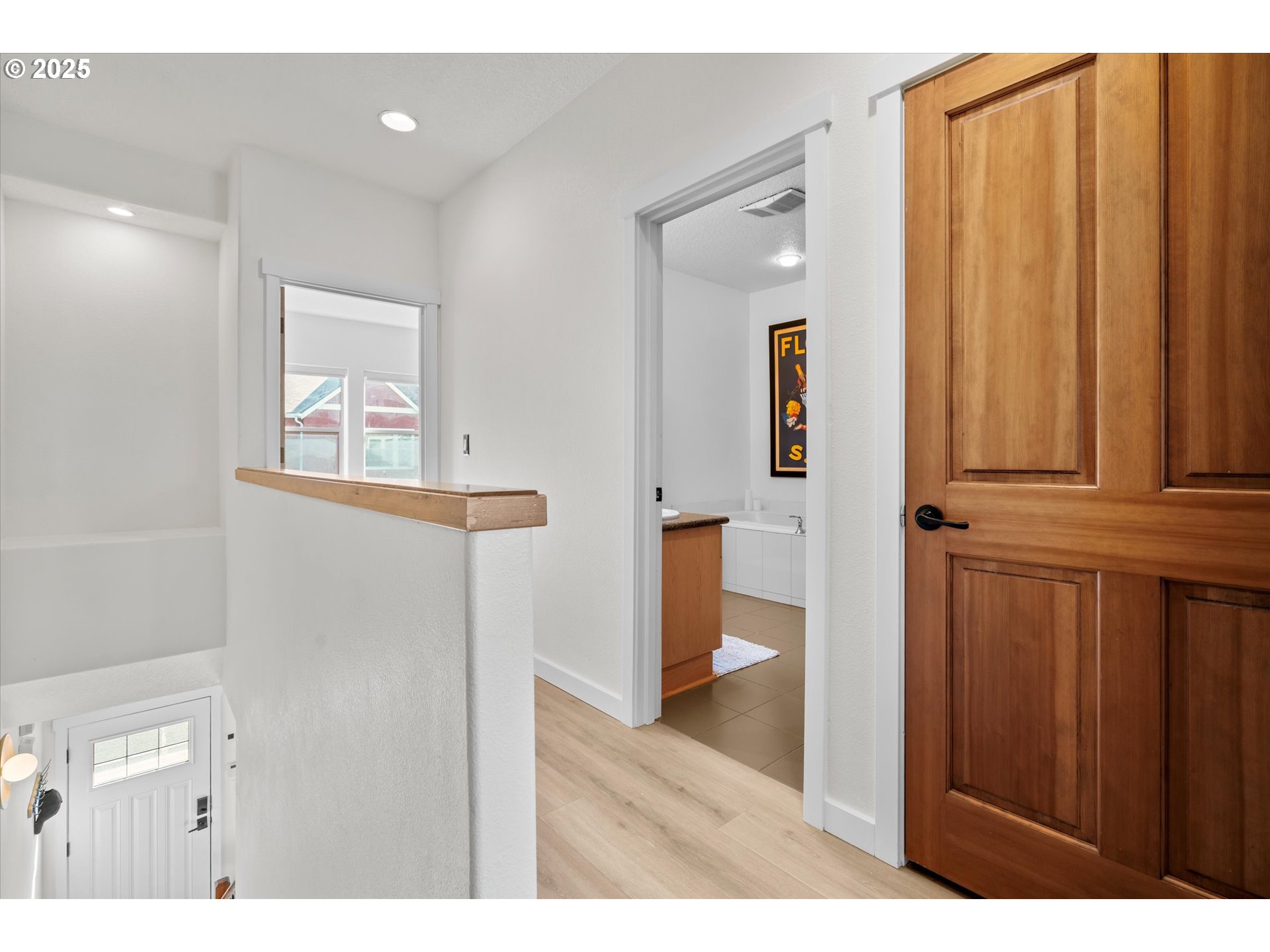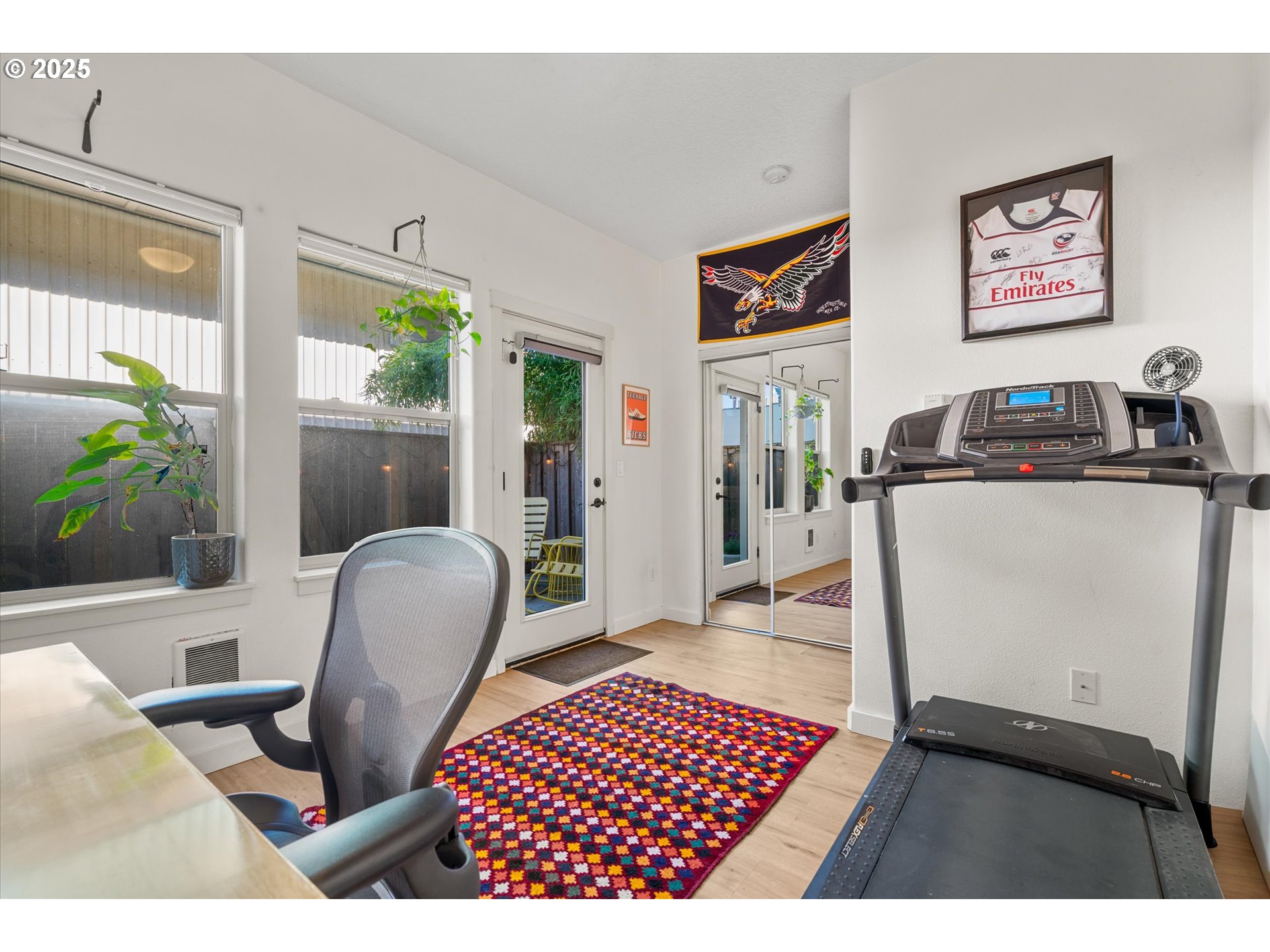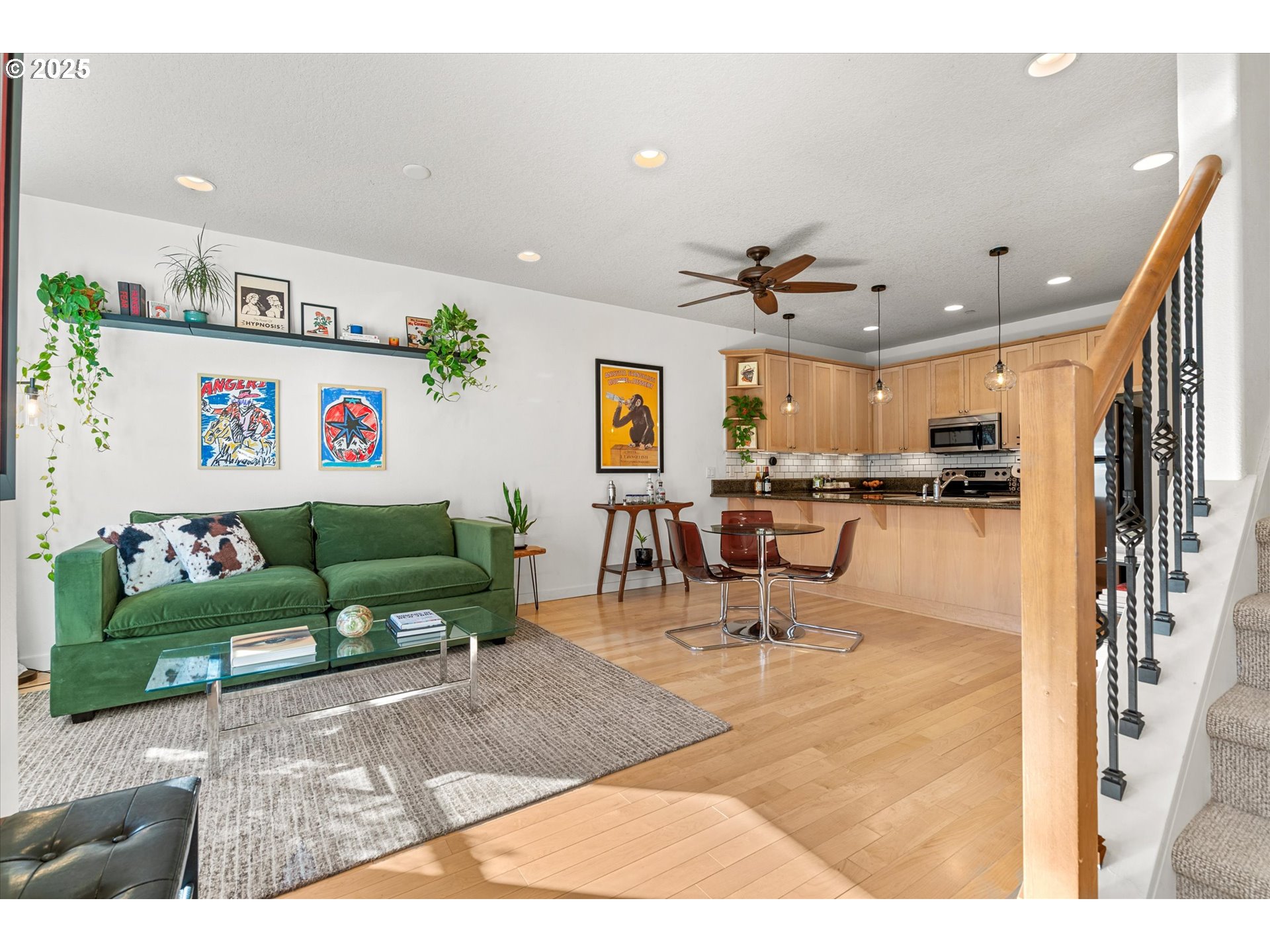 This townhome-style condo offers the perfect blend of privacy, comfort, and close-in city convenience. Located on a quiet drive just off NE Killingsworth, this home is blocks from the Kennedy School, Fernhill Park, and neighborhood favorites along Alberta, 42nd, Fremont, and Killingsworth. Inside, the open main floor features warm hardwood floors, a spacious great-room layout, and a flexible bedroom/home office with access to your own private, fenced backyard and patio. Great for relaxing after a long day. The kitchen is designed for everyday ease, with stainless steel appliances, slab granite counters, tall cabinets, a pantry, and an eat-in bar plus dining area. Upstairs, you will find two generous bedrooms with vaulted ceilings, double closets, new LVP flooring, and a full bathroom with double sinks, a soaking tub, separate shower, and a private water closet. Convenient front-load laundry included. With a dedicated parking space, a 1-year home warranty, a relaxed pet policy, and no rental cap, this home gives you flexibility to grow. Whether you are hosting friends, working remotely, or exploring the neighborhood, this condo fits your lifestyle. Move-in ready and waiting for you!