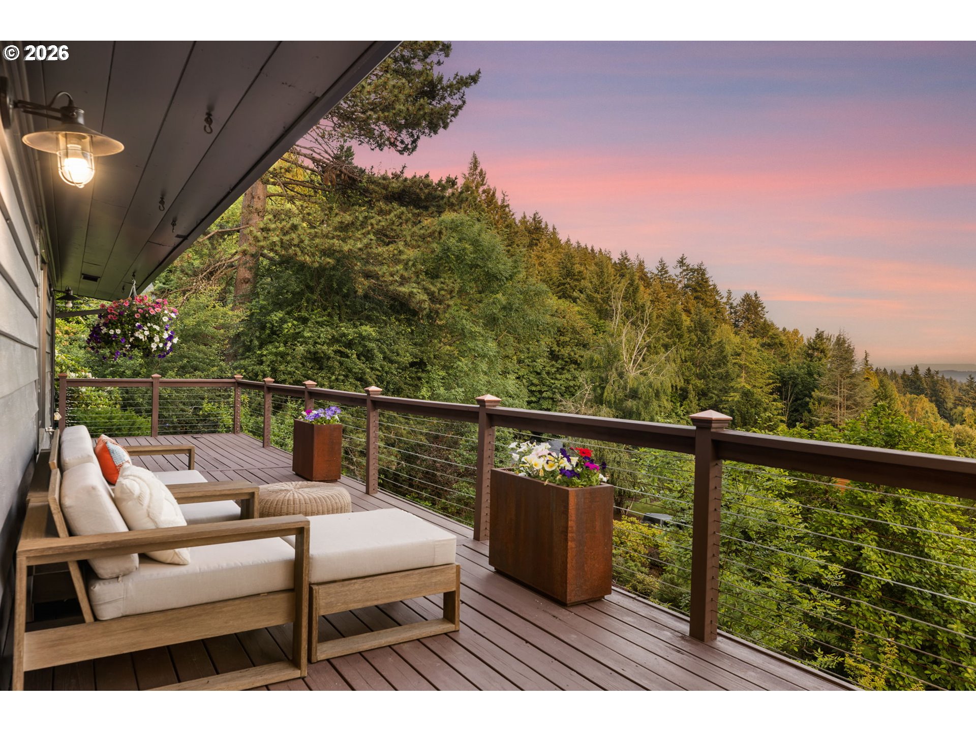 (503) 893-8874Perched atop a rare double lot, this artfully reimagined Mid-Century daylight ranch commands sweeping, unobstructed vistas spanning from the Coast Range to the eastern foothills. Thoughtfully sited & masterfully landscaped to preserve both privacy & tranquility, the property is designed to minimize neighboring sight lines—creating a serene sanctuary where the expansive view deck & natural surroundings can be enjoyed in complete seclusion. Inside, the bespoke kitchen serves as the heart of the home—a true statement in both form and function—appointed with stainless steel appliances, custom cabinetry & an oversized entertainer’s island designed to host gatherings both intimate & grand. The primary suite is a retreat unto itself, introduced through early 20th-century antique Japanese doors & enveloped by floor-to-ceiling glass that frames the ever-changing panorama beyond. With direct access to the deck, the suite seamlessly blends indoor & outdoor living. The spa-inspired bath offers a glass-enclosed rainfall shower & a soaking tub set behind antique Geisha doors—an evocative, tranquil setting for relaxation. Outdoors, a sculpted landscape unfolds with intention. A fire pit beneath the open sky invites evenings of quiet reflection, while curated plantings—including espaliered grapes, fig, crab apple, along with blueberries, blackberries, raspberries & plums—create a living garden that is as functional as it is beautiful. A substantial, level unimproved area on the eastern portion of the lot presents a rare opportunity for future expansion or a bespoke addition. All of this, just moments from downtown Portland, NW 23rd, Nike World Headquarters & OHSU. A truly singular offering—where timeless mid-century design, artisan craftsmanship & modern livability converge in an extraordinary setting. [Home Energy Score = 7. HES Report at https://rpt.greenbuildingregistry.com/hes/OR10060376]