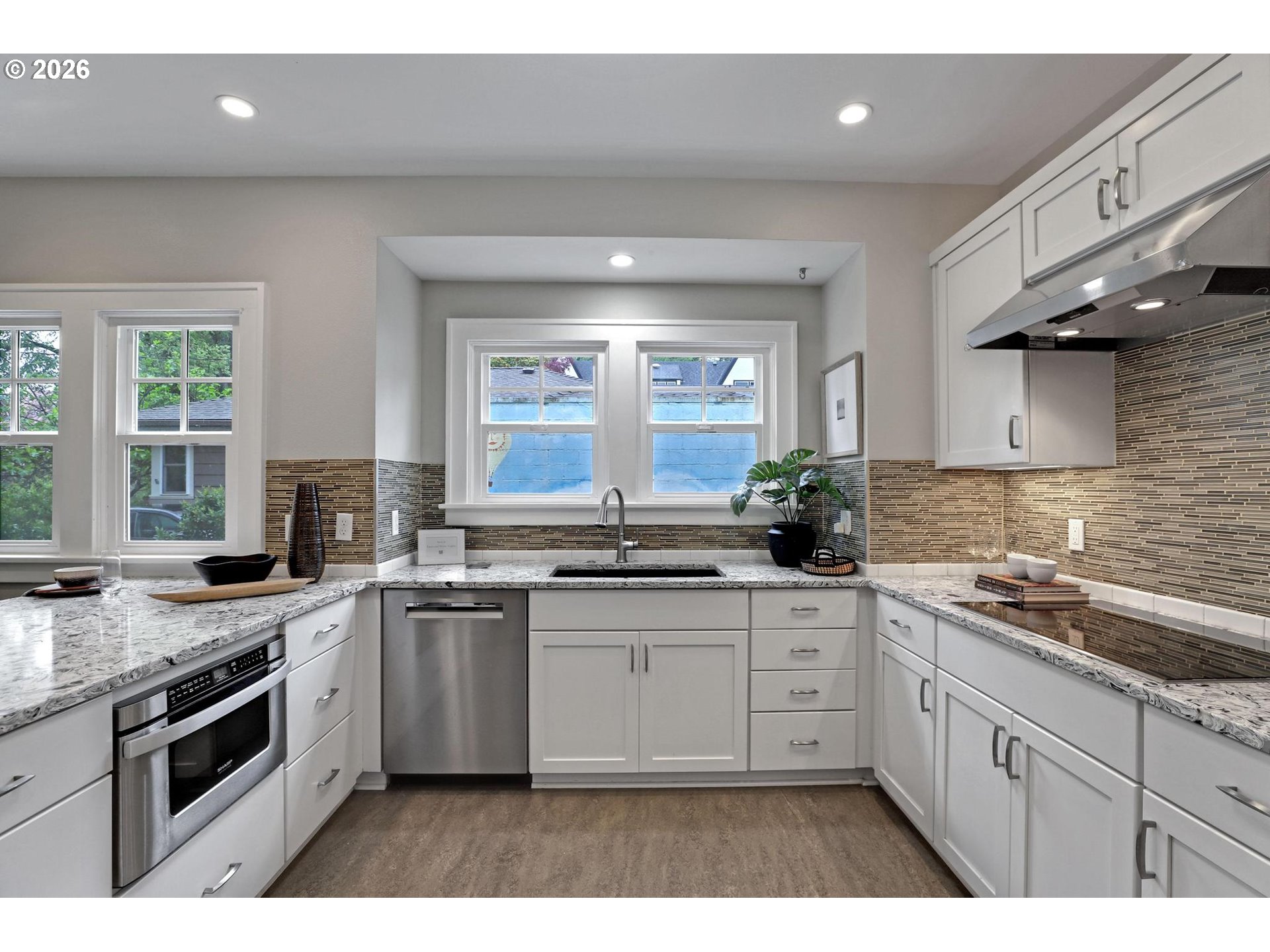 The best of Park life and urban awesomeness - Belmont, Hawthorne, Division, SE 28th & more. This convenient-to-everything Vintage Bungalow combines modern updates in the best kind of way. The expansive main floor (1400+ sf) includes 2 large bedrooms and a bath. Plenty of spaces for offices & play as well. The updated kitchen features an induction cooktop, quartz counters, 2 wall ovens, a breakfast bar and a pantry. Updated windows (Milgard), Roof (2018). HVAC (2022). Upper level Mini splits. Ready to move in, spread out and enjoy! [Home Energy Score = 2. HES Report at https://rpt.greenbuildingregistry.com/hes/OR10188691]