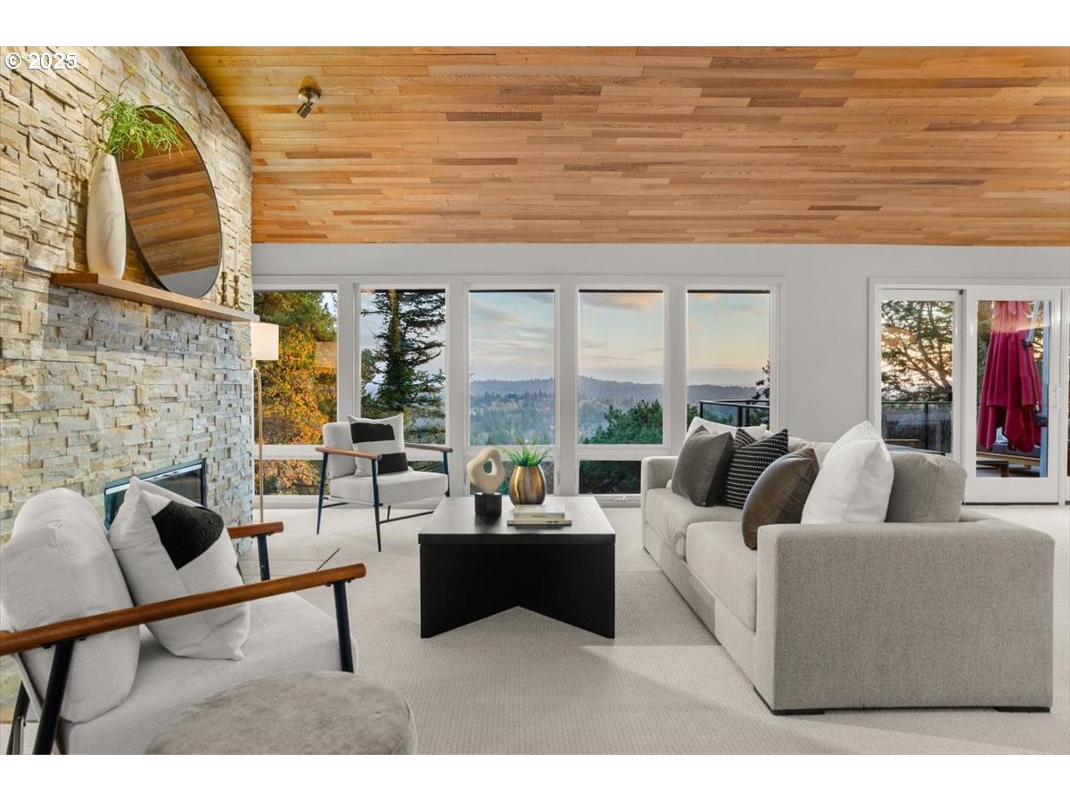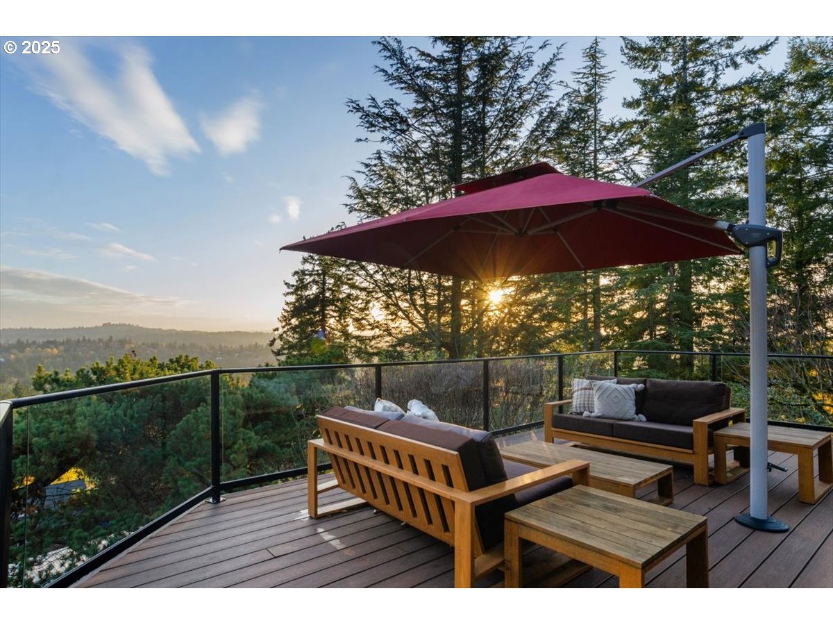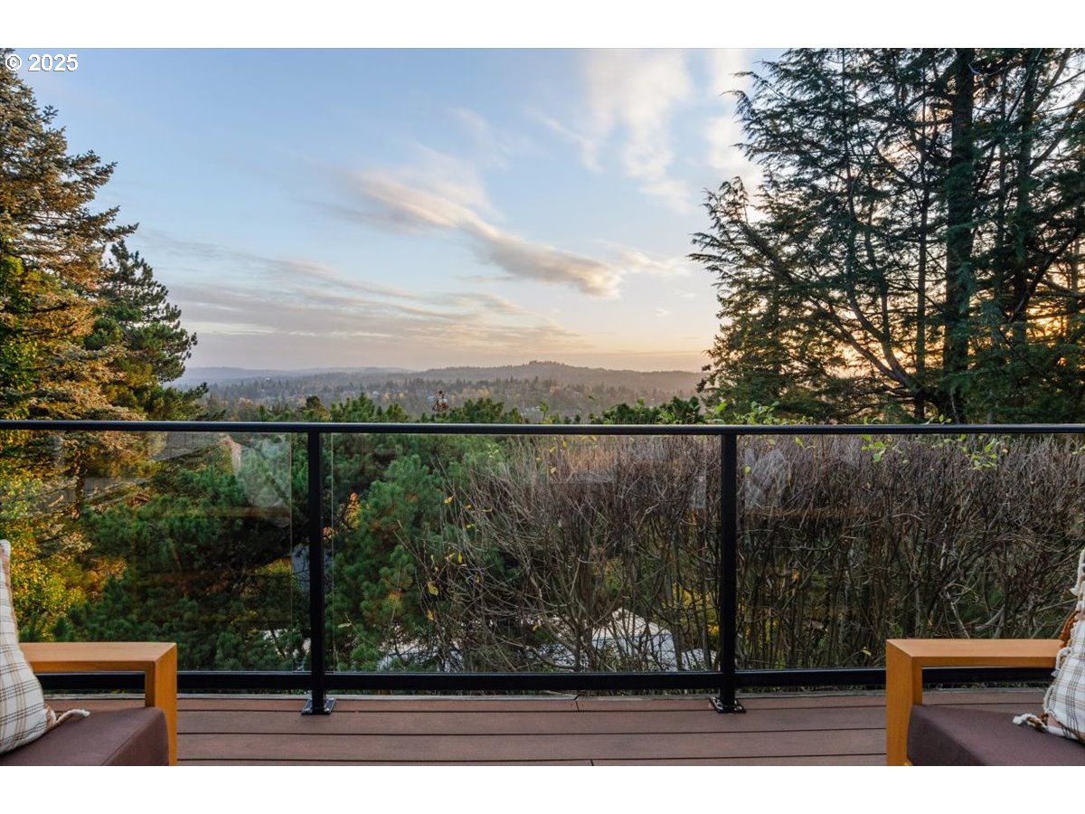 (503) 893-8874Tucked away on a quiet dead-end street, this architecturally striking home blends design with thoughtful updates and stunning territorial views. An atrium entry opens into the vaulted cedar foyer featuring light-filled living spaces, with oversized windows, that let the outdoors in. The open kitchen features custom mahogany cabinetry, stone counters, and seamless flow to the dining and living areas—perfect for everyday living or entertaining. The serene main floor primary suite offers a wall of built-ins, remodeled bath, and direct access to a private spa deck. Two additional bedrooms, plus flexible lower-level spaces for work or guests, provide room for a multitude of activities. Outside, extensive decks, mature gardens, and Zen-like spaces create an inviting backdrop. Thoughtful energy efficient updates such as solar panels, a new heat pump, smart-home systems, and recent roofing make this home as sustainable as it is stylish. Conveniently located close to trails, parks, schools, multiple hospitals, freeways and the city. [Home Energy Score = 2. HES Report at https://rpt.greenbuildingregistry.com/hes/OR10090312]
