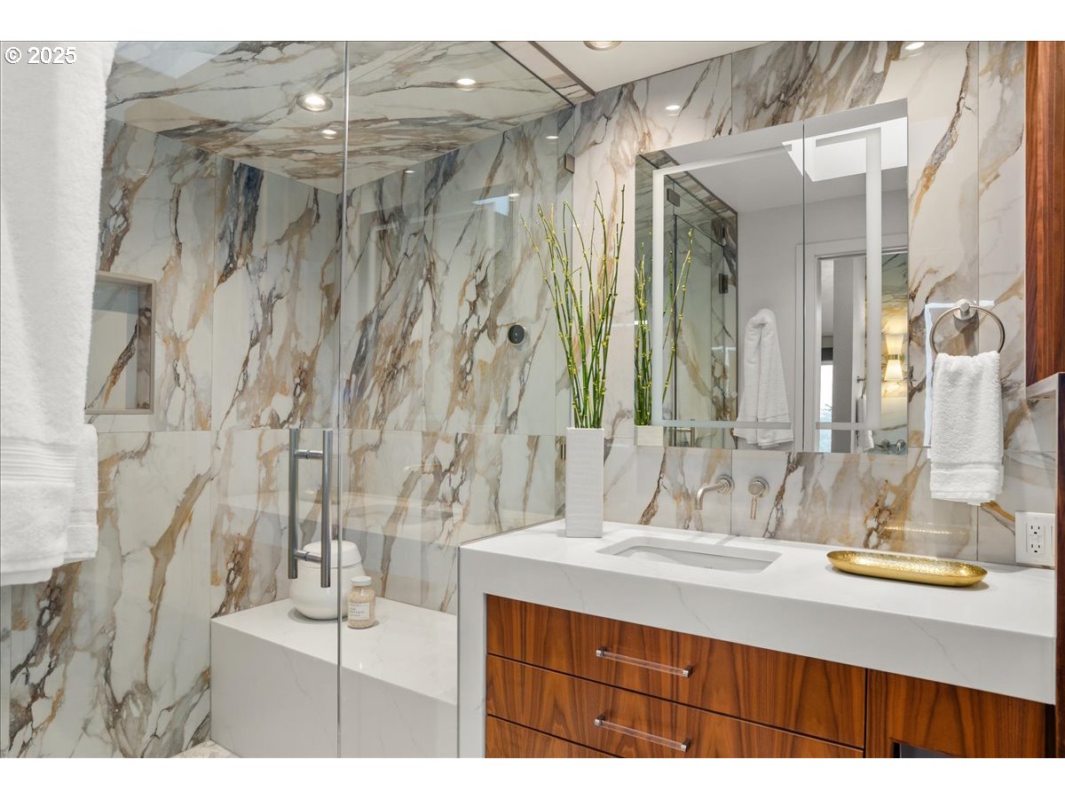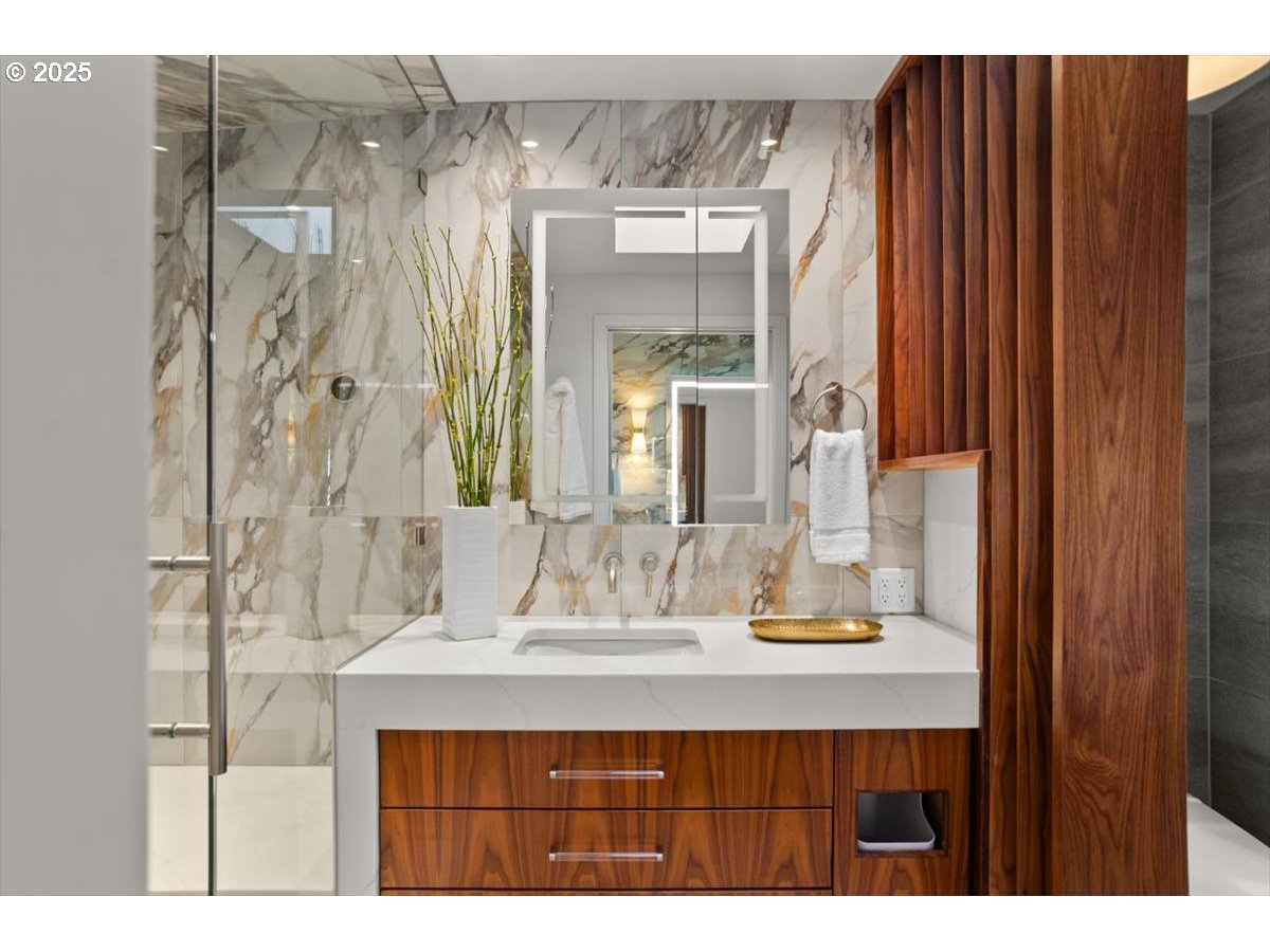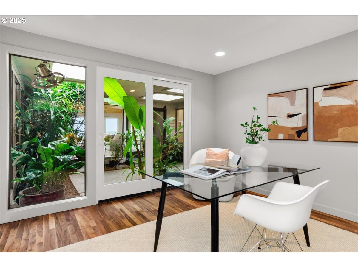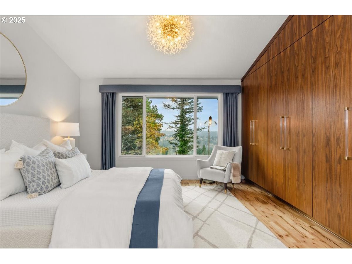 (503) 893-8874Tucked away on a quiet dead-end street, this architecturally striking home blends design with thoughtful updates and stunning territorial views. An atrium entry opens into the vaulted cedar foyer featuring light-filled living spaces, with oversized windows, that let the outdoors in. The open kitchen features custom mahogany cabinetry, stone counters, and seamless flow to the dining and living areas—perfect for everyday living or entertaining. The serene main floor primary suite offers a wall of built-ins, remodeled bath, and direct access to a private spa deck. Two additional bedrooms, plus flexible lower-level spaces for work or guests, provide room for a multitude of activities. Outside, extensive decks, mature gardens, and Zen-like spaces create an inviting backdrop. Thoughtful energy efficient updates such as solar panels, a new heat pump, smart-home systems, and recent roofing make this home as sustainable as it is stylish. Conveniently located close to trails, parks, schools, multiple hospitals, freeways and the city. [Home Energy Score = 2. HES Report at https://rpt.greenbuildingregistry.com/hes/OR10090312]