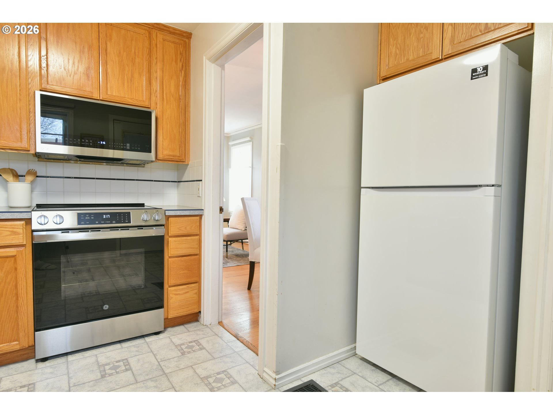 Tucked into the heart of Roseway, this 1944 classic blends vintage charm with the everyday lifestyle today’s urban buyers are looking for. Original oak hardwood floors, iconic corner windows, and abundant natural light create a warm, welcoming feel the moment you walk in. The main level lives easy and connected — an open-feeling kitchen with newer appliances flows into comfortable spaces to cook, gather, relax, and recharge. Modernized electrical and plumbing, new front windows, AC for year-round comfort, and a partial exterior repaint in 2026 add confidence to the character. Smart upgrades including a thermostat, door locks, and security camera bring convenience and peace of mind. Downstairs, the spacious unfinished basement offers laundry, storage, and serious potential — think home gym, creative studio, media room, or future expansion. Step out the back door into your fully fenced backyard (fence built in 2023) designed for Portland living: a new covered pergola for year-round hangouts, raised garden beds, room for pets, play, or summer dinners with friends. The detached garage and long driveway provide rare and valuable off-street parking. And the location? One block to a neighborhood brew pub, coffee shop, and food cart pod, with easy access to transit and just minutes to Fremont and Beaumont’s shops and restaurants. A move-in ready home with soul, space to grow, and a lifestyle that keeps you connected to everything you love about NE Portland. OFFER DEADLINE: MONDAY (3/2) AT NOON.