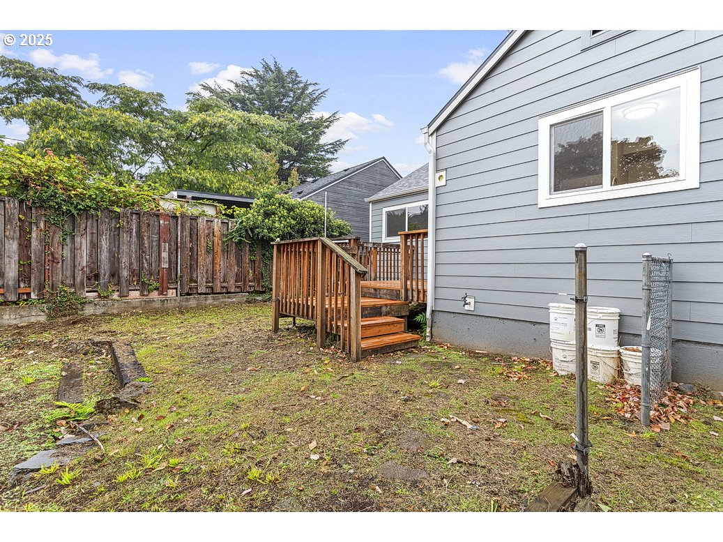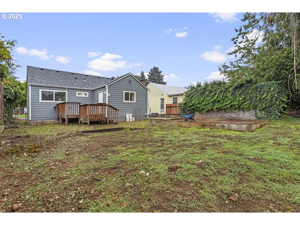 Irresistible 1945 bungalow gem in vibrant Roseway. 2 beds, 1 bath, 958 above grade sq ft (plus 806 sq ft unfinished basement) of pure bliss on a lush 0.12-acre level lot! Sun-drenched living room dazzles with gleaming hardwood floors & a welcoming wood-burning fireplace, flowing into a bright spacious kitchen with quartz countertops, recessed lighting, and easy care tile. Primary bedroom features custom built-in closet organizers, and the second bedroom offers flexible space for work, guests, or nursery. Basement offers generous storage and bonus room potential. Updated bath boasts subway tile, a soaking tub-shower combo, and quartz vanity. Enjoy the private fenced yard with a composite deck, raised garden beds, and mature trees, ideal for relaxation. No HOA. Steps from local cafes, parks, and Parkrose schools!