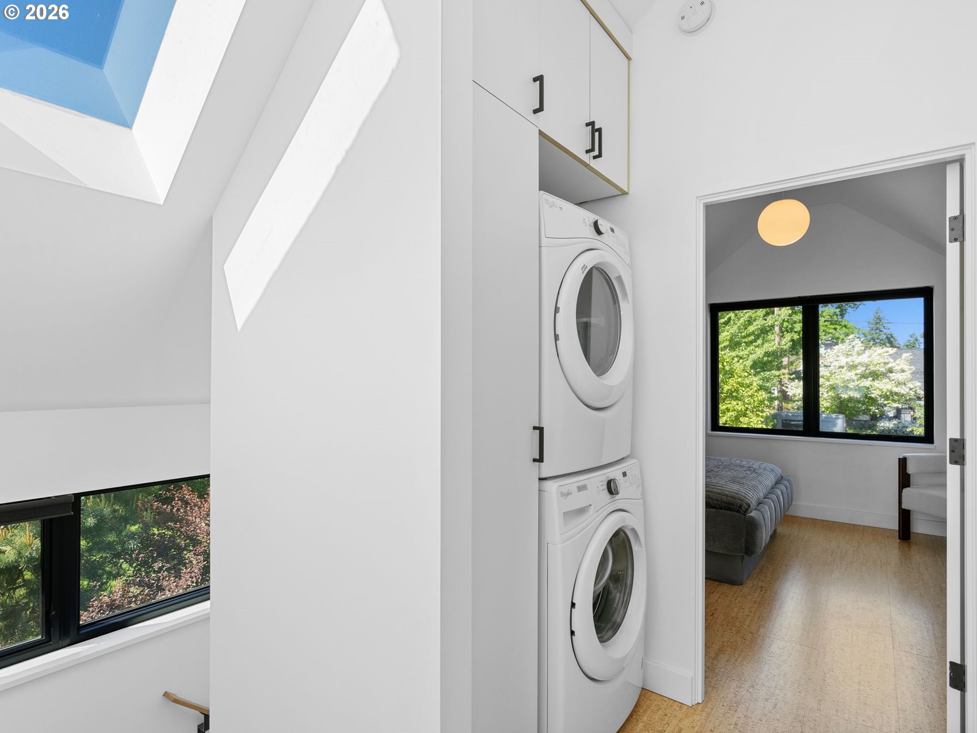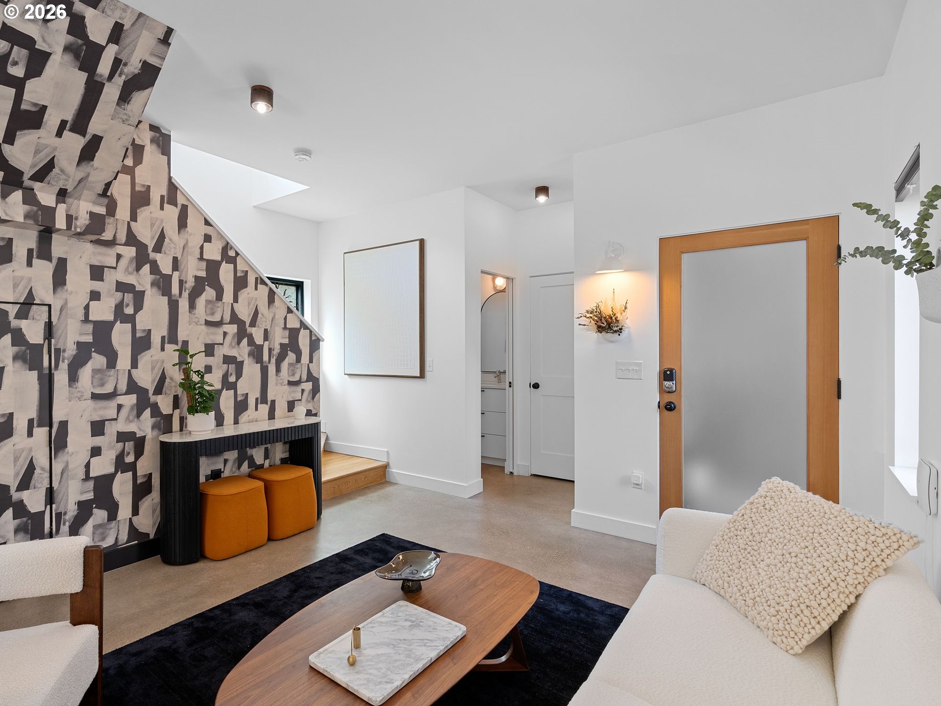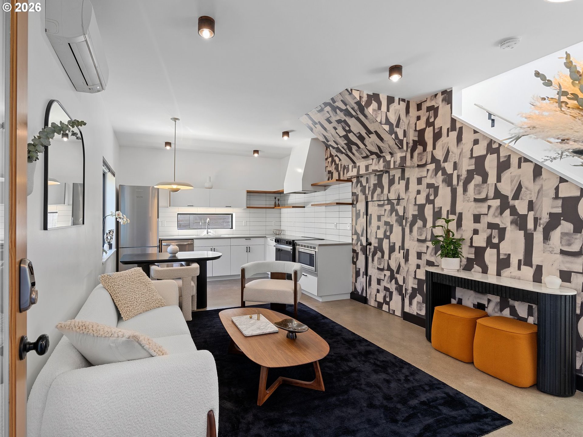 A rare, design-forward opportunity offering two full residences in one cohesive package, thoughtfully curated and located on the quiet residential stretch of Cesar Chavez Blvd. This modern farmhouse-inspired property pairs architectural intention with real flexibility — ideal for multigenerational living, hosting, work-from-home separation, or long-term investment.The main residence features polished concrete floors, smooth-coat walls, trimless doors and windows, and a striking black Pella casement window package. A sleek kitchen with walnut accents and floating shelves opens to dining and living spaces designed for both everyday ease and elevated entertaining. Upstairs, the vaulted primary suite is a calm retreat with custom closet organization and a spa-inspired bath featuring heated floors, heated towel rack, and oversized dual shower. A second upstairs bath also includes heated floors. Washer and dryer included.Outdoors, enjoy an entertainer’s patio complete with outdoor kitchen, gas fireplace, and heater — then continue to the second, fully self-contained residence, set apart by an unusually serene yard with multiple outdoor zones, private garden space, and dedicated storage. Few properties offer this level of privacy, separation, and usability in such a close-in location.Set near New Seasons Market, Alberta Arts District, and Beaumont Village, this home offers a compelling alternative to traditional single-family living — delivering design, flexibility, and long-term optionality in one intentional offering. [Home Energy Score = 10. HES Report at https://rpt.greenbuildingregistry.com/hes/OR10233368]