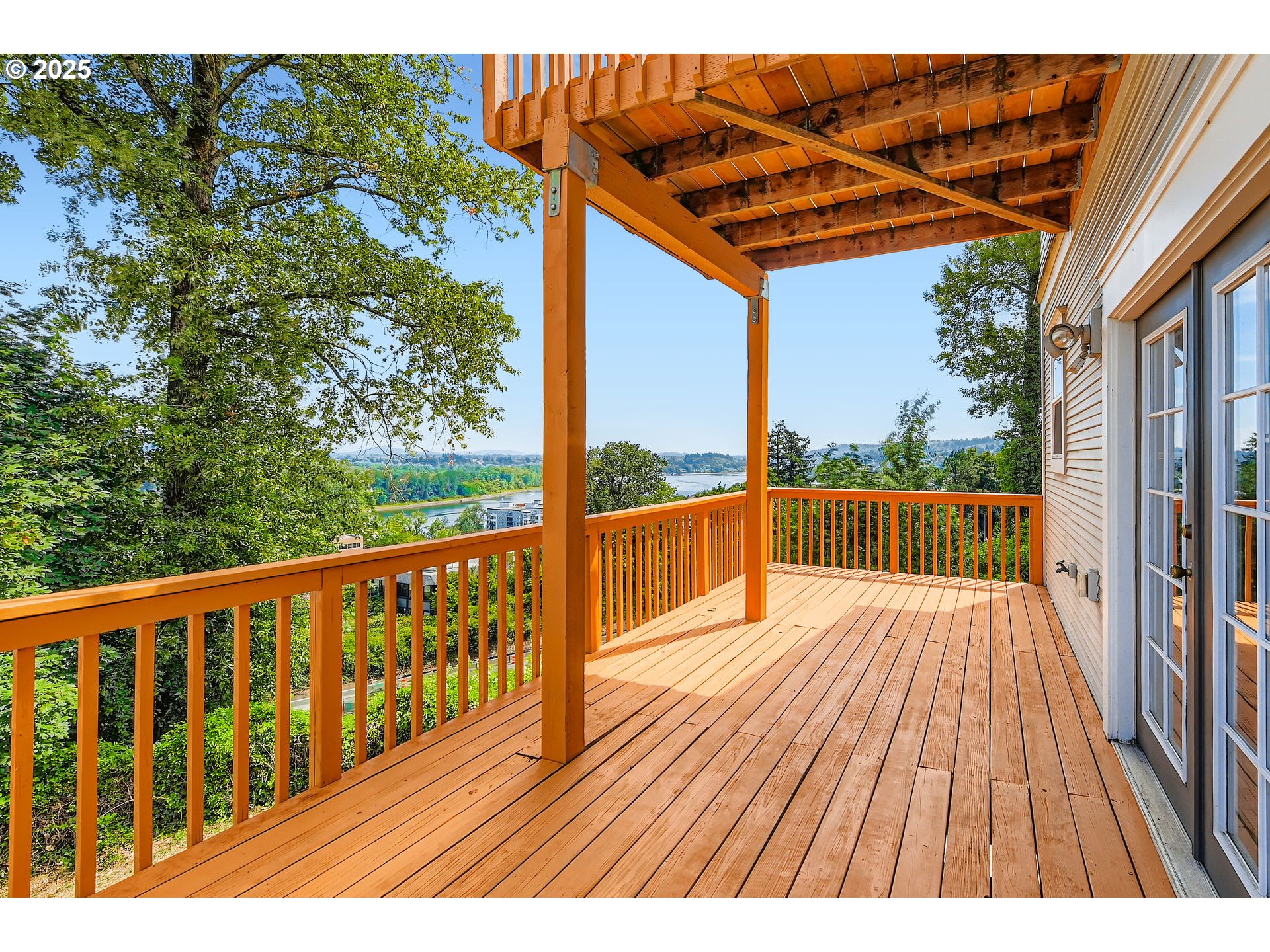 Versatile CM2 Property – Live, Work, or Invest. This classic Portland Foursquare offers timeless charm with original doors, trim, and built-ins featuring a natural wood finish, blended with thoughtful modern updates to the HVAC, plumbing, and electrical systems. Spacious bedrooms with walk-in closets and laminate flooring throughout the two finished levels make this home both functional and inviting. Enjoy Willamette River views from two decks, or relax and entertain on the generous patio and in the large backyard complete with raised garden beds. The grand entry with open staircase sets a welcoming tone, while the unfinished basement with high ceilings and a separate entrance offers potential for an ADU or additional living space. Zoned CM2, the property allows for a mix of residential, retail, or office use—ideal for future development or multi-purpose use. Off-street parking, a pad ready for a garage, and prime location on Corbett Avenue just 1.5 miles from OHSU—with quick access to I-5, downtown, the South Waterfront, parks, and trails—make this an exceptional opportunity to bring your vision to life. [Home Energy Score = 1. HES Report at https://rpt.greenbuildingregistry.com/hes/OR10241160]