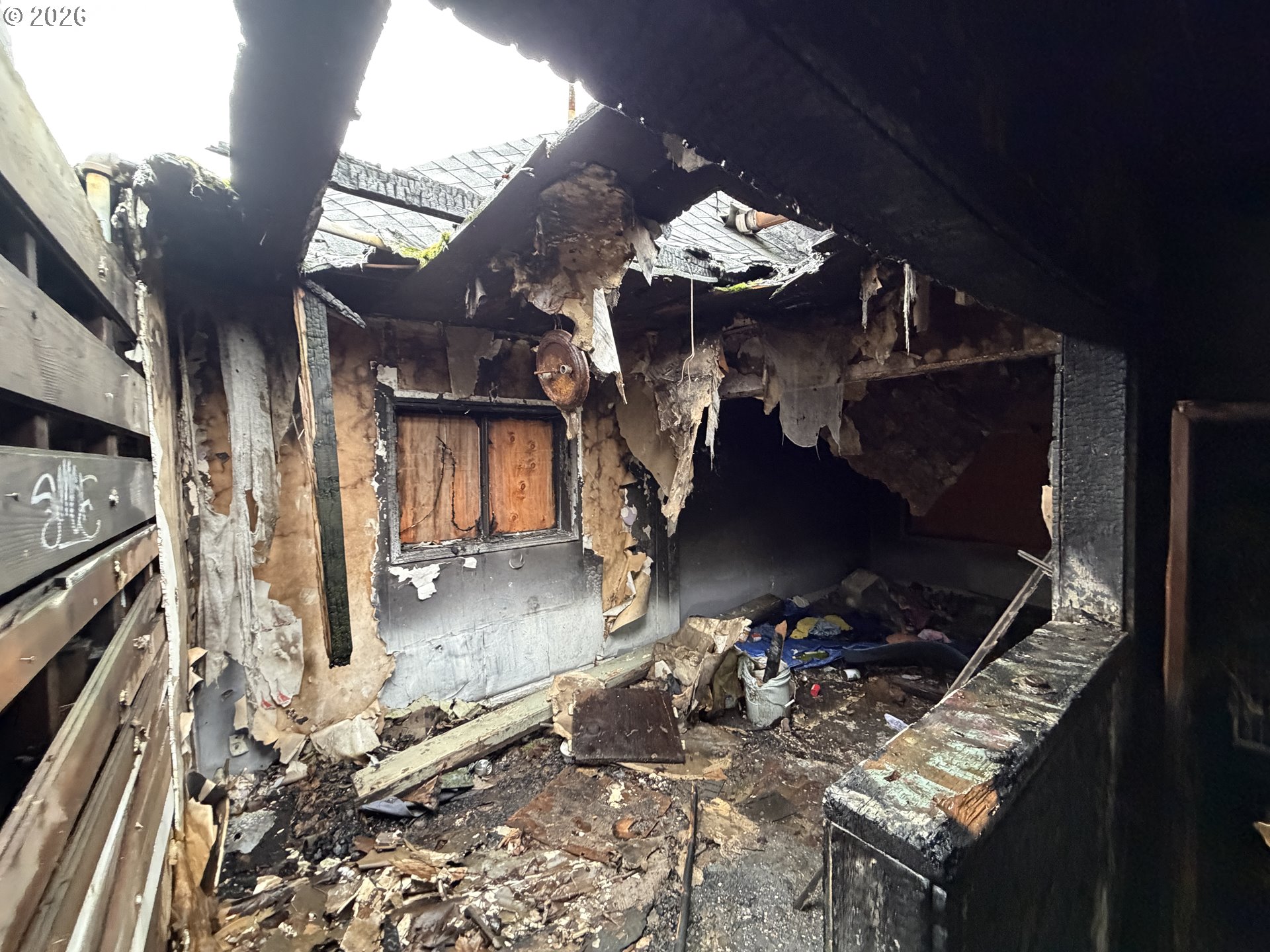 Entire interior is severely fire and water damaged. Parts of roof collapsed. House is a tear-down. High density RM3 zoning.
